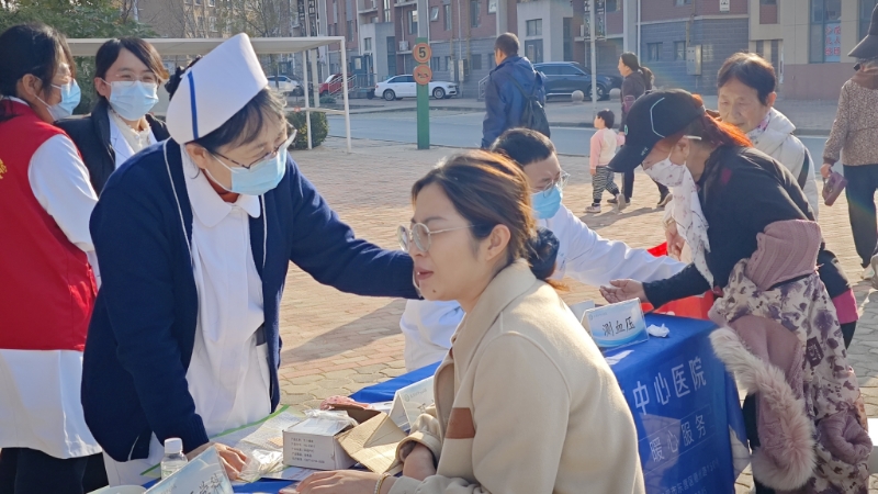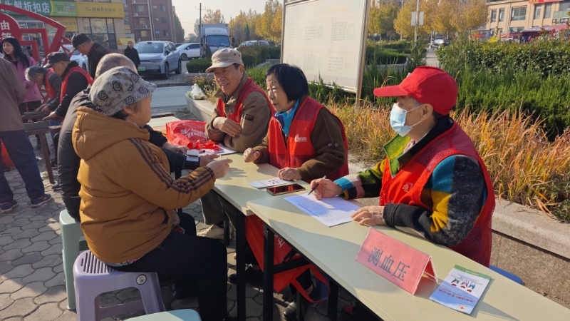 钻井南社区开展公益市集活动,为居民尤其是老年居民,提供义务测血糖、血压服务。使居民在家门口就能了解到自己的身体状况。