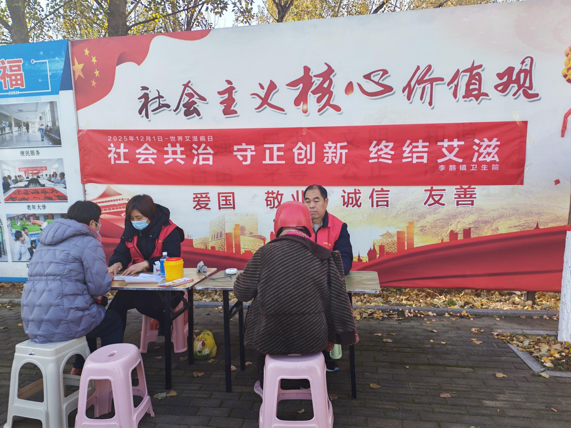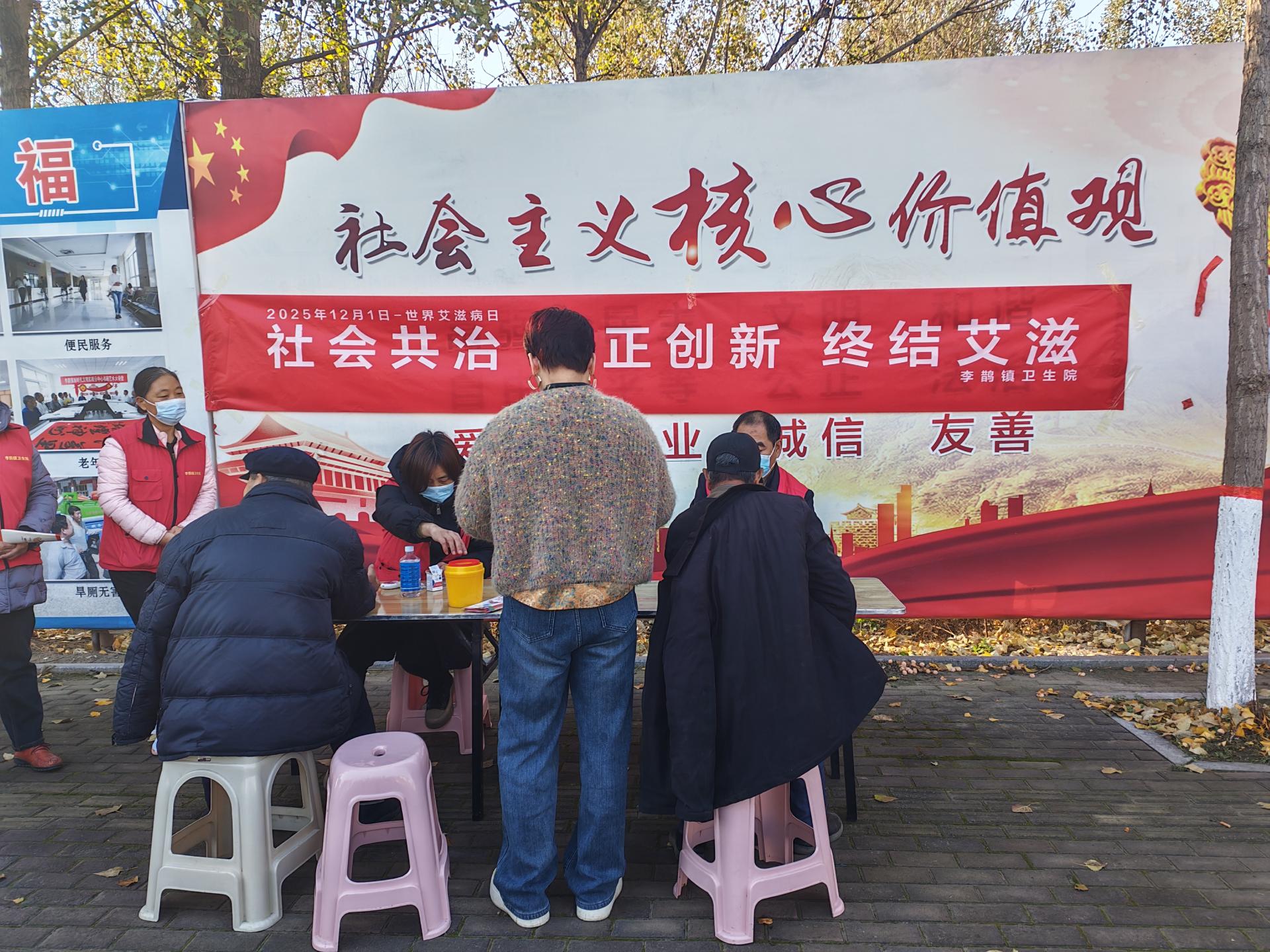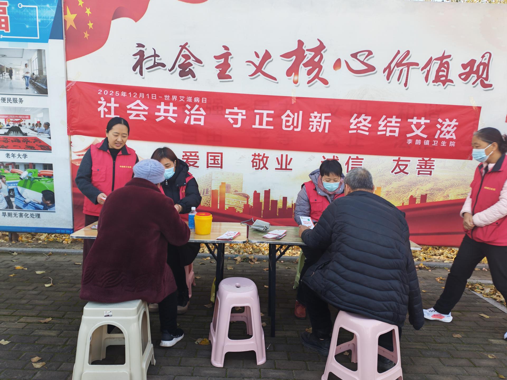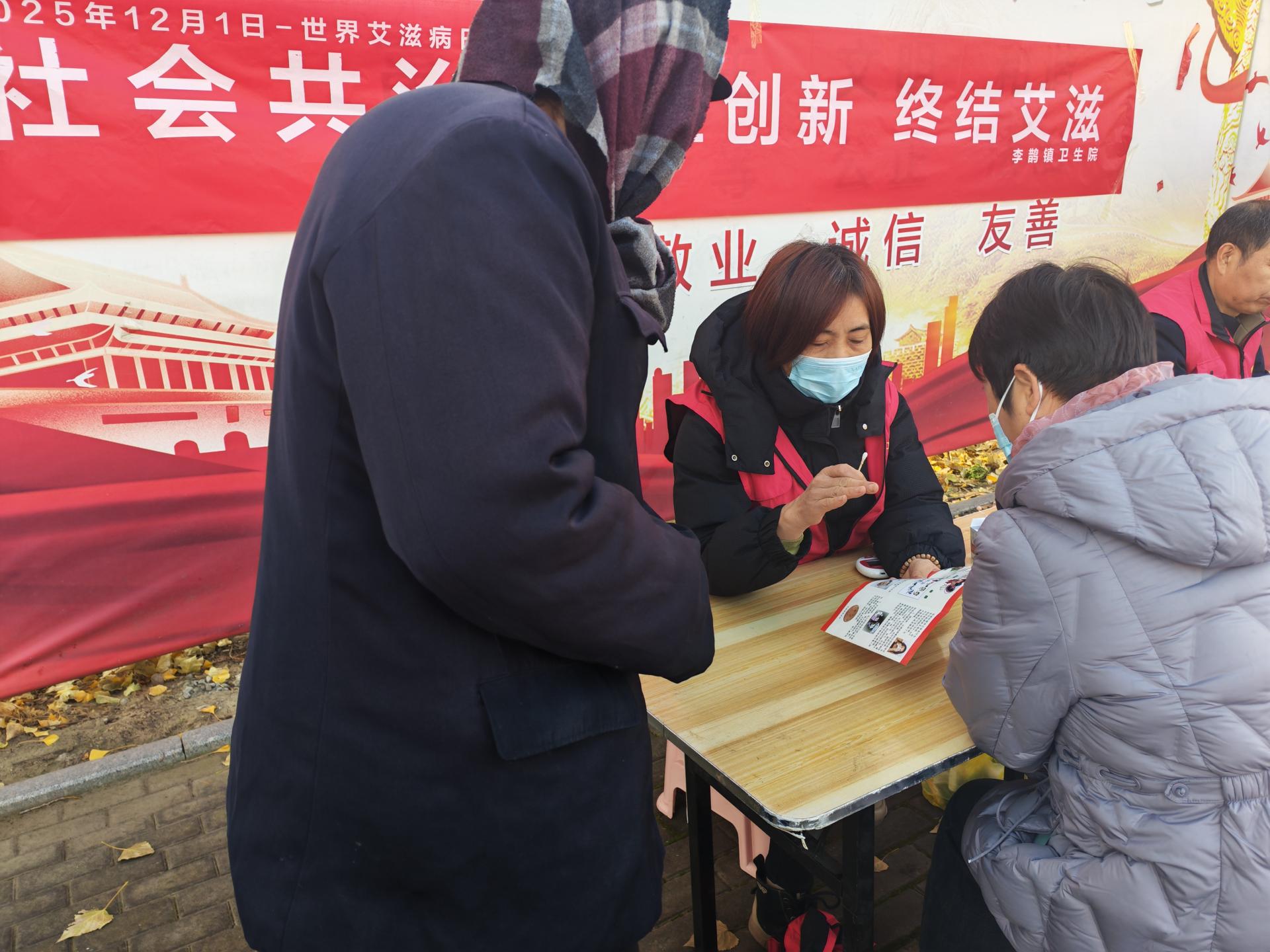 李鹊镇卫生院组织医务人员在李鹊镇大集上通过讲解及发放宣传手册的方式为居民宣传艾滋病的防治,通过讲解艾滋病的传播途径,杜绝艾滋病的传播。