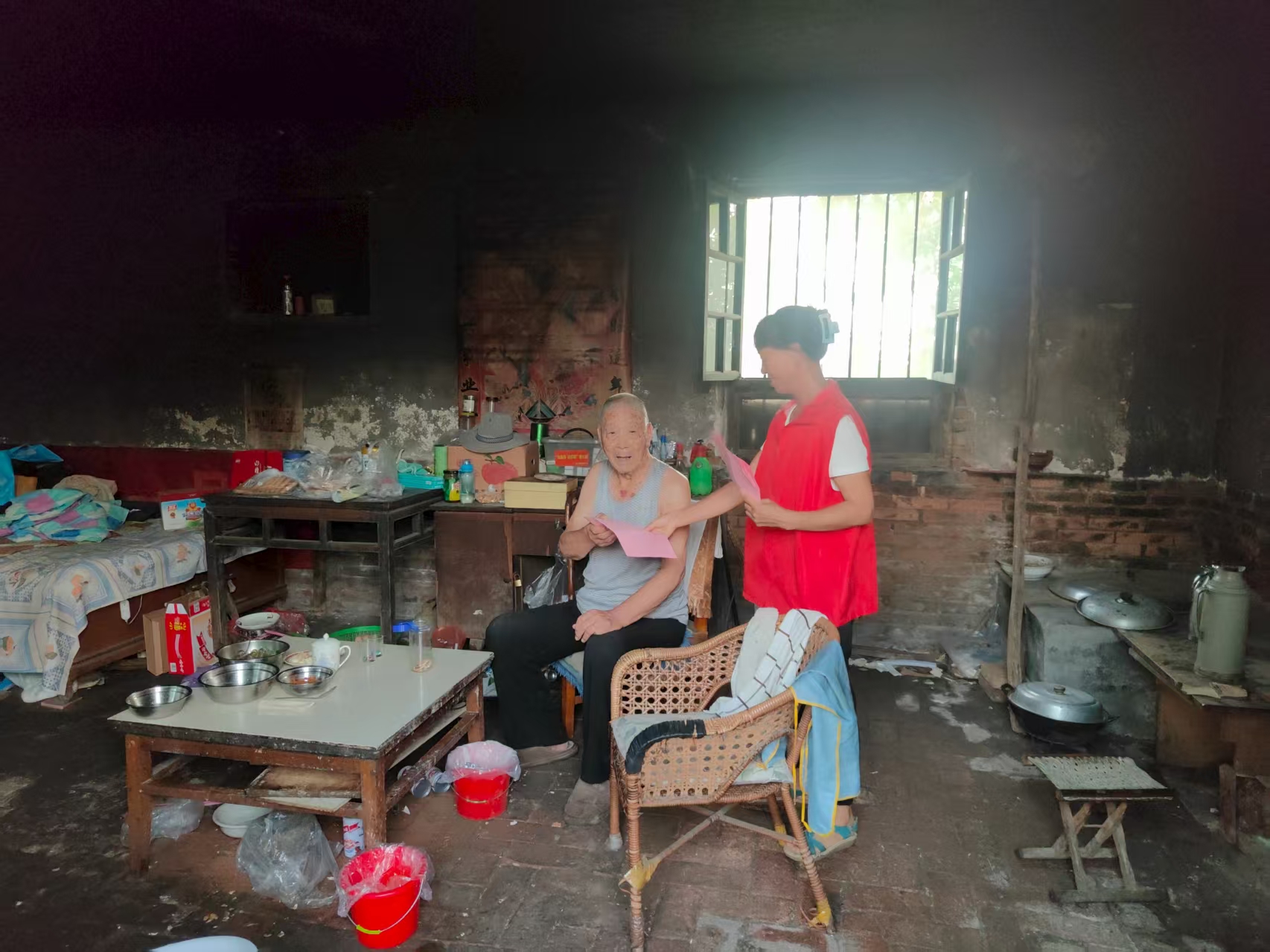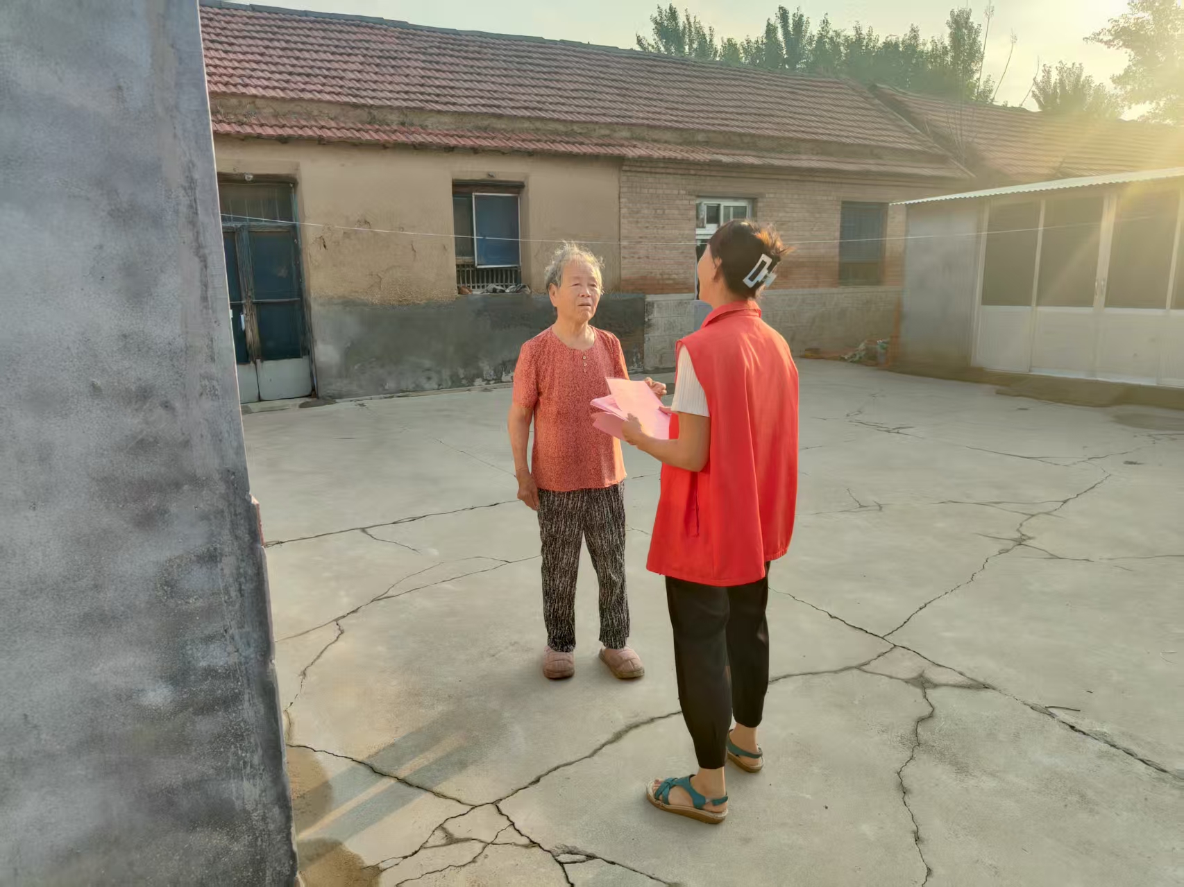 2025年9月17日,稻庄镇印家村组织志愿者服务队队员,为村内独居老人发放雨季指南宣传材料,对独居老人暖心提醒。尽量在雨天减少外出,日常做好安全防护。