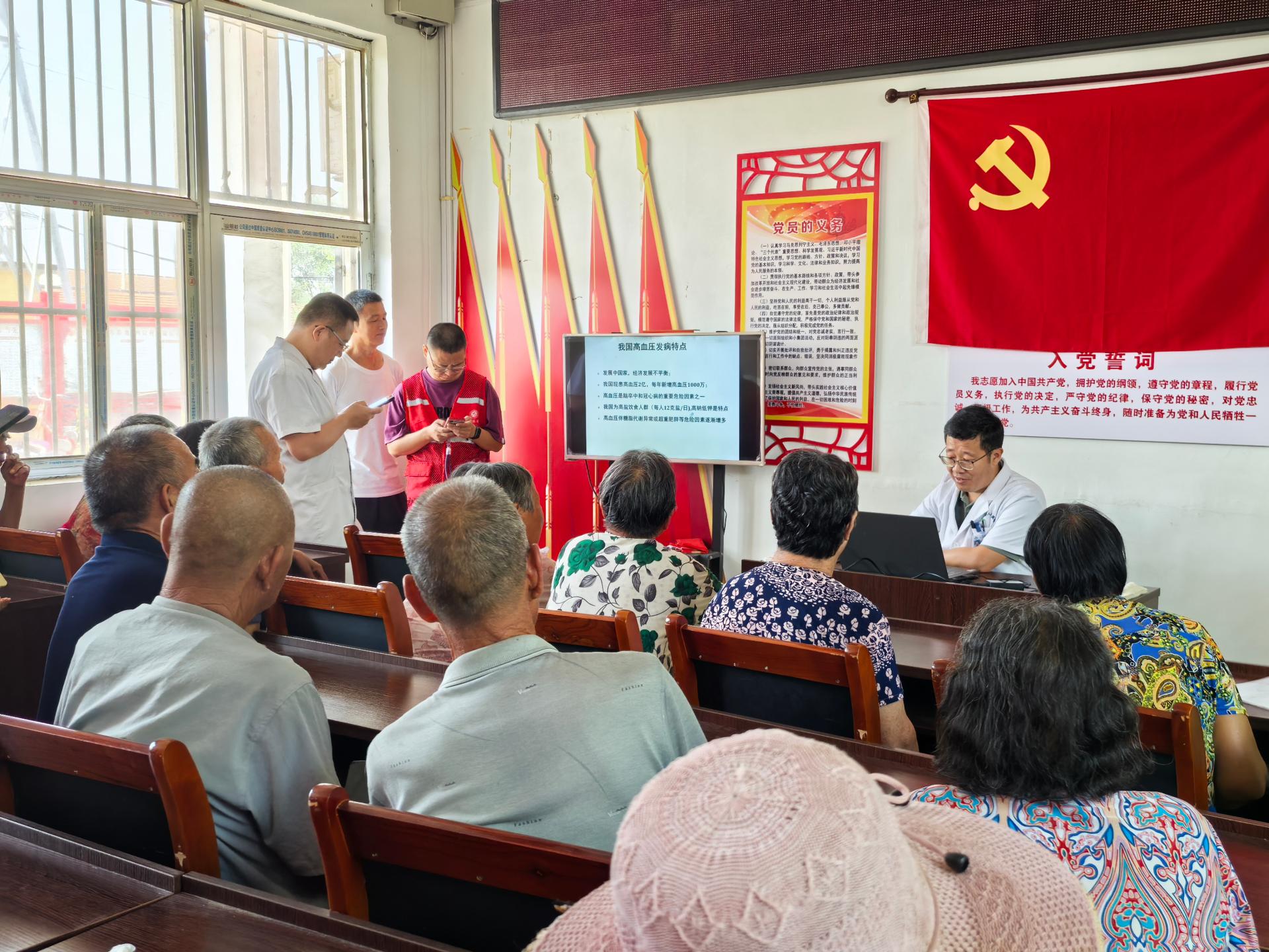针对村里老年人高血压高发对脑血管疾病认识不足的问题,提升村民对相关疾病的防治意识,陈官镇卫生院邀请广饶县人民医院两位医师科普健康健康知识。