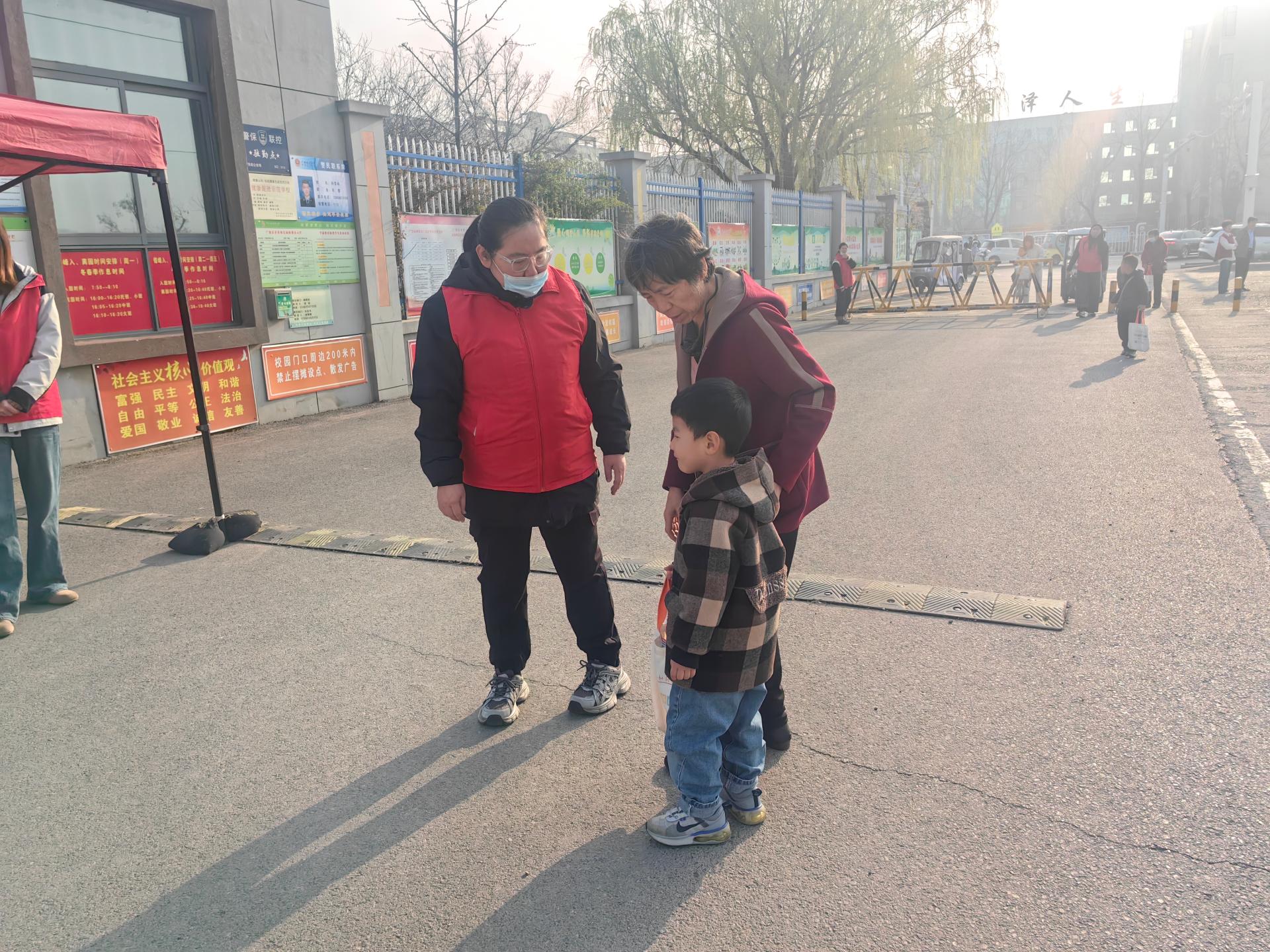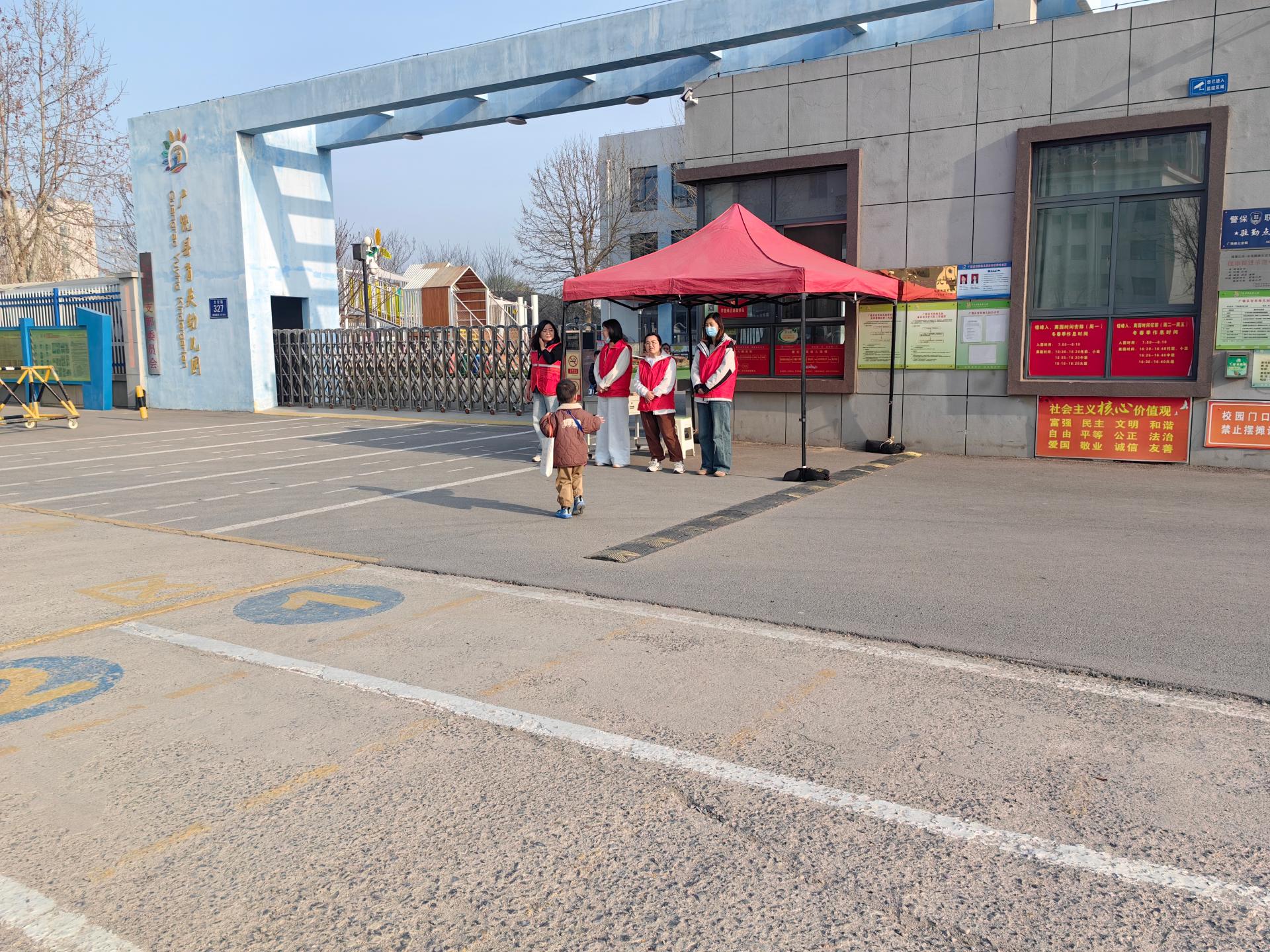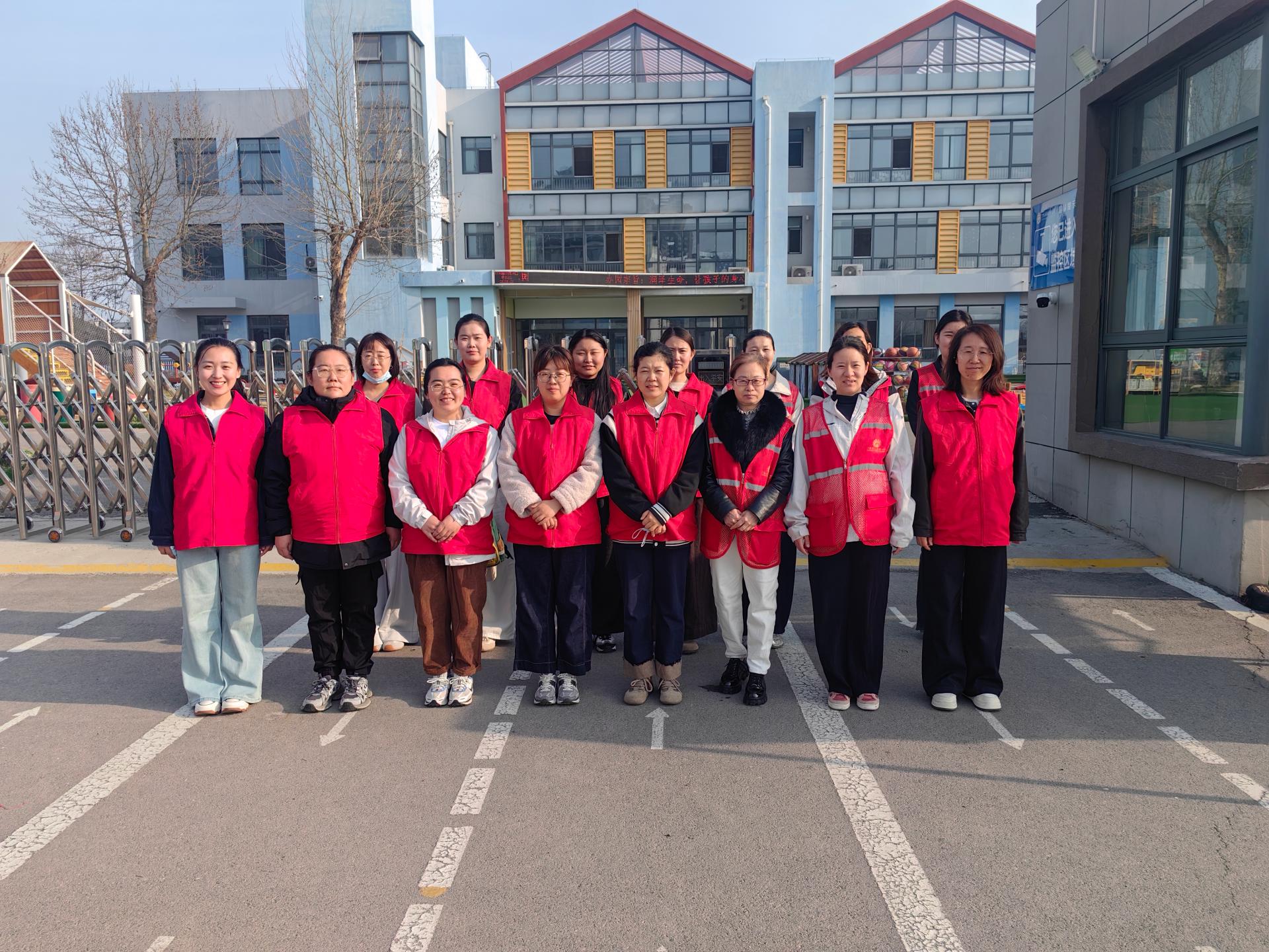 为保护孩子们的安全,广饶县育英幼儿园的领导带领值班教师每天早上都早早来到幼儿园门口执勤,看护孩子们上下学路队。他们站在幼儿园门口的值班点位上,化身安全监督员,提醒孩子们不扎堆、不拥挤、不乱跑,护佑着孩子们安全有序出入校门,进一步消除校园安全隐患,确保师生生命财产安全。