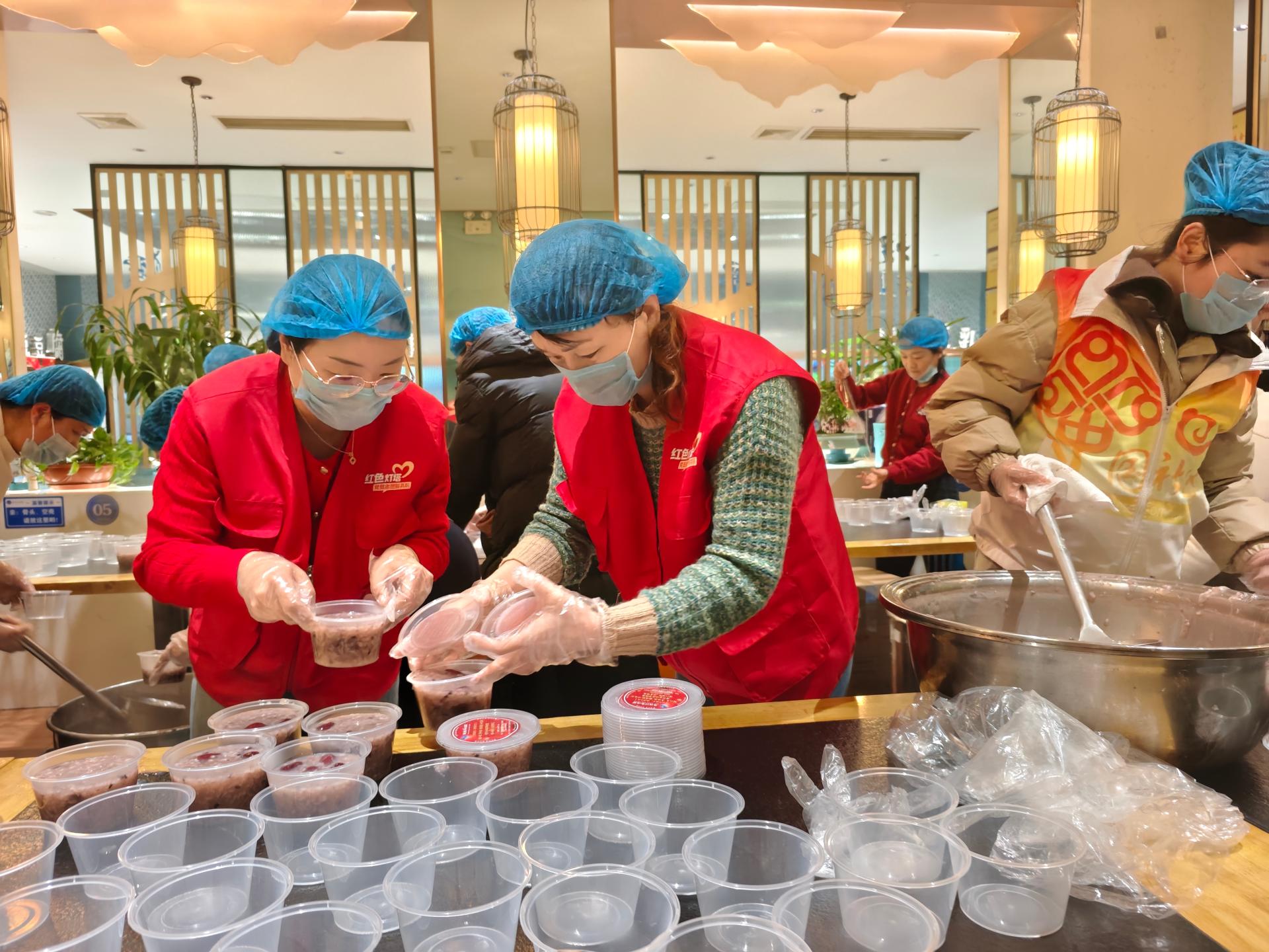 腊八节当天,万达社区开展送腊八粥,腌腊八蒜系列活动,招募志愿者教授居民制作腊八蒜,分小组入户为新就业群体,老年人等特殊人员送上腊八粥