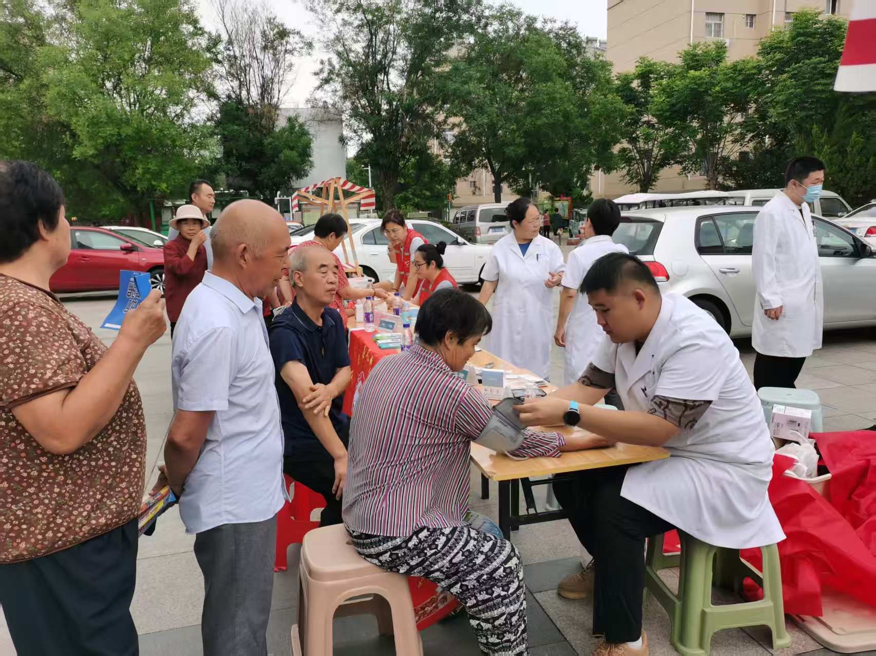 门诊支部、妇儿支部、内科支部与广饶街道康居花园社区联合开展健康义诊活动。为社区居民提供急救知识,测血压、测血糖、中医辦证、针灸、拔罐、耳穴压豆等中医治疗、妇科儿科疾病、糖尿病、甲状腺等内科疾病诊治咨询等健康服务。