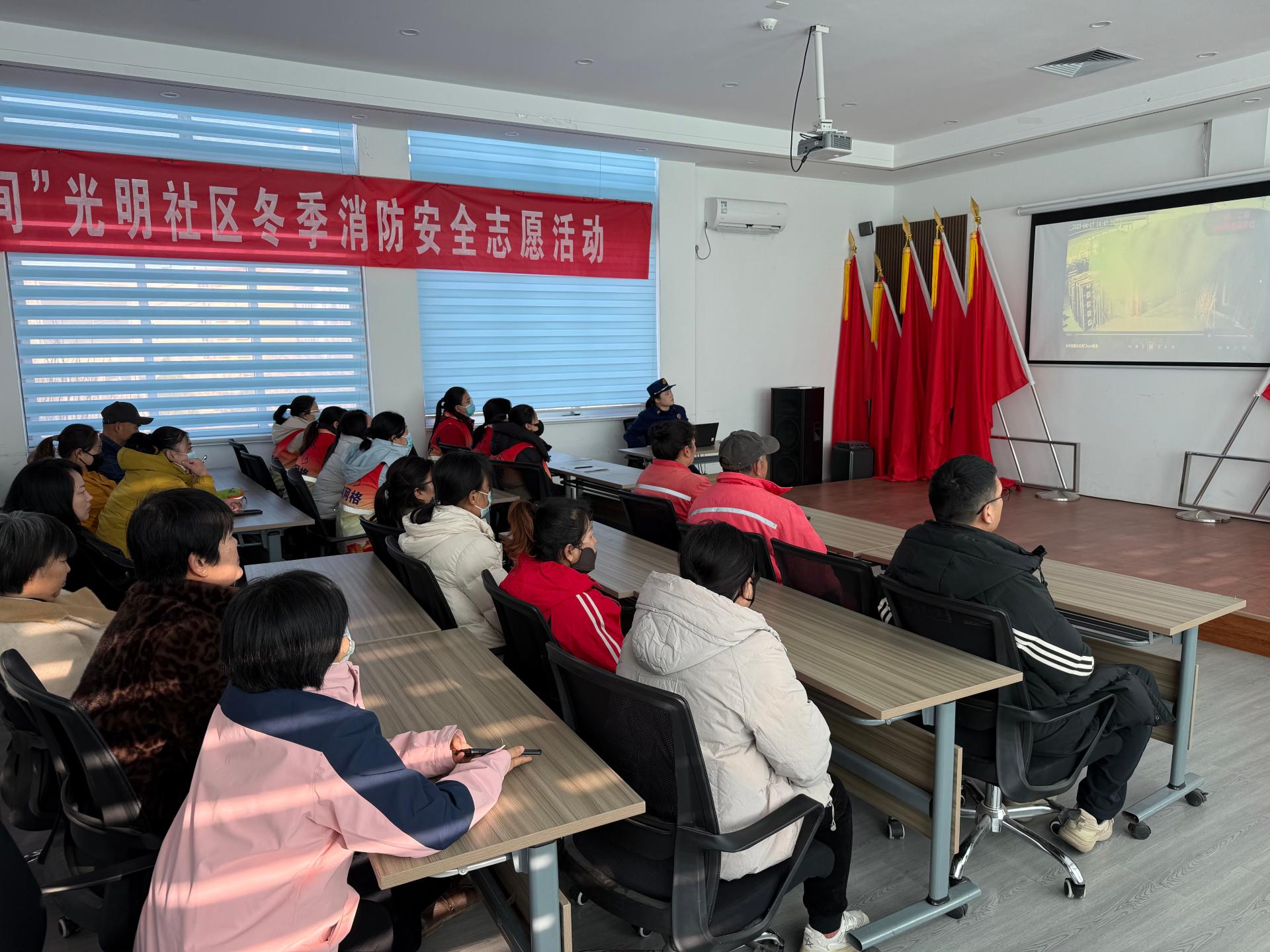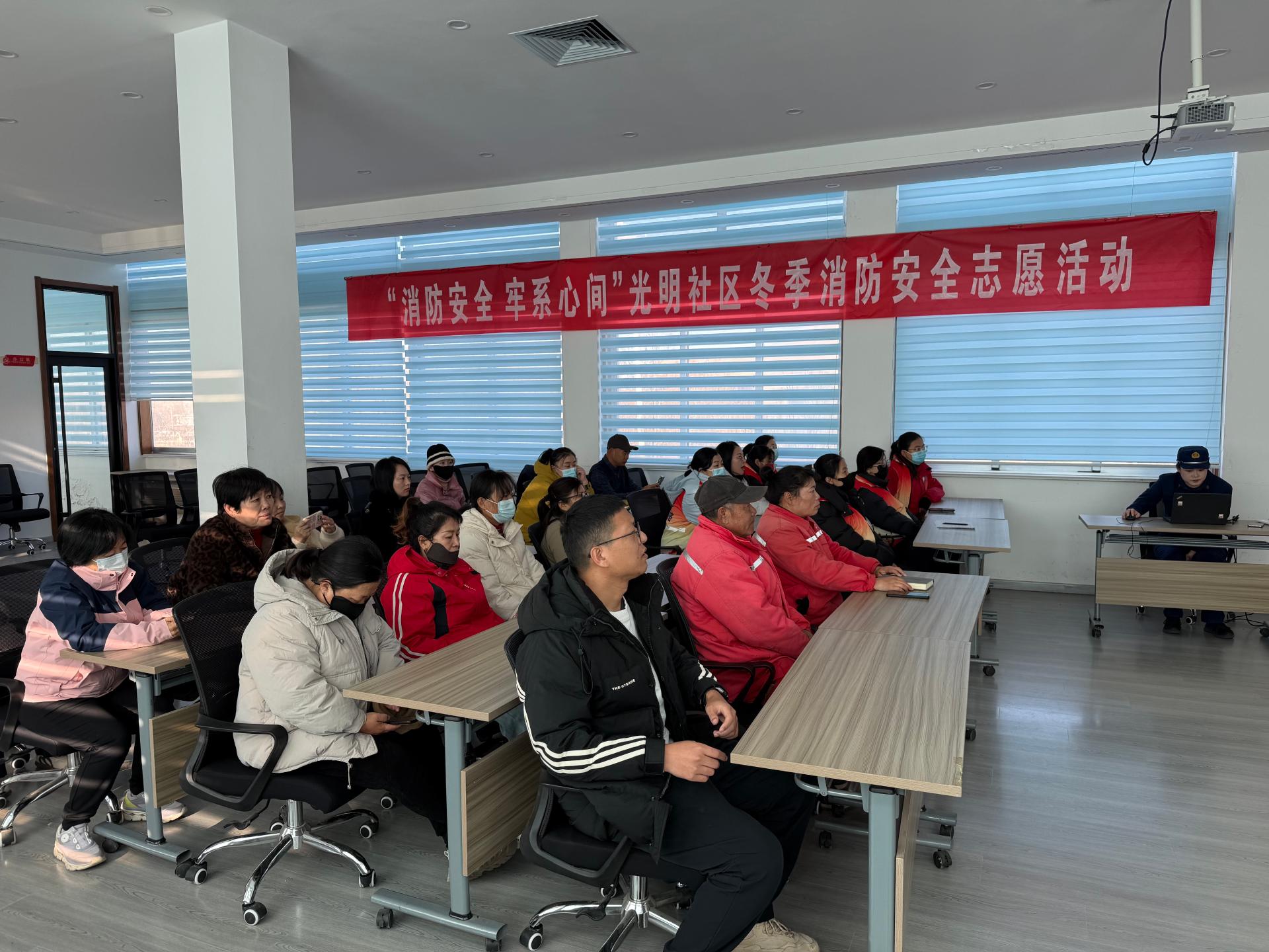 光明社区在光明社区党群服务中心与2025年12月5日,通过消防演练志愿活动的开展,让社区工作人员及居民了解火灾,逃生技巧,灭火器的使用等安全消防知识