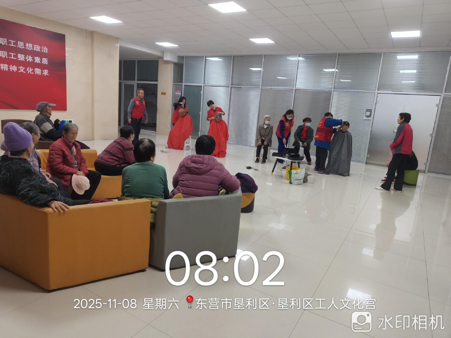 橄榄树垦利区志愿服务队“携手城乡共筑振兴”爱心公益理发活动~走进工人文化宫,为60岁以上老人免费理发。