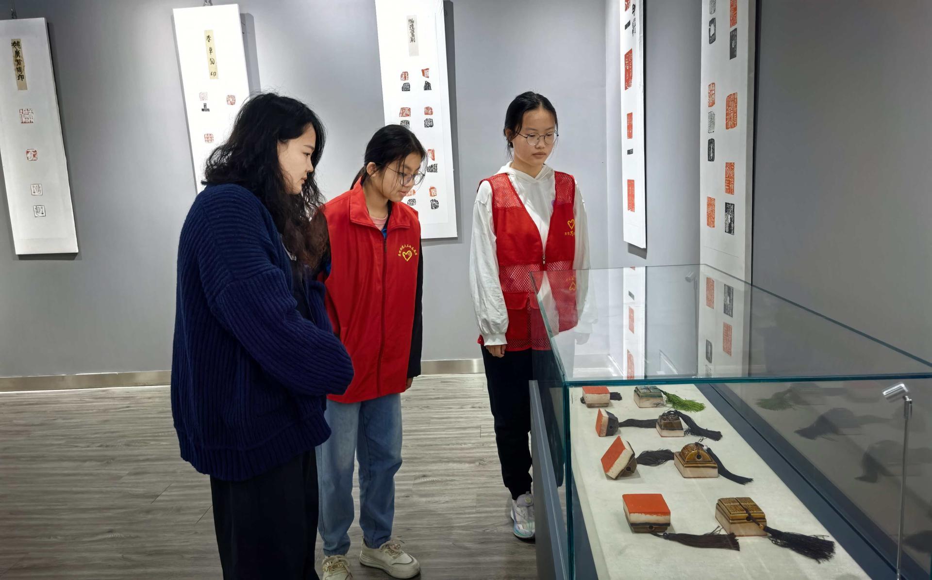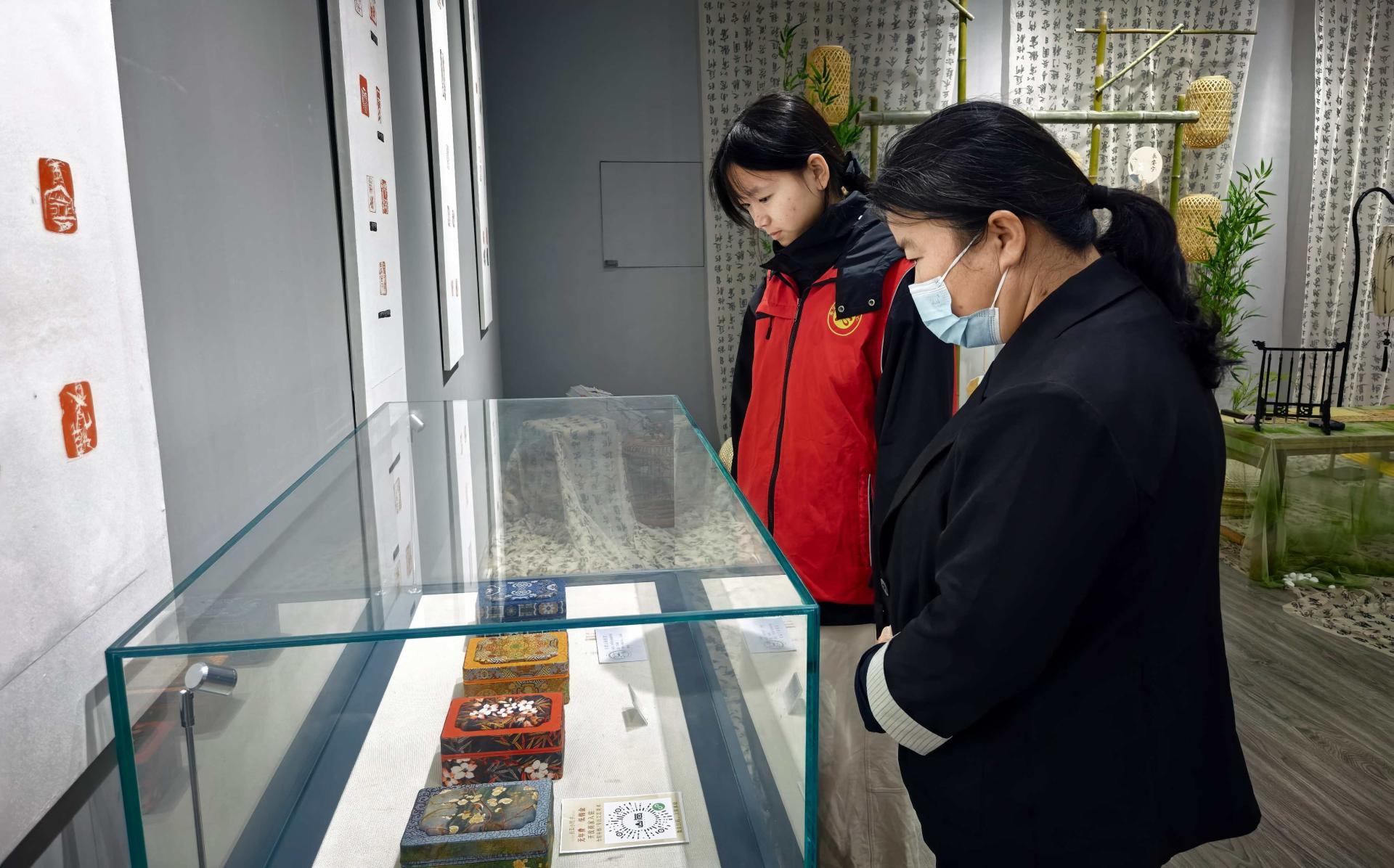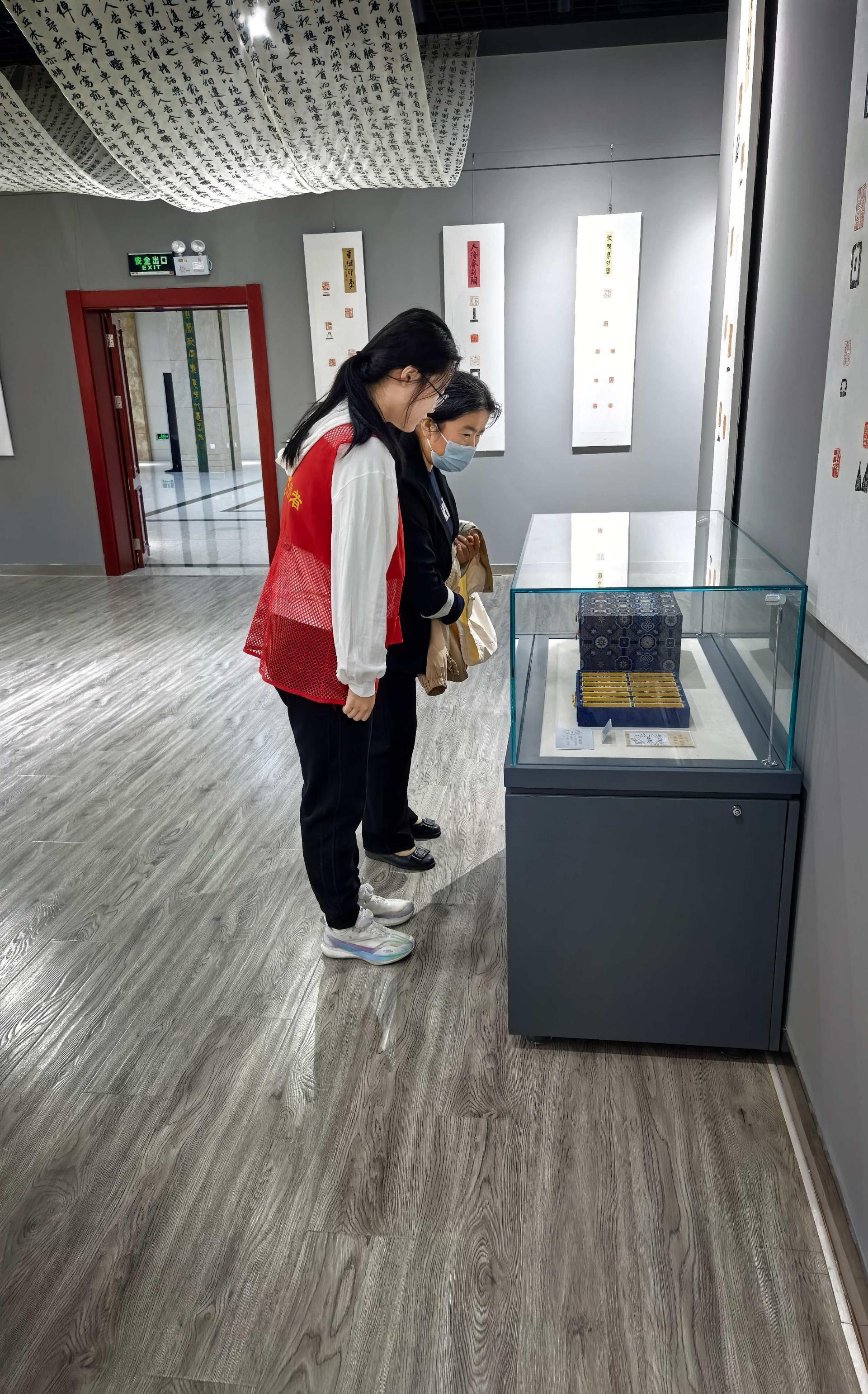 橄榄树垦利区博物馆志愿服务活动,志愿者维持观摩人员秩序,提醒观摩人员爱惜文物,不要乱摸乱碰,爱护文物,人人有责。