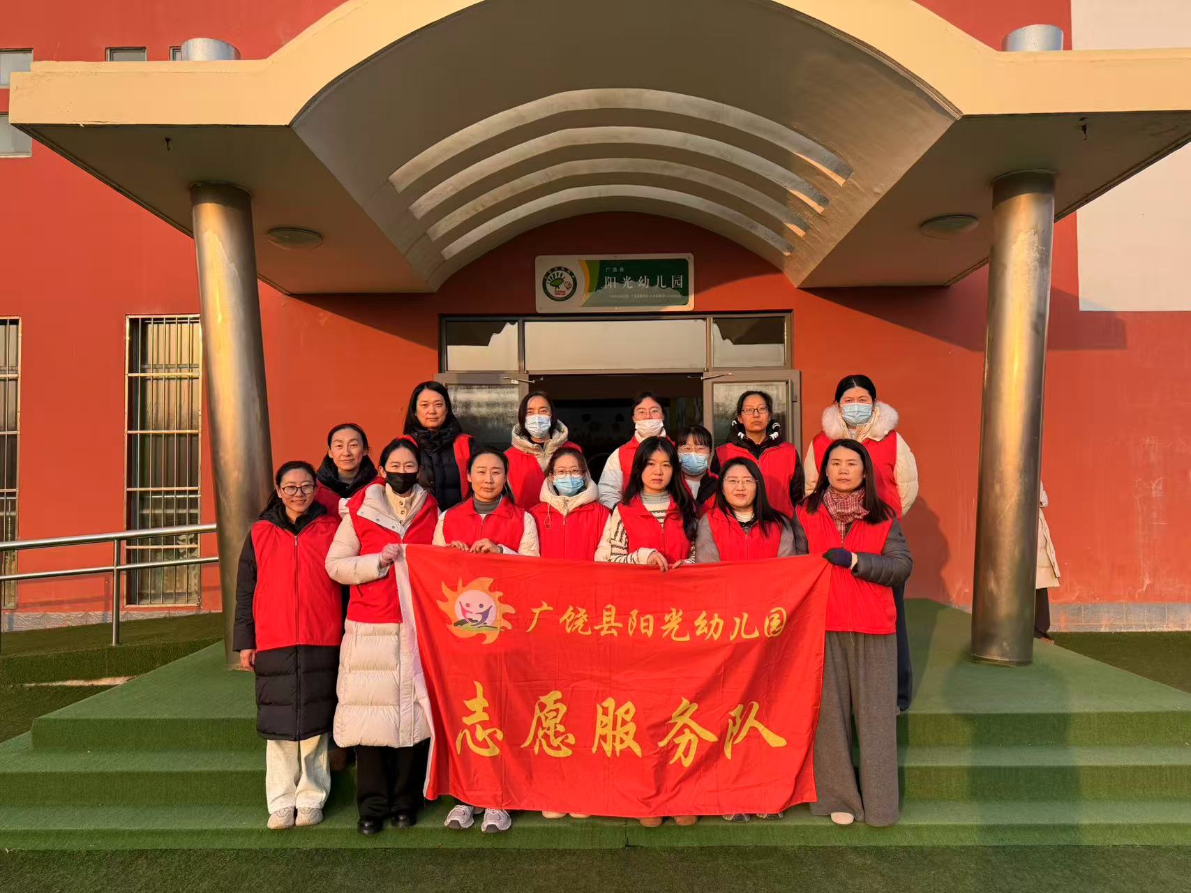 志愿者们穿好志愿服,拉好拉链,拿好小旗子,在幼儿园门口进行安全导护活动,主要负责指挥家长们正确停放好车辆