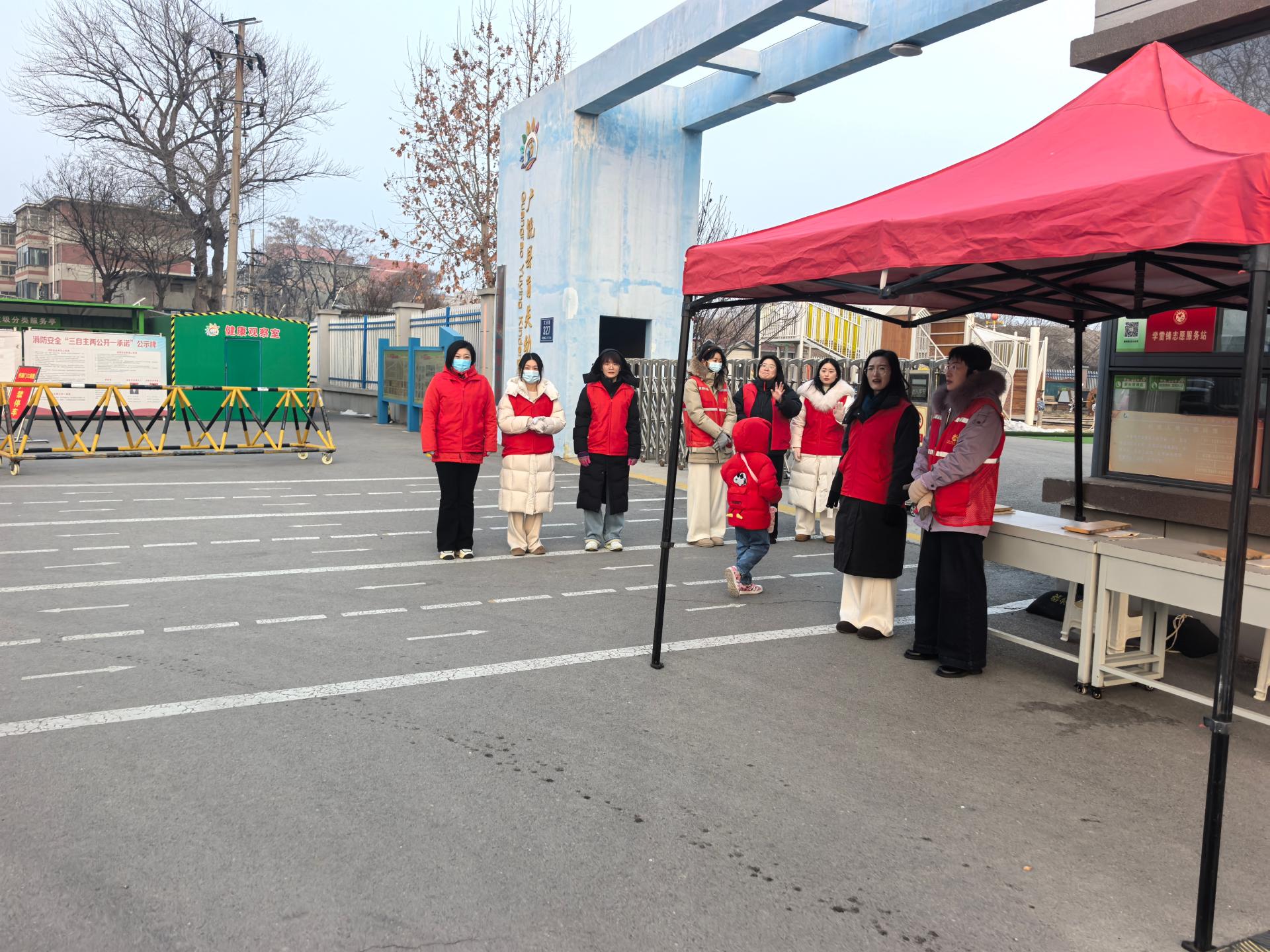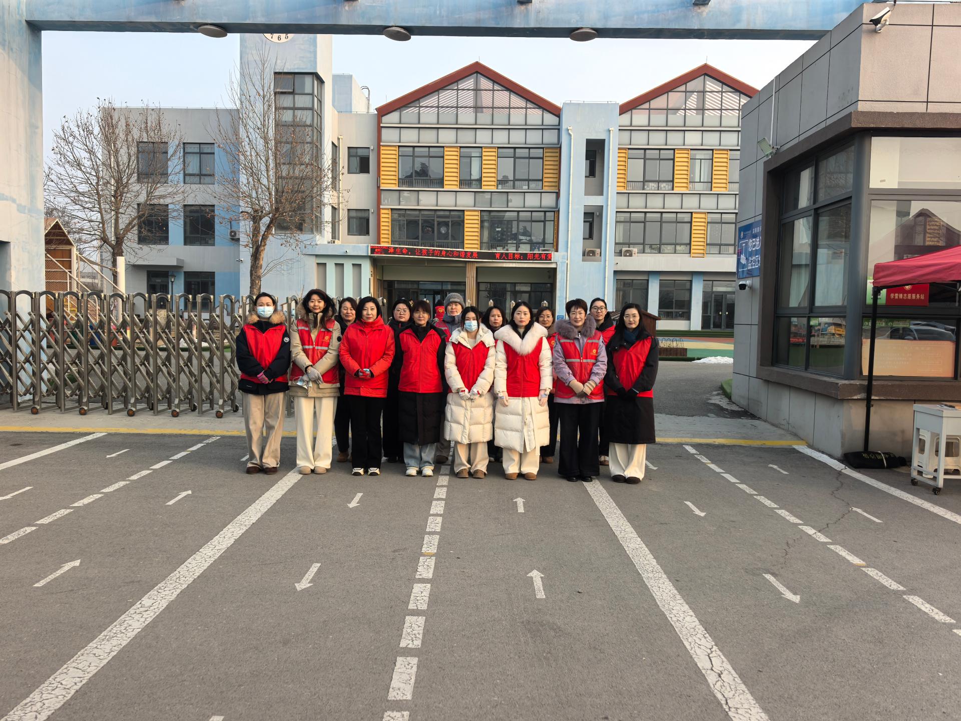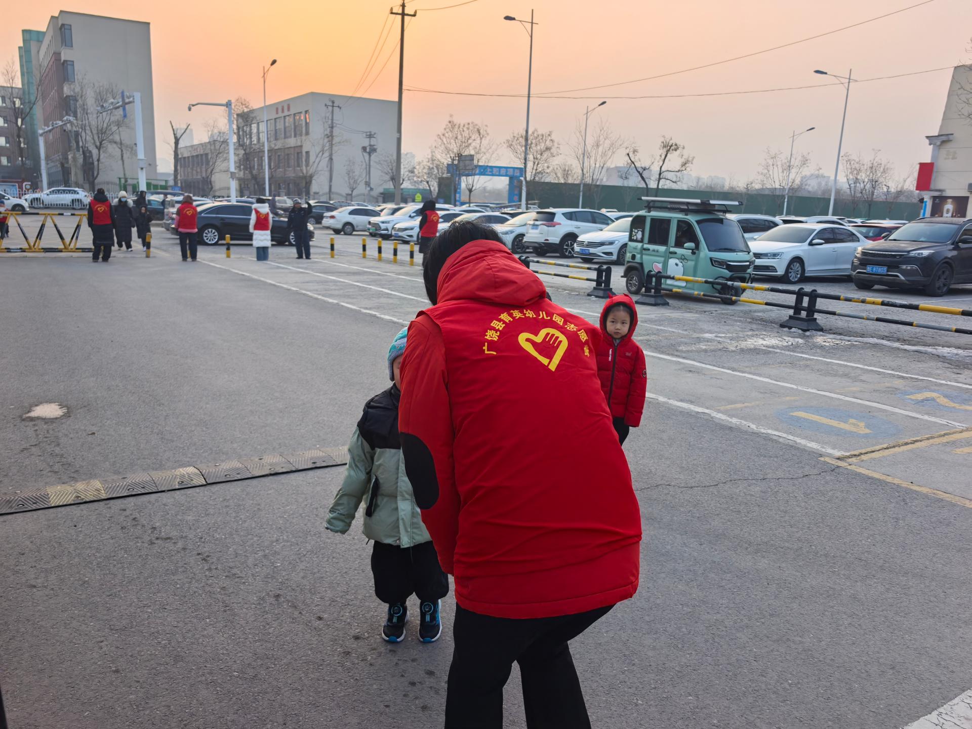为保护孩子们的安全,广饶县育英幼儿园的领导带领值班教师每天早上都早早来到幼儿园门口执勤,看护孩子们上下学路队。他们站在幼儿园门口的值班点位上,化身安全监督员,提醒孩子们不扎堆、不拥挤、不乱跑,护佑着孩子们安全有序出入校门,进一步消除校园安全隐患,确保师生生命财产安全。