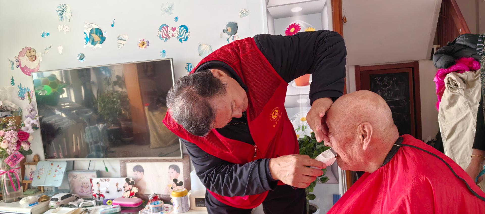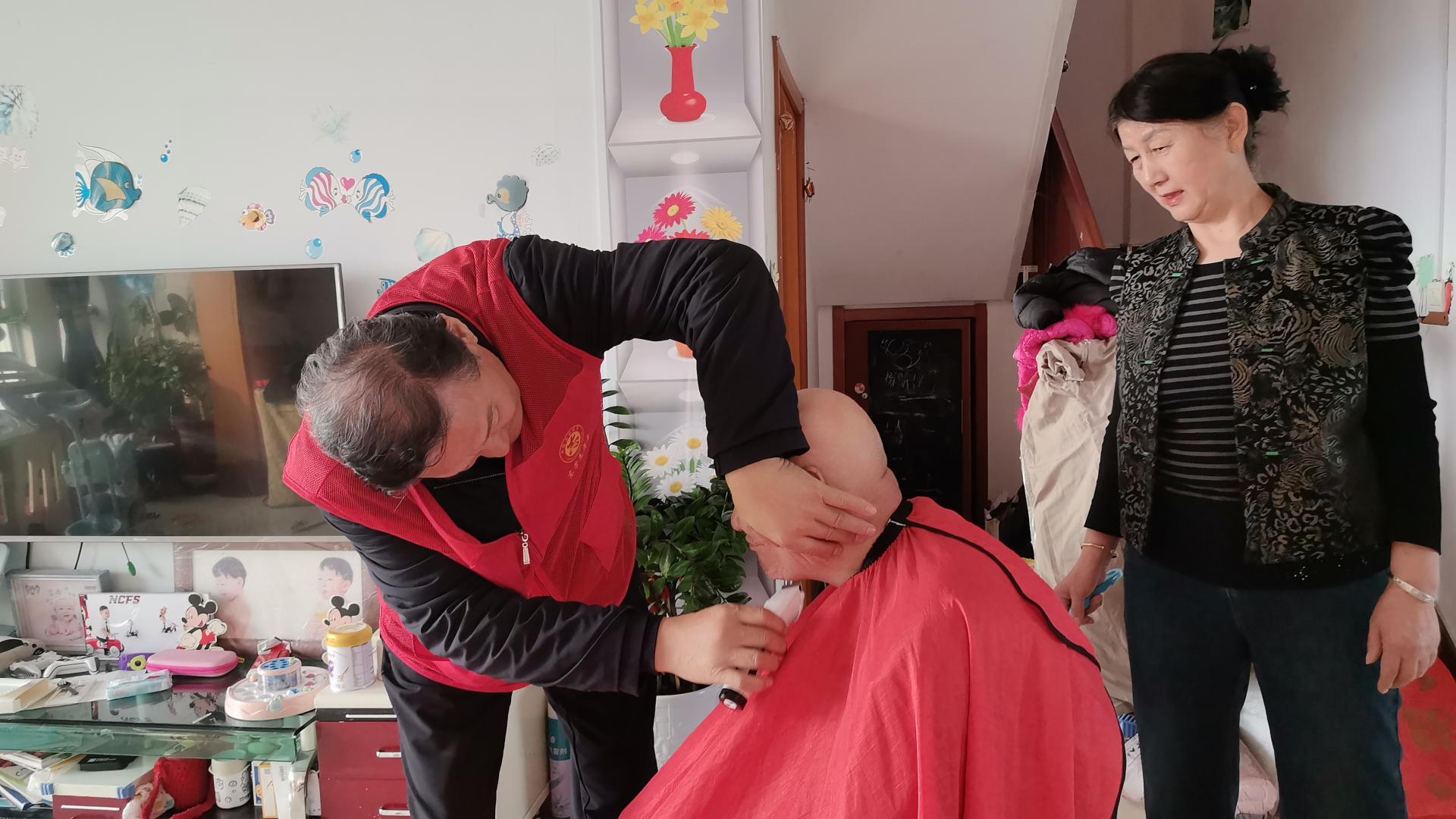 橄榄树垦利区志愿服务队“关爱乡村 从头开始”爱心理发公益活动~走进佳苑社区为65岁以上老人爱心理发。