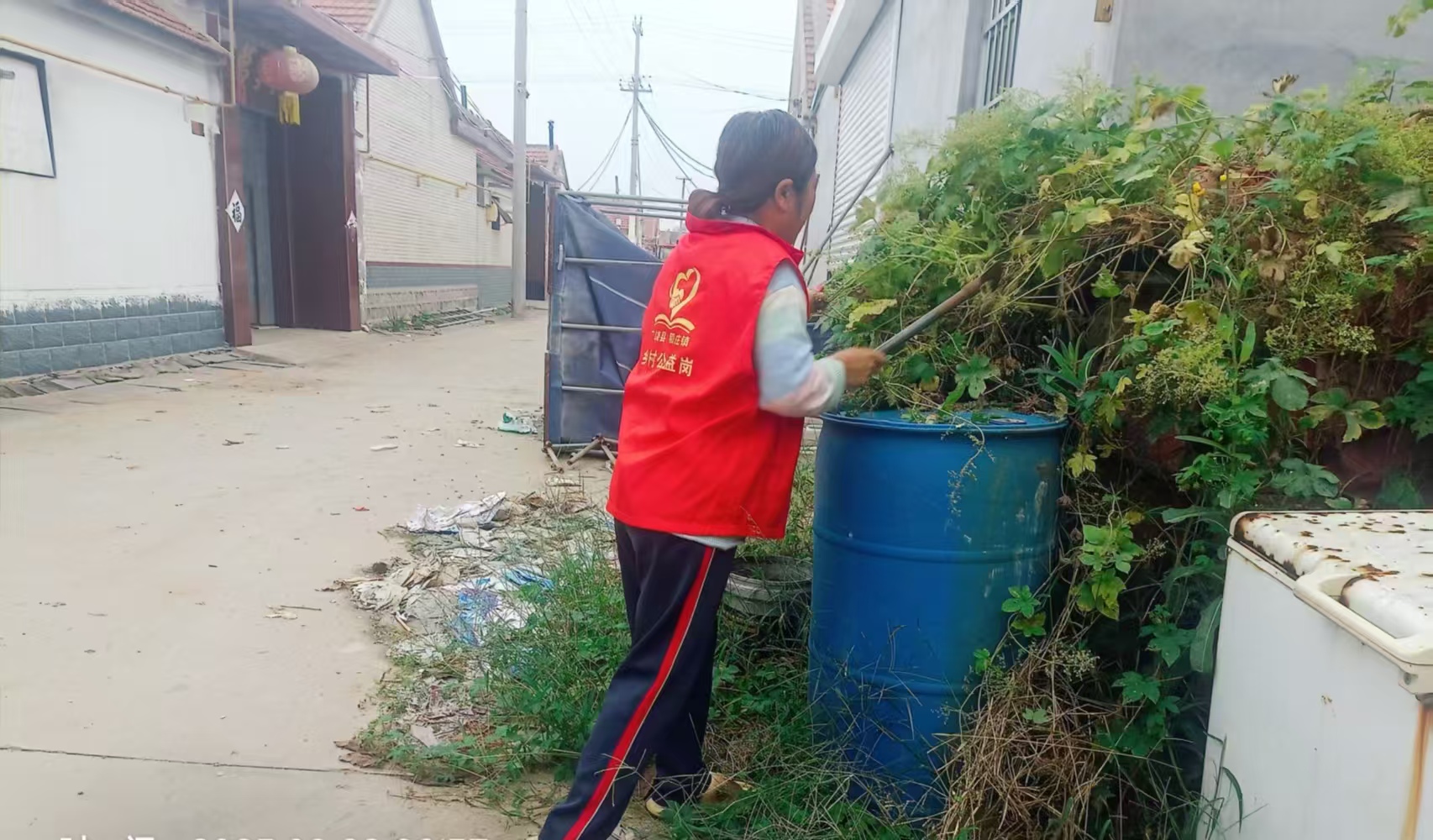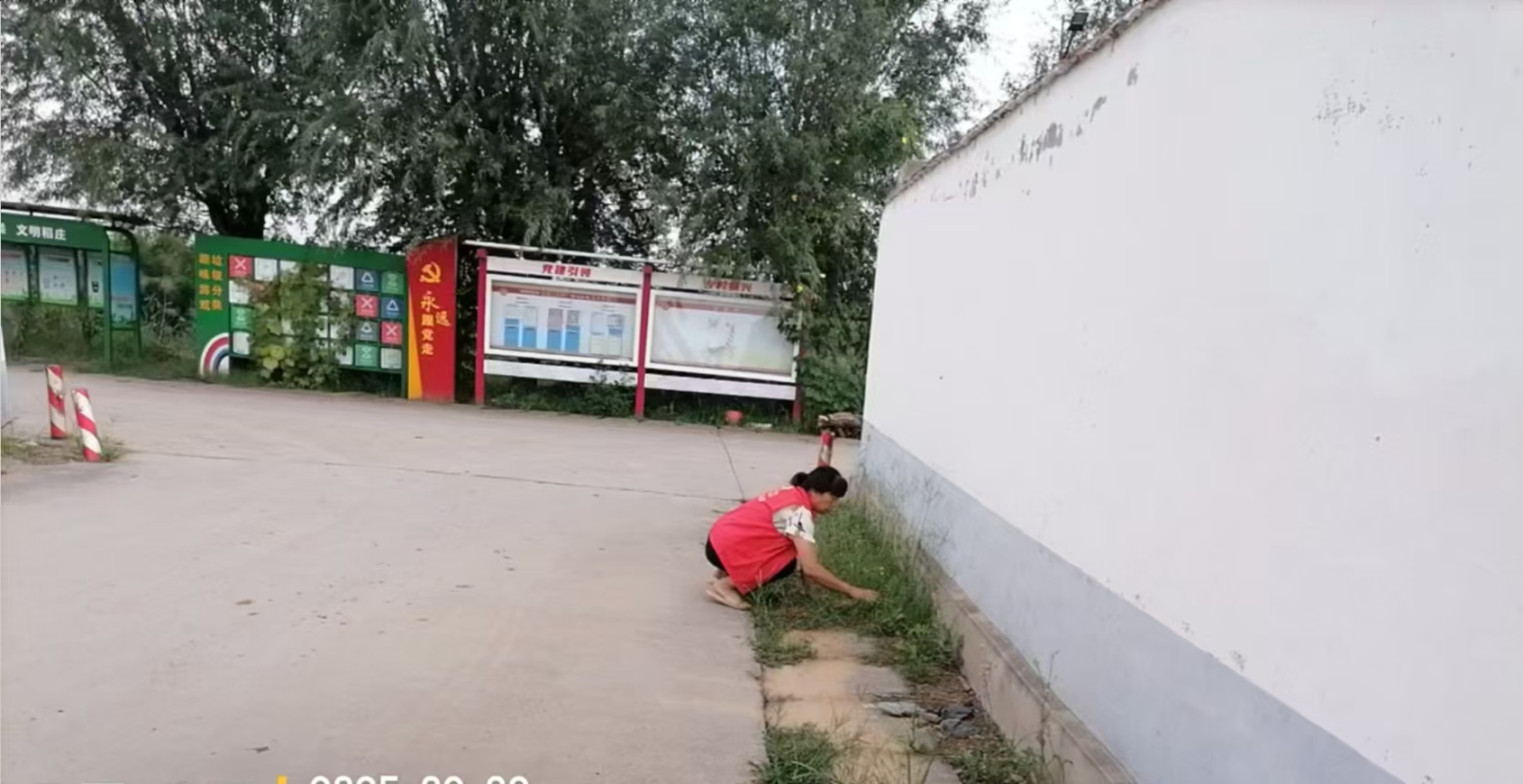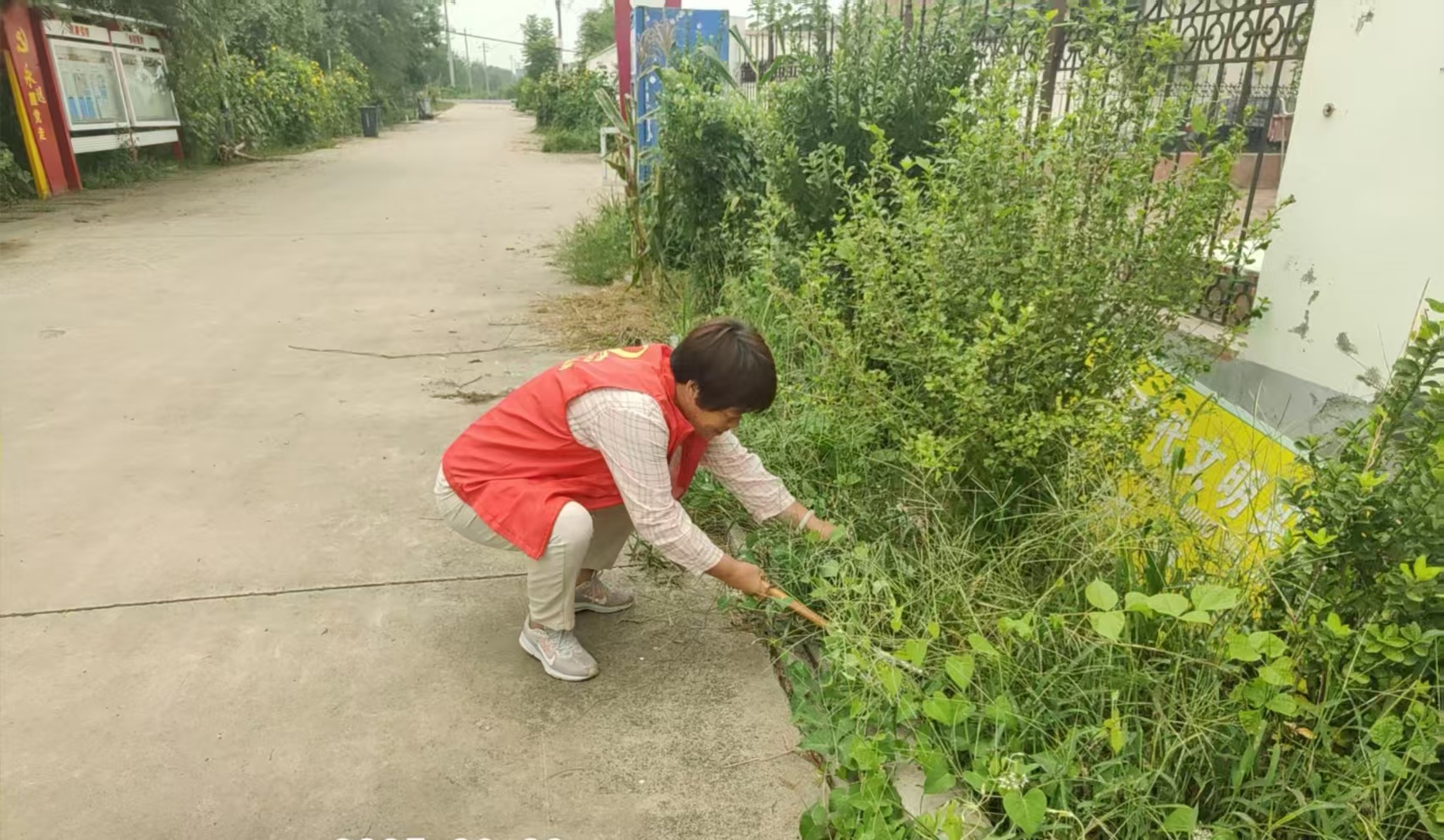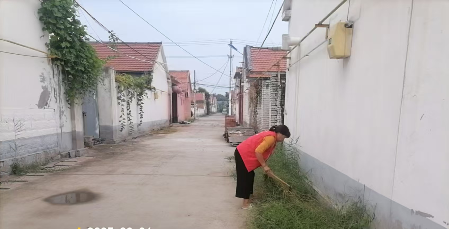 2025年9月30日,稻庄镇印家村组织志愿服务队队员清理大街小巷内杂草和乱推乱放,为村民打造一个干净卫生的生活环境。
