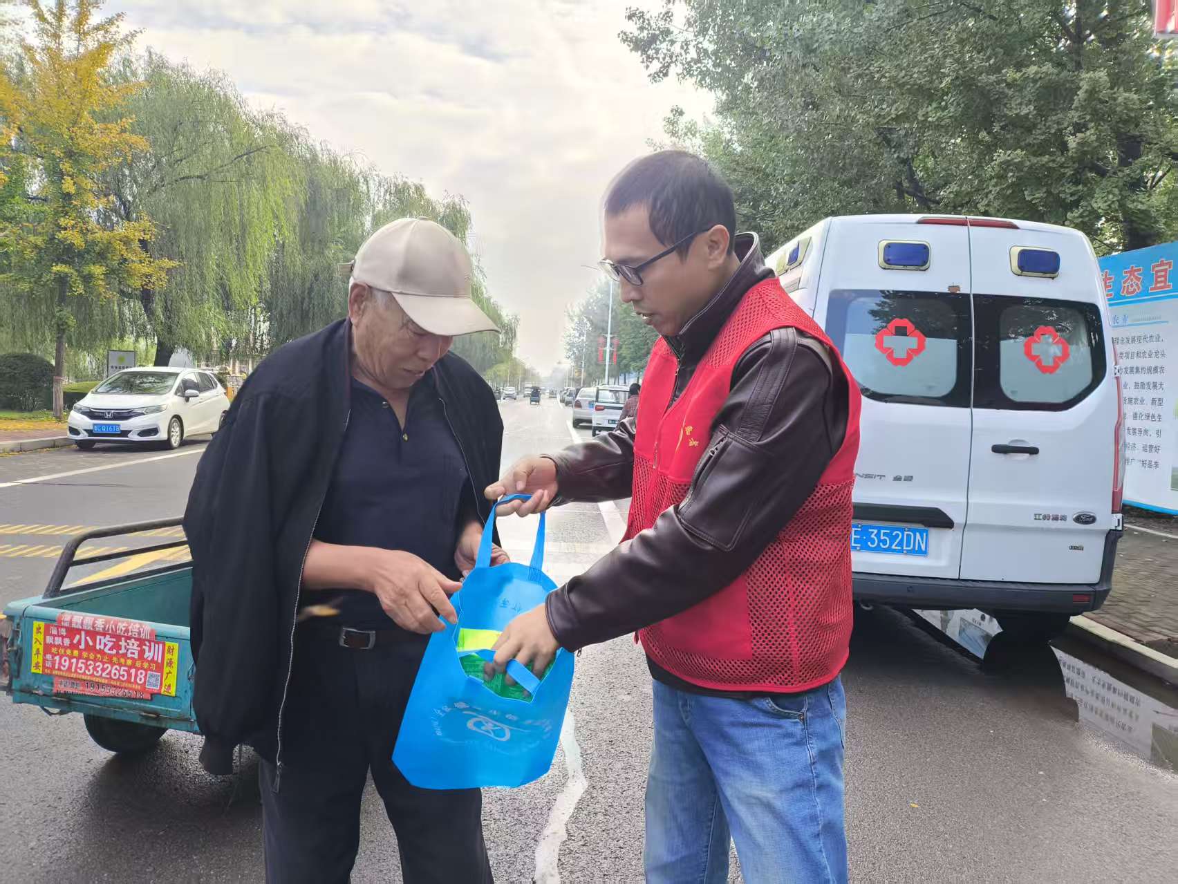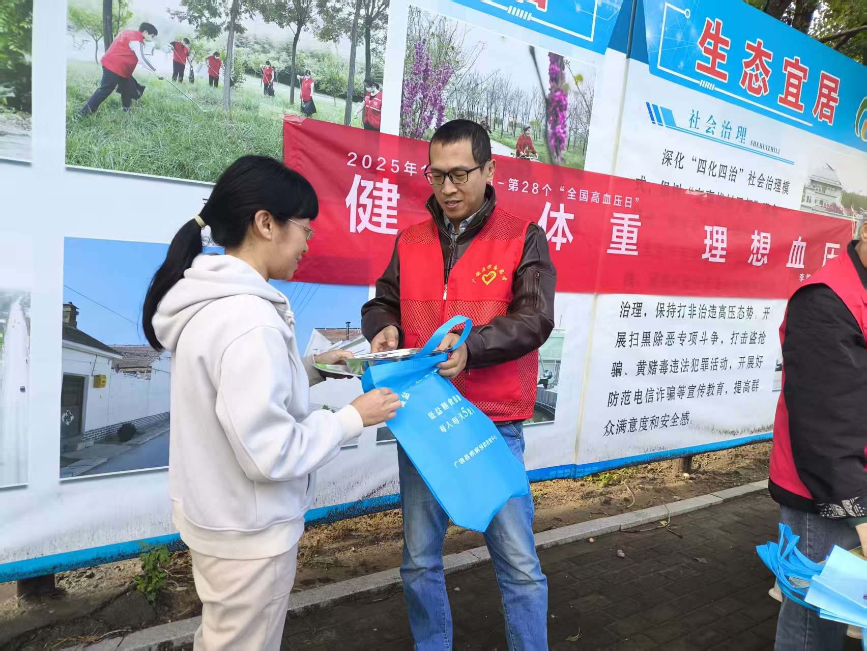 2025年10月13日广饶县疾病预防控制中心志愿者走进李鹊镇李东村开展高血压日宣传志愿活动,为市民讲解高血压防治知识,并发放宣传材料和宣传品