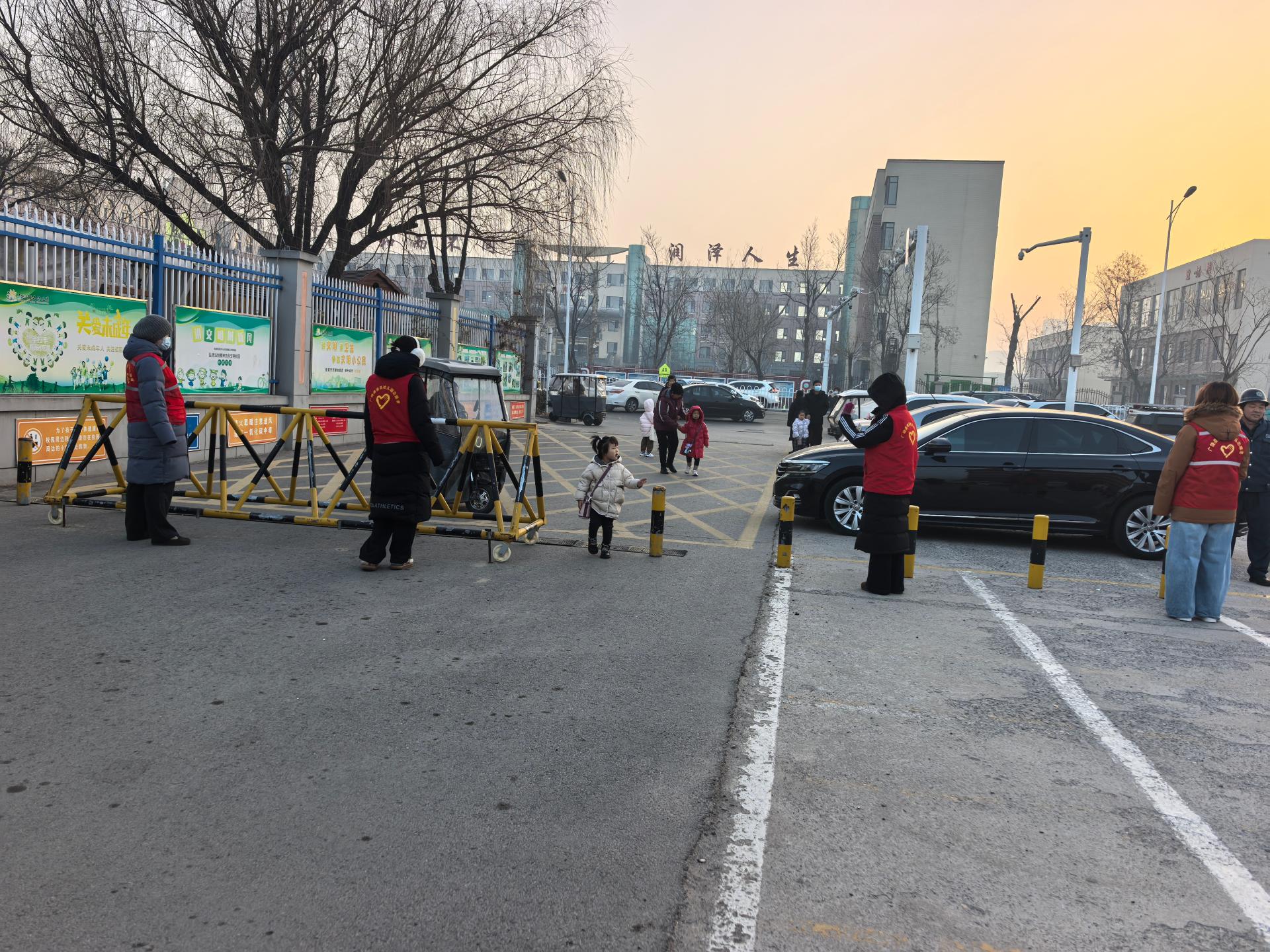 为保护孩子们的安全,广饶县育英幼儿园的领导带领值班教师每天早上都早早来到幼儿园门口执勤,看护孩子们上下学路队。他们站在幼儿园门口的值班点位上,化身安全监督员,提醒孩子们不扎堆、不拥挤、不乱跑,护佑着孩子们安全有序出入校门,进一步消除校园安全隐患,确保师生生命财产安全。
