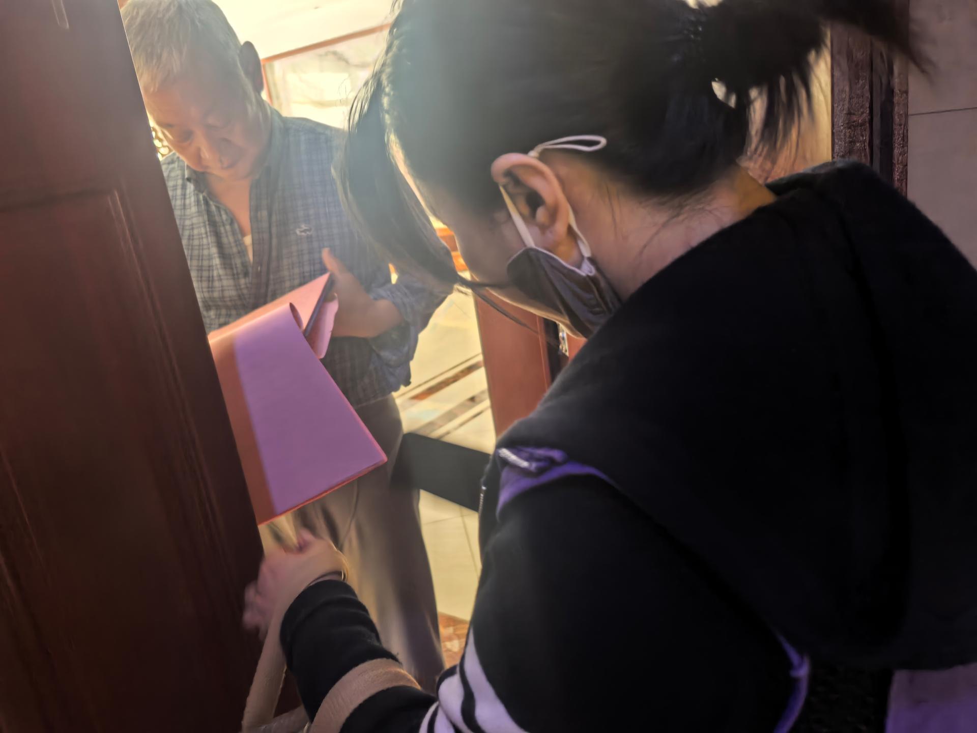 玉兰社区开展安鑫养老志愿服务活动,志愿者进入老人家中,关心老人身体健康,于无声中完成静默认证。玉兰社区巾帼志愿服务为此活动提供志愿服务。
