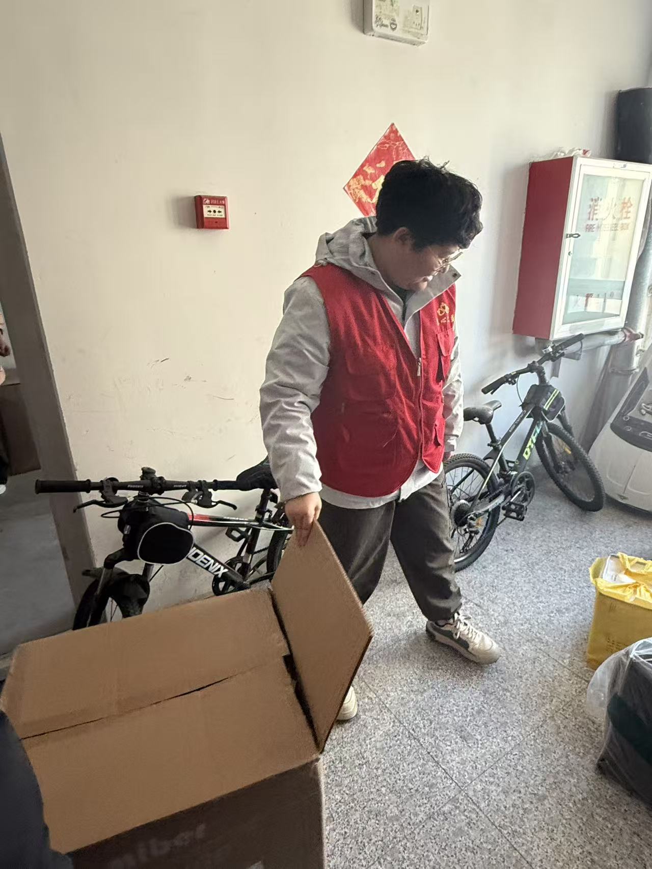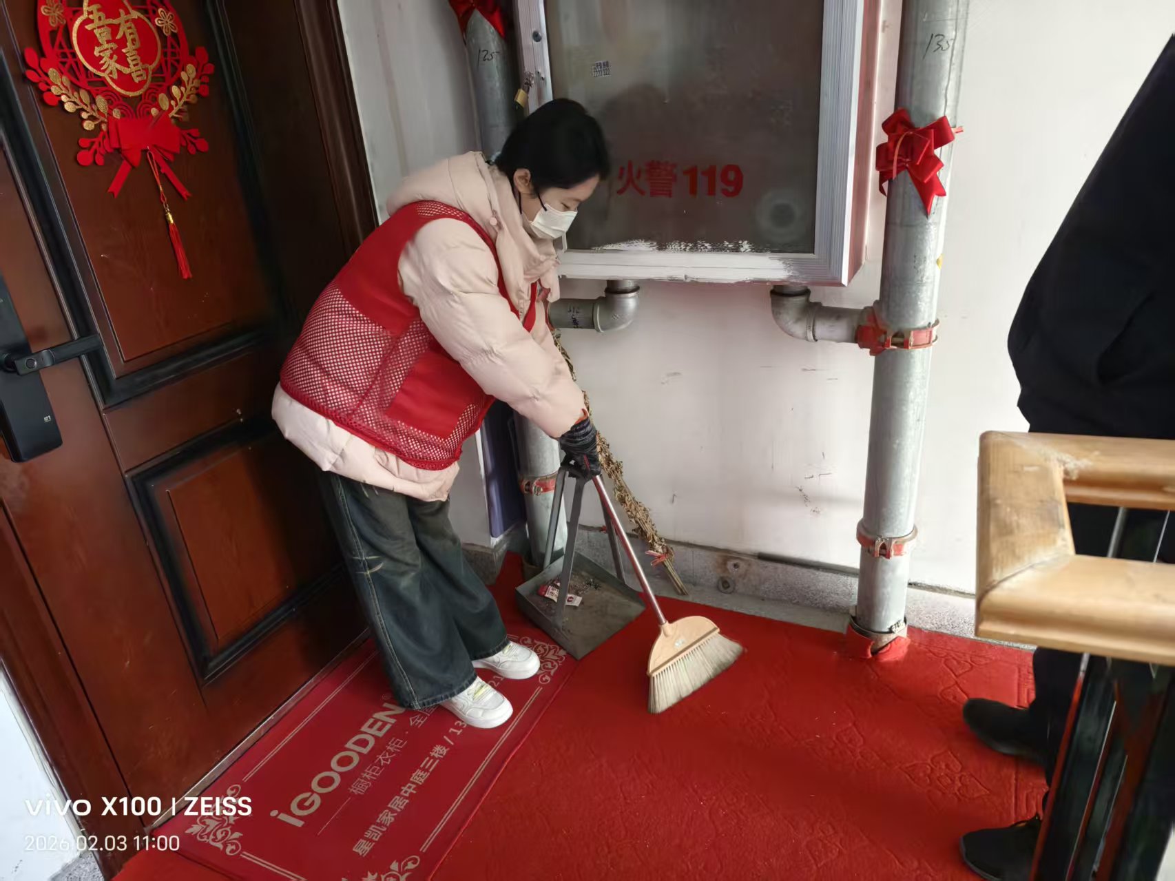 汇泉社区组织放假大学生开展寒假社会实践活动,帮助居民清理楼道垃圾和消防通道,使居民度过一个祥和安宁的春节