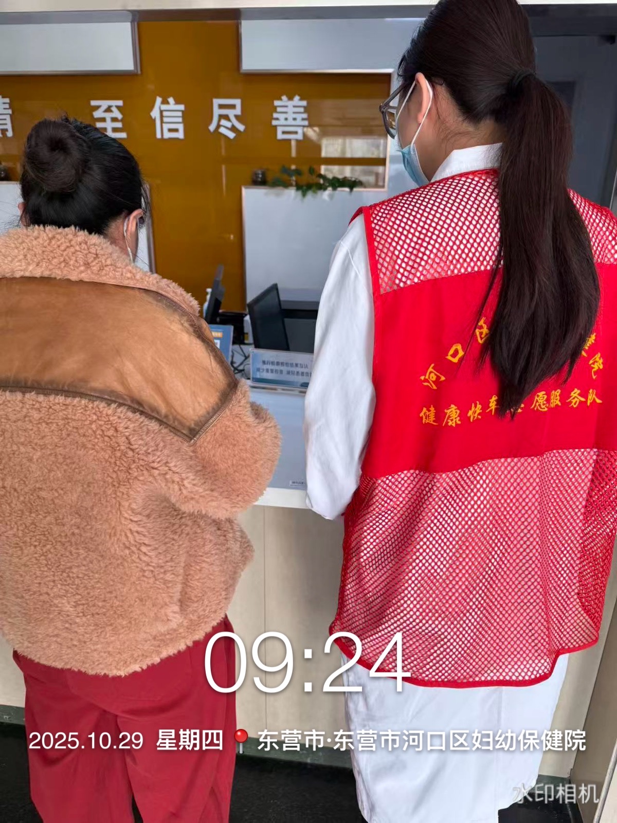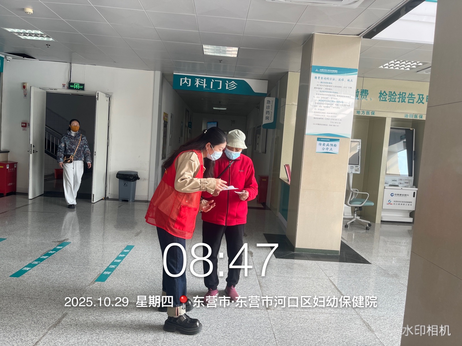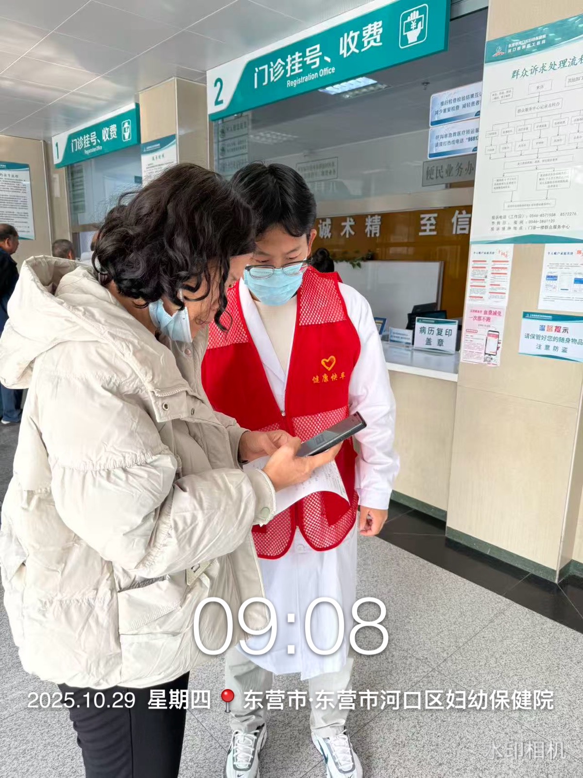 河口区妇幼保健院健康快车志愿服务队在医院院内门诊大厅、诊间、特检等多处开展咨询、导诊、挂号、购药等志愿服务活动,帮助就诊的老年人、孕妇、军人、退役军人、残疾人等就诊人员完成就诊。