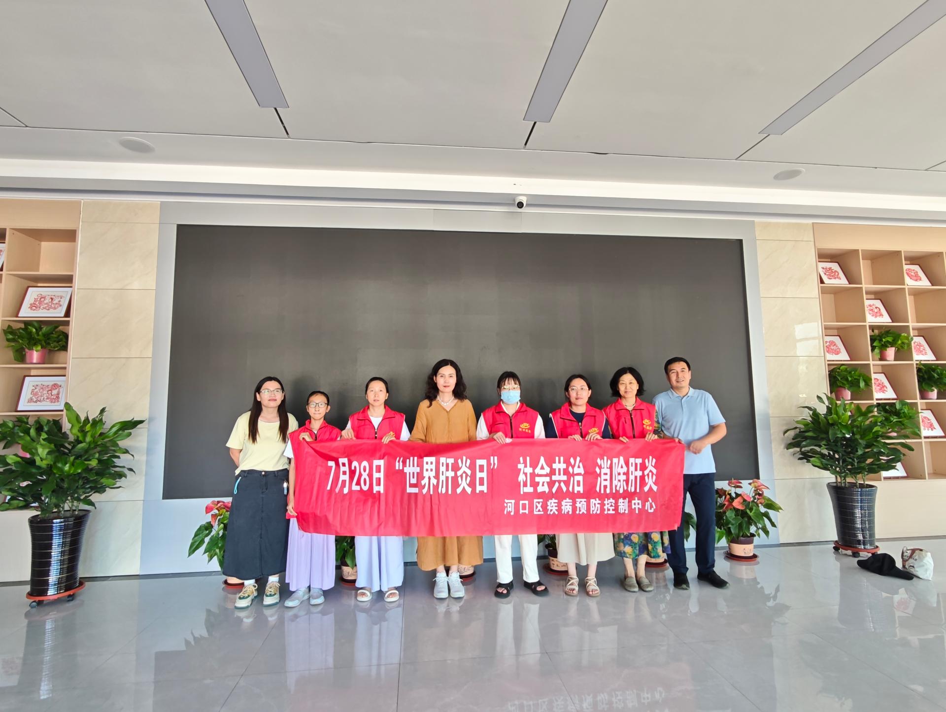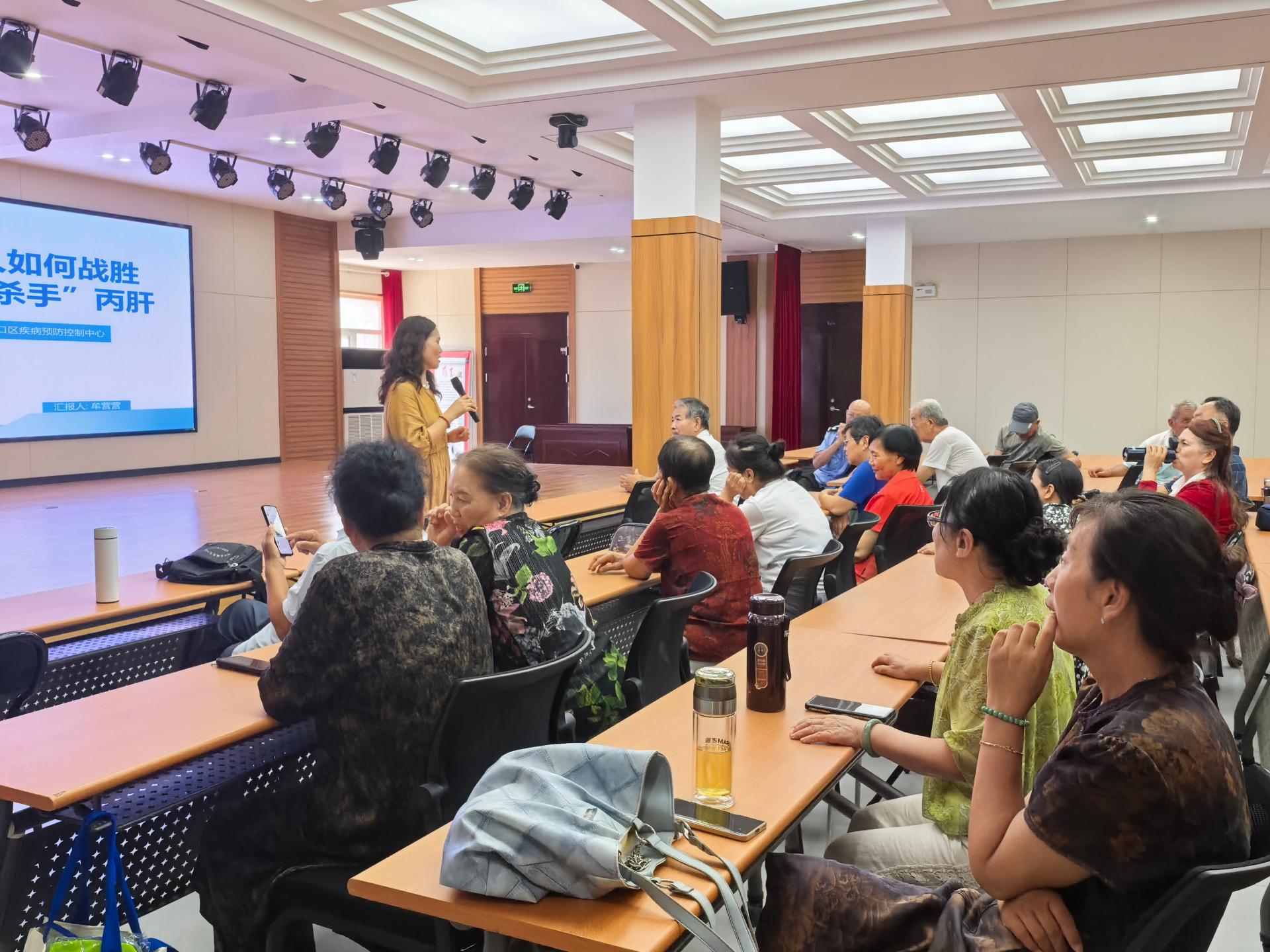 河口区疾病预防控制中心进春和园老年大学开展7.28世界肝炎日宣传志愿活动,活动统一乘车统一穿志愿者服装。