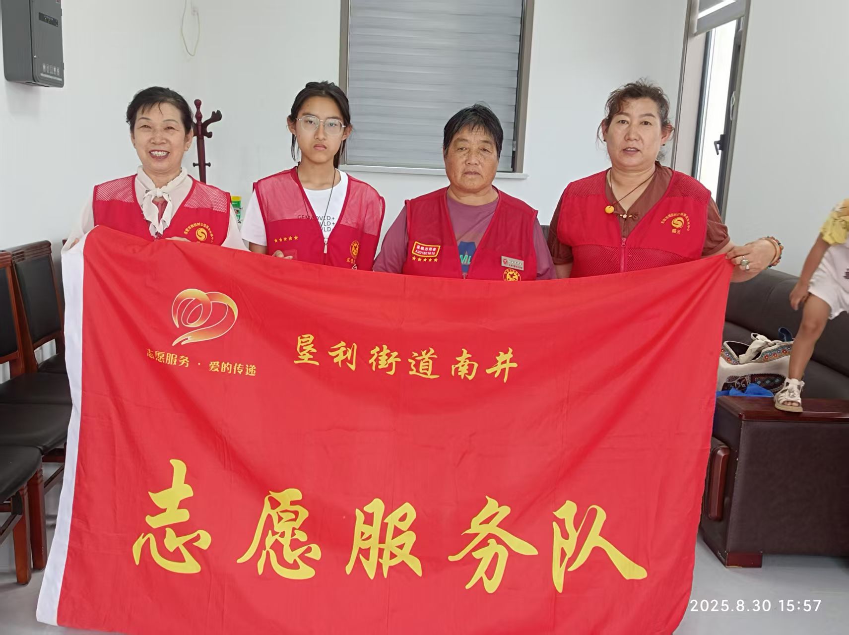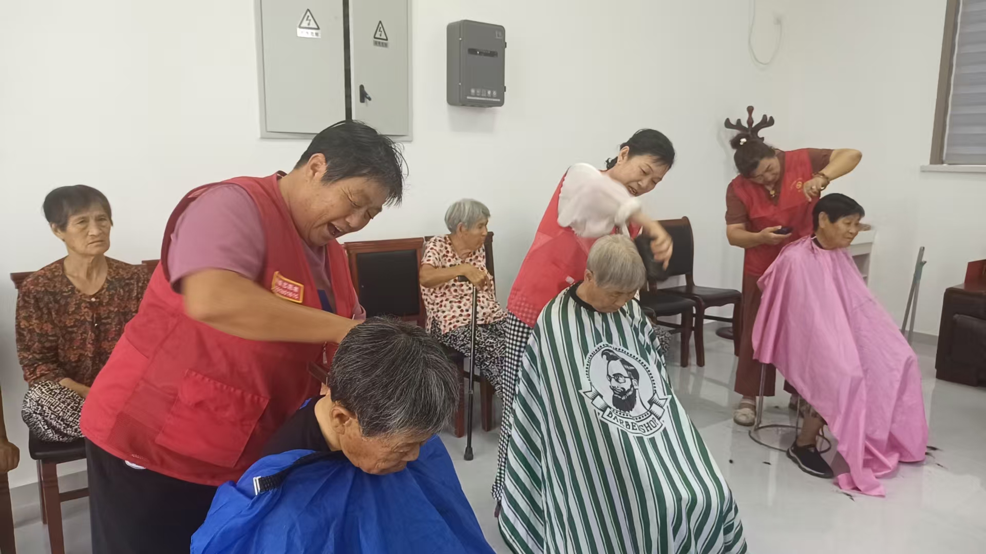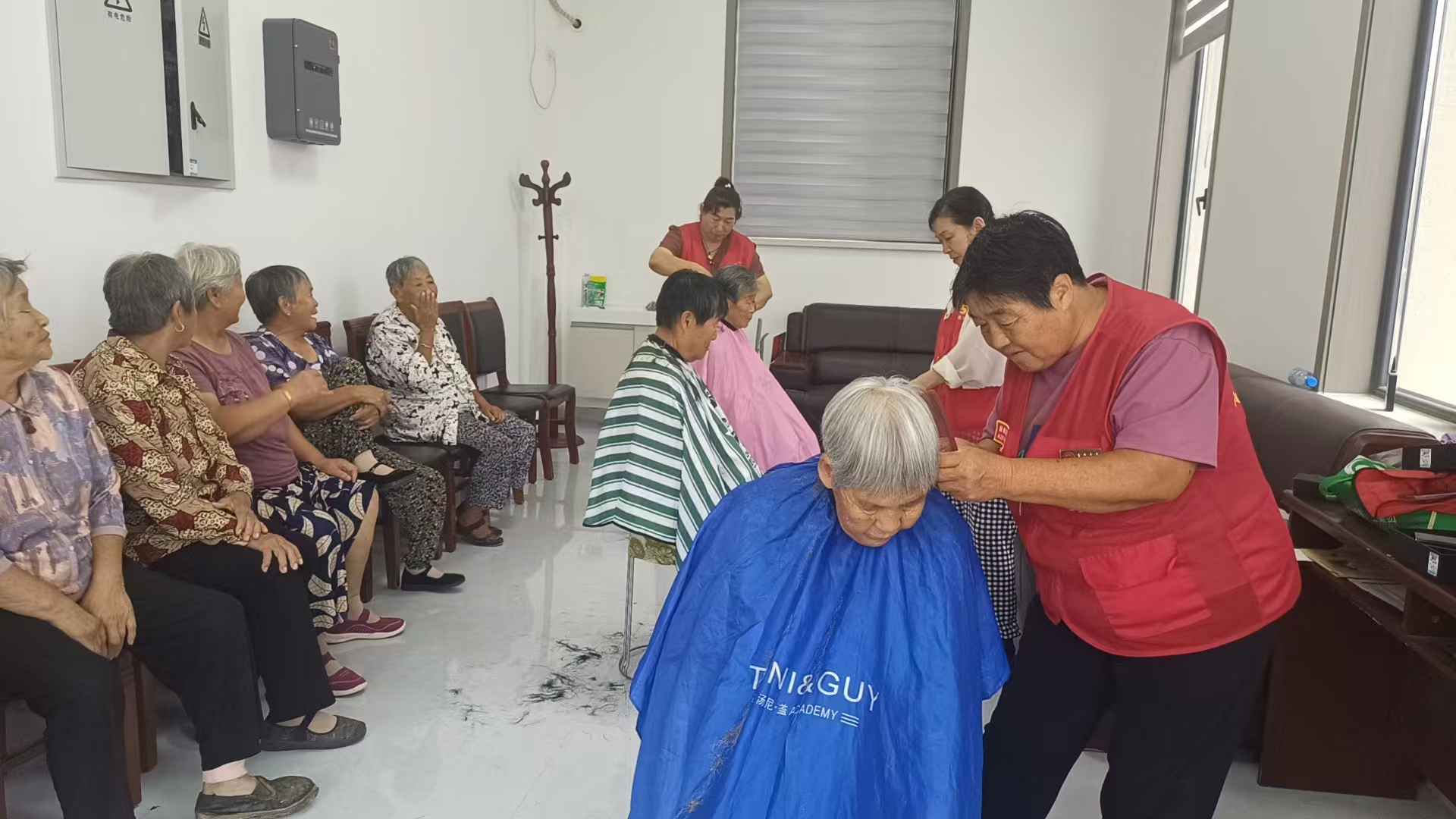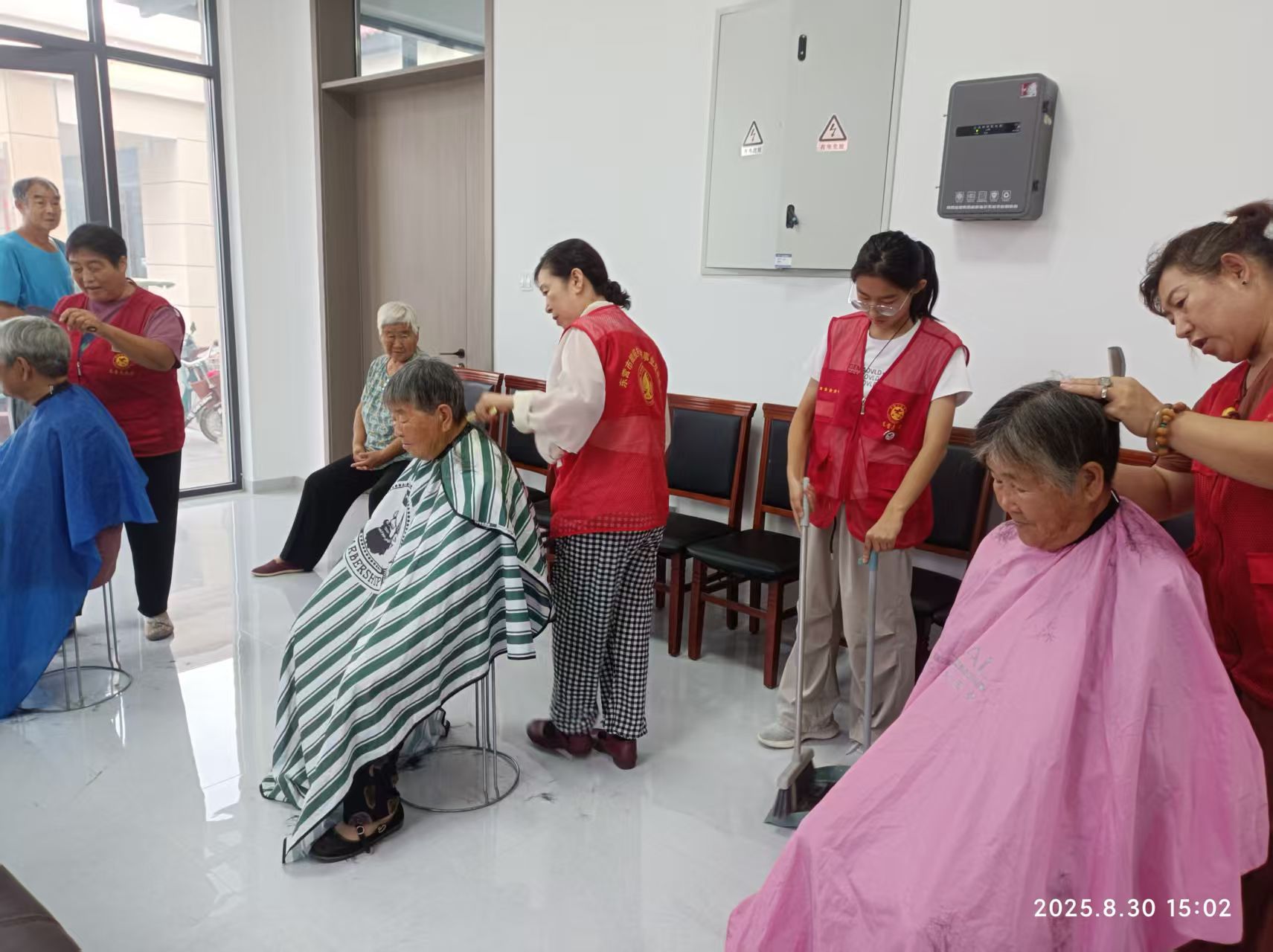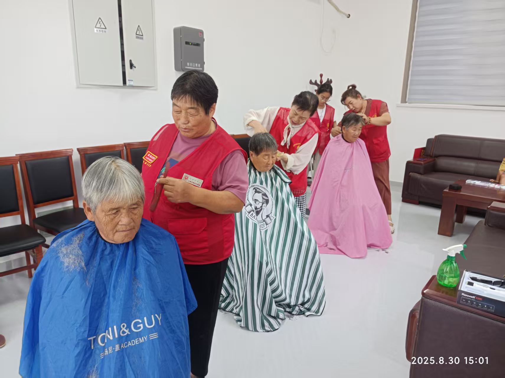 南井志愿服务队爱心理发走进新安村,为村民免费理发,志愿者提前10分钟到达,志愿者统一穿志愿马甲,细心周到,热心公益,