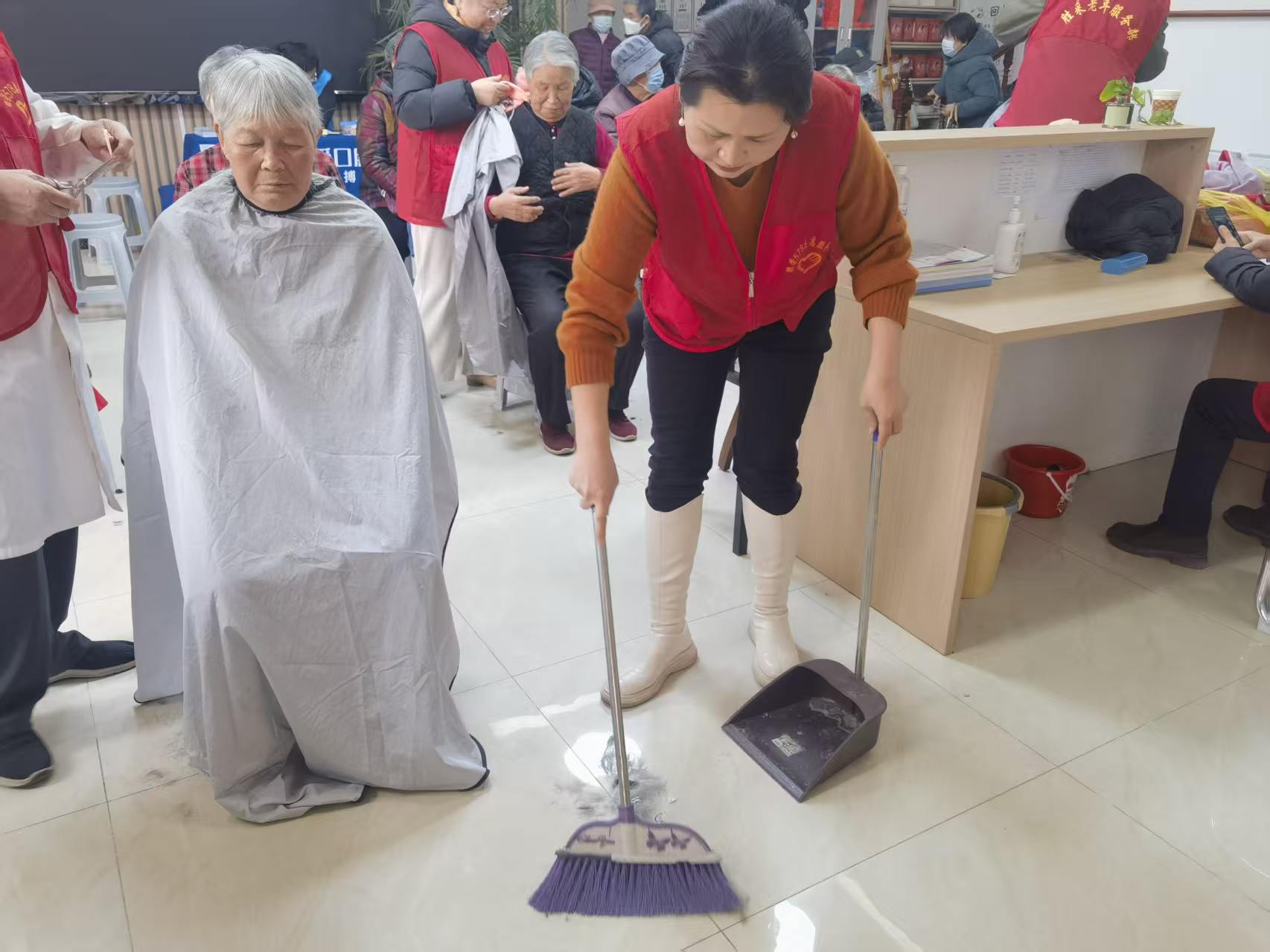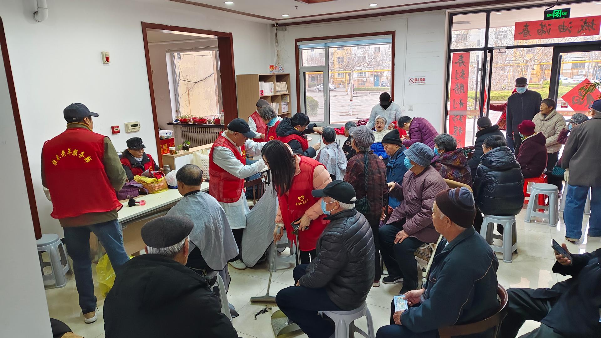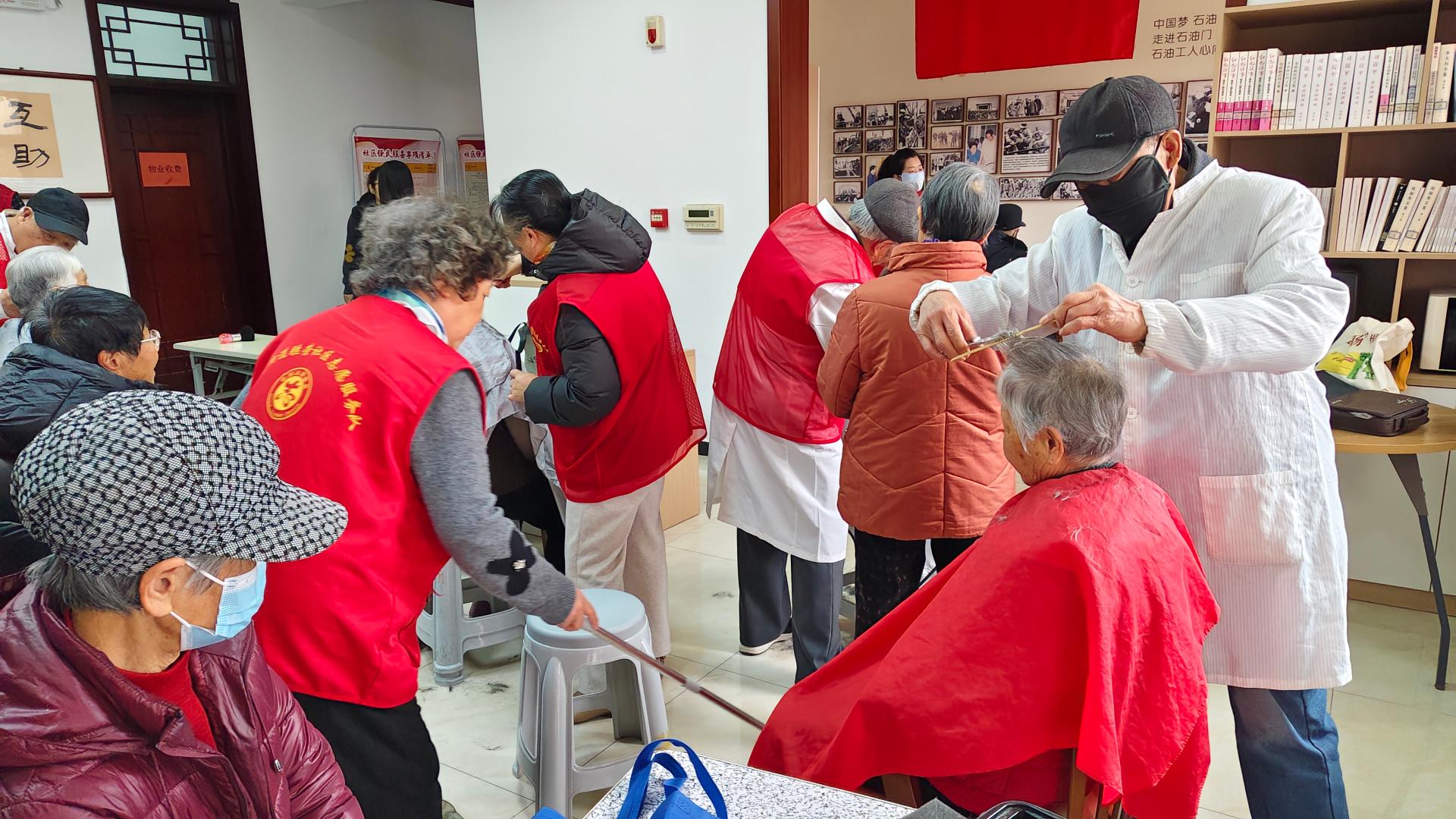 2026年3月18日胜荣社区公益市集志愿活动,活动项目有:义务理发、戗菜刀、磨剪子、口腔义诊,外科义诊,测血糖、测血压、肩颈推拿等志愿活动