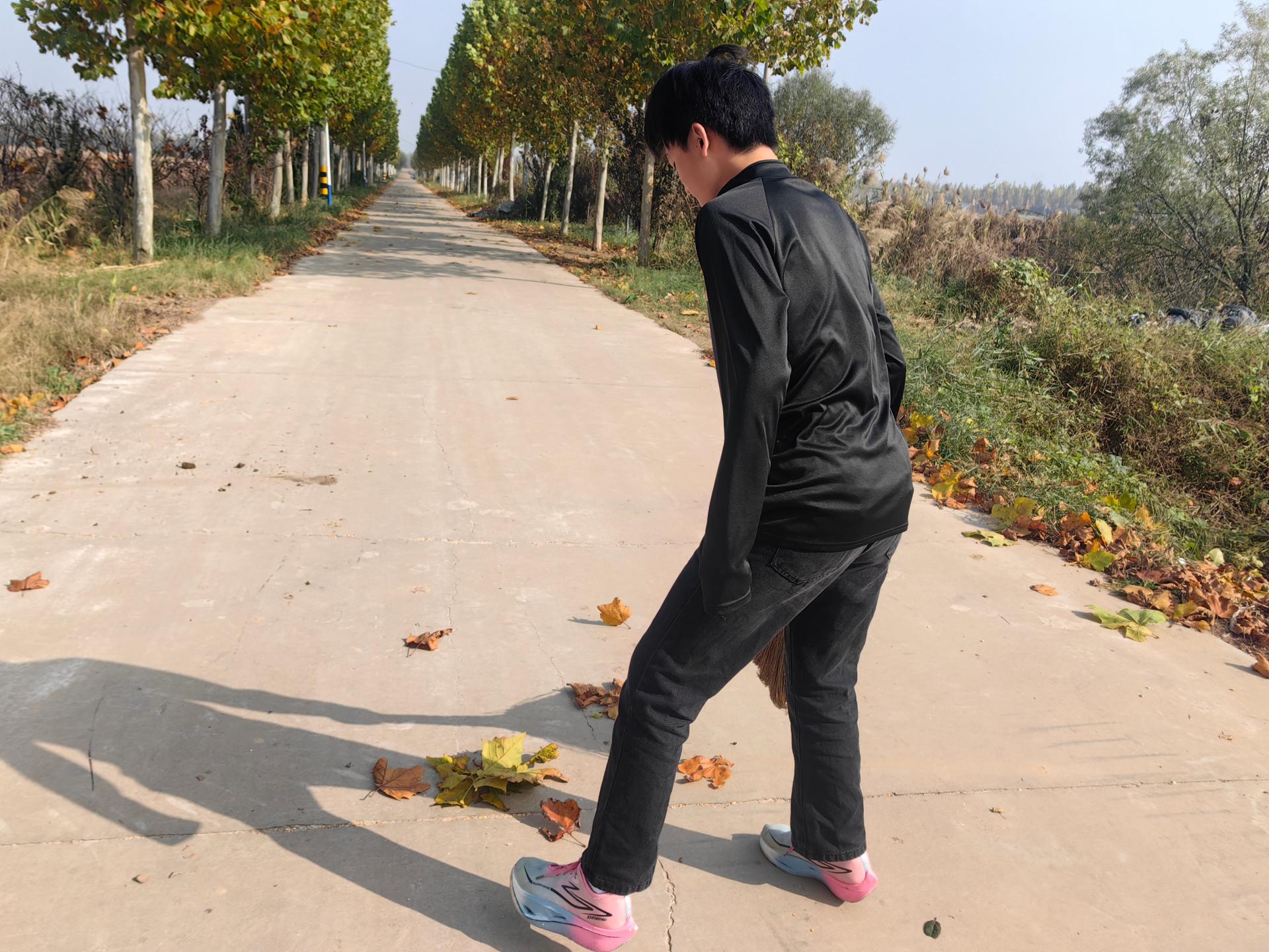 秋天到了,公路两边法桐开始落叶,为了保持广场公路清洁,组织人员清扫树叶和垃圾。同时锻炼孩子们养成爱护环境的好习惯。