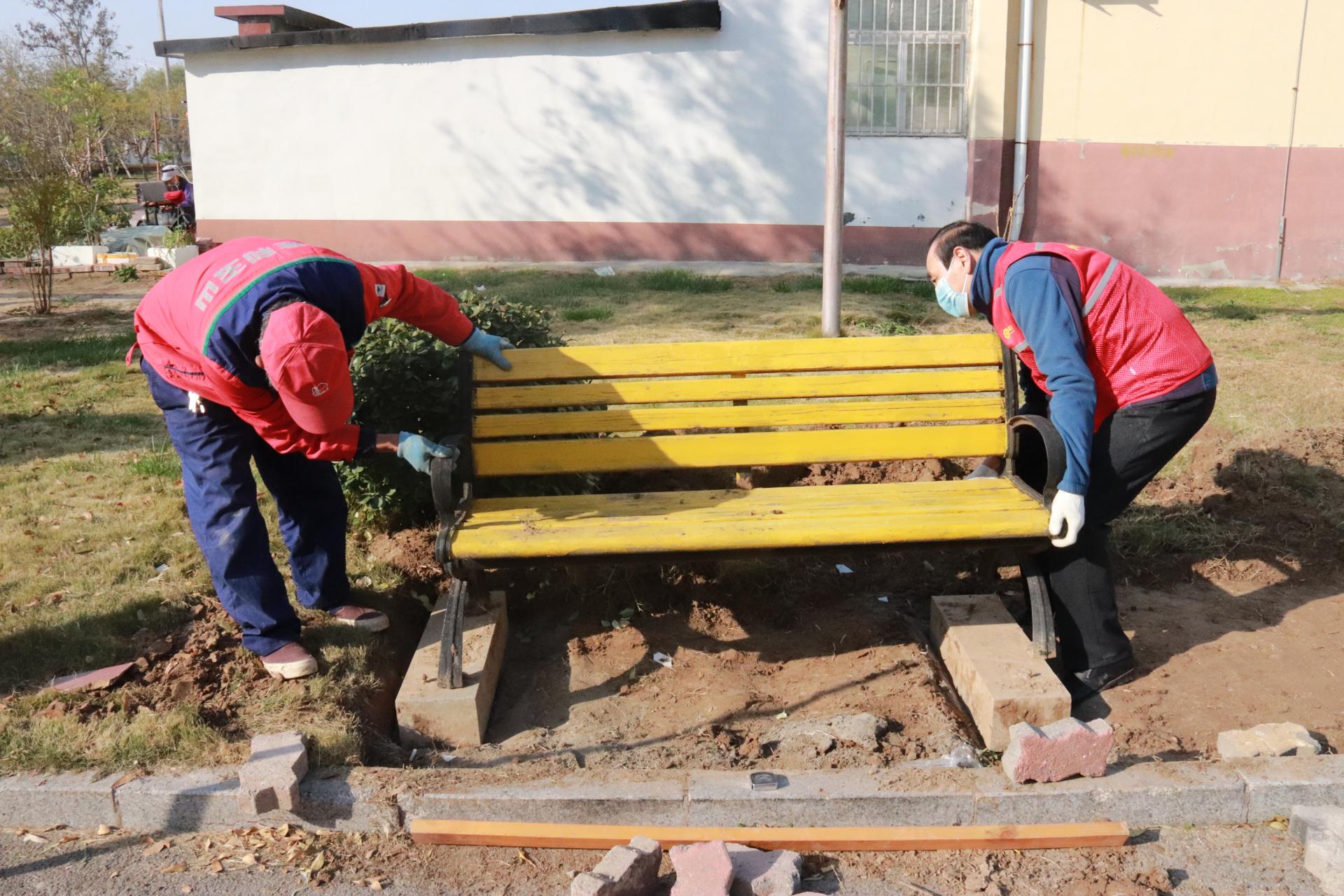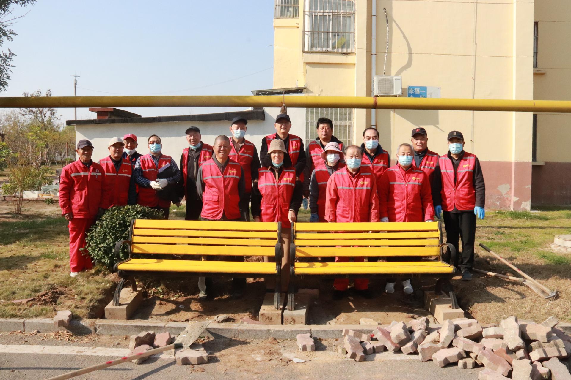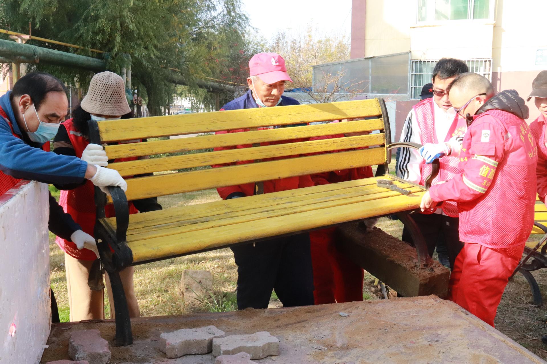 幸福社区康乃馨“老党员”整治幸福一区休闲座椅志愿服务活动