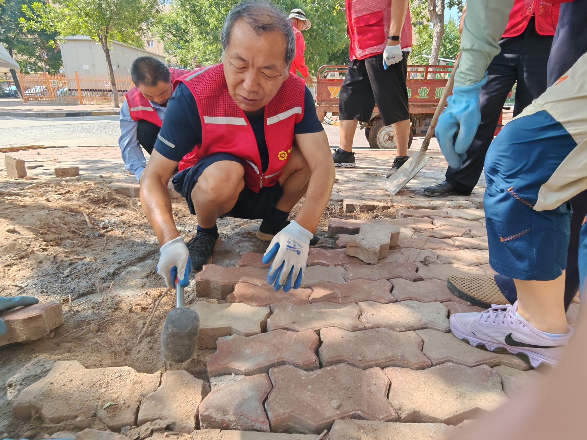 幸福社区“整治花砖凸起 呵护安全出行”志愿活动