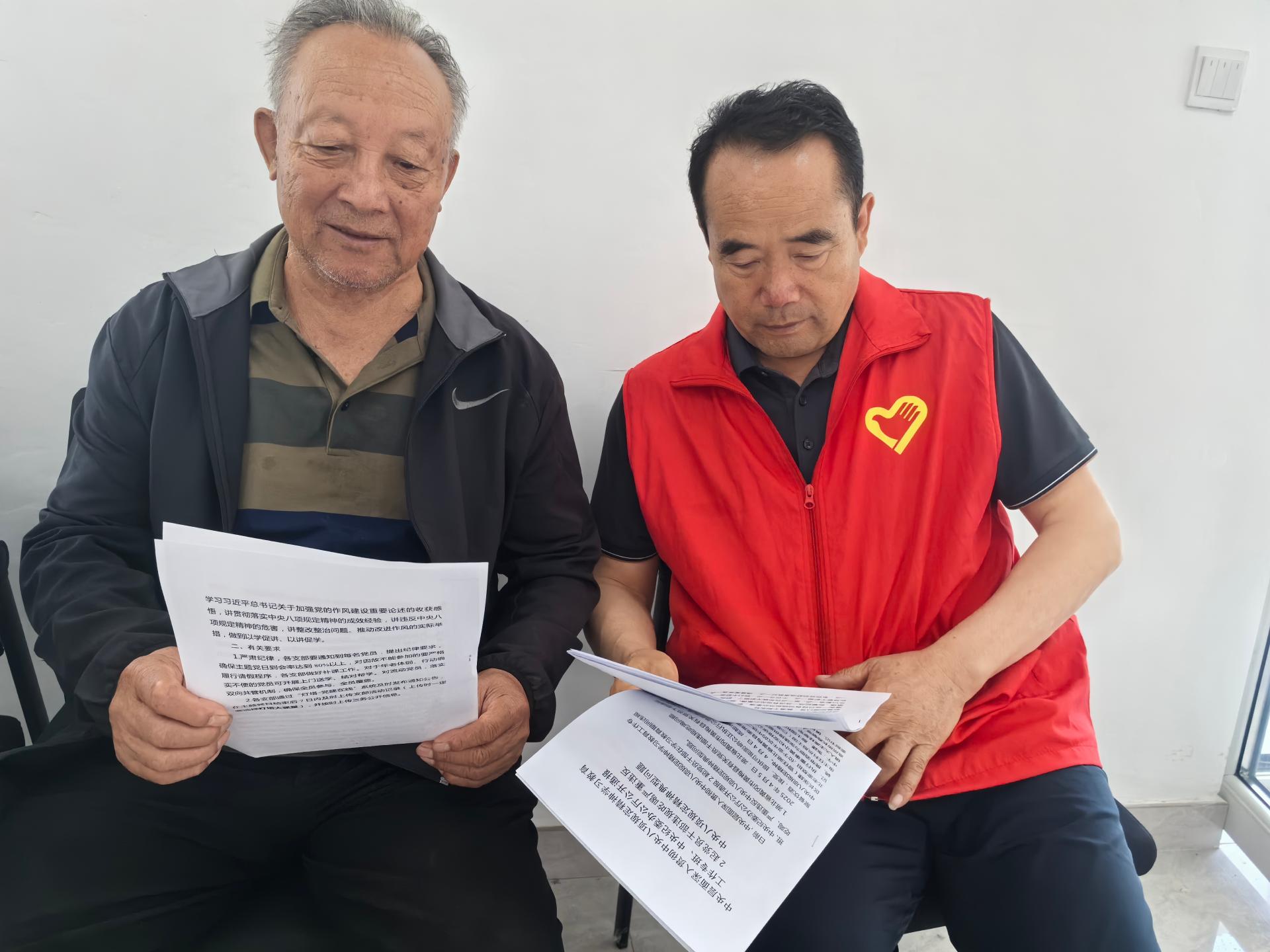 2025年6月10日大杜村党支部主题党日学习,组织年轻党员志愿者,到年老体弱,不能参加学习的老党员送学上门,争取学习不落队。