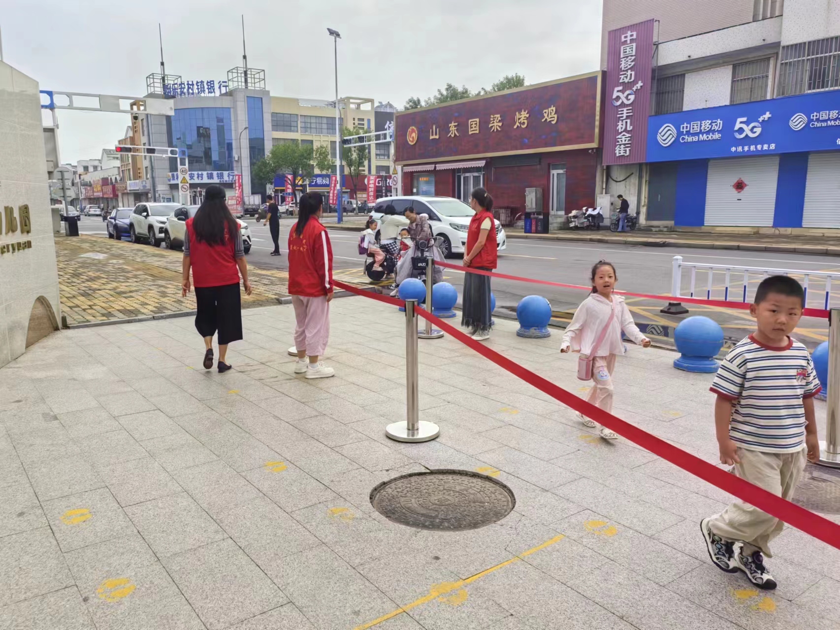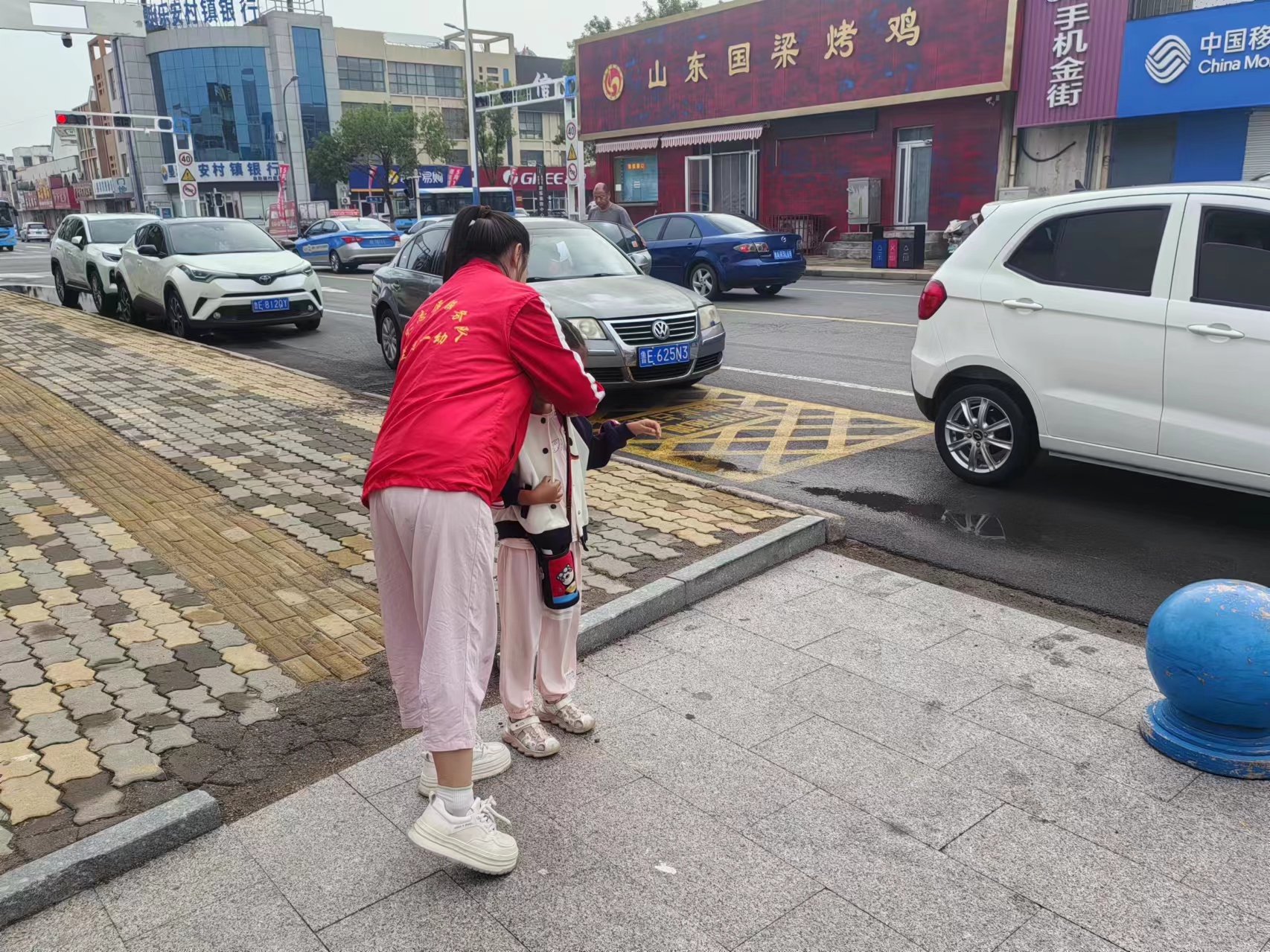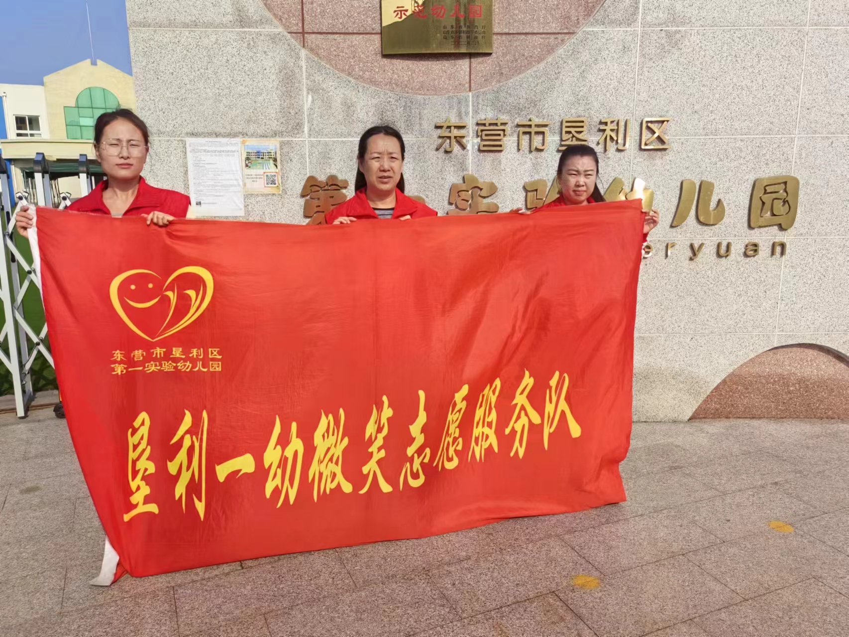 做好幼儿入园离园的安全护送工作,志愿者们认真的疏导来往的车辆,确保幼儿安全的过马路,志愿者们穿好志愿服