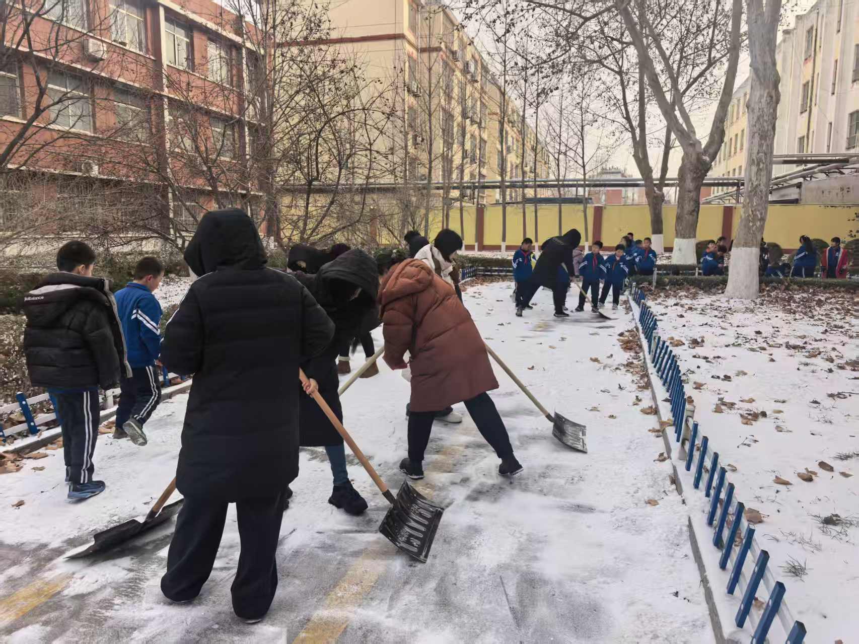 为了更好给孩子创造上学的环境,全体教职工清理学校积雪。志愿者们认真对待,步调一致,为孩子的健康成长保驾护航。