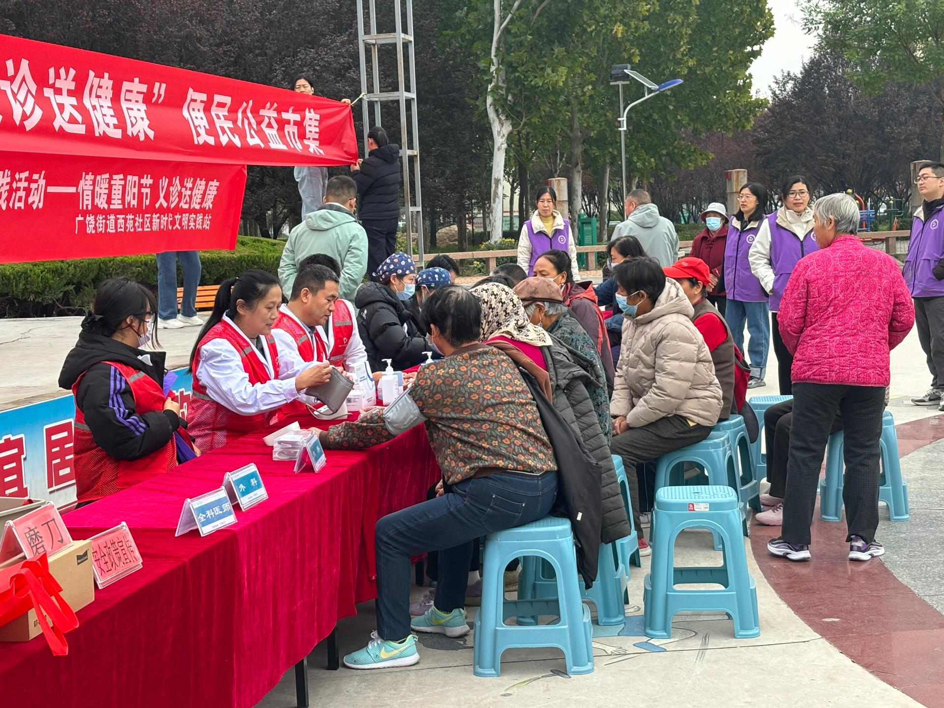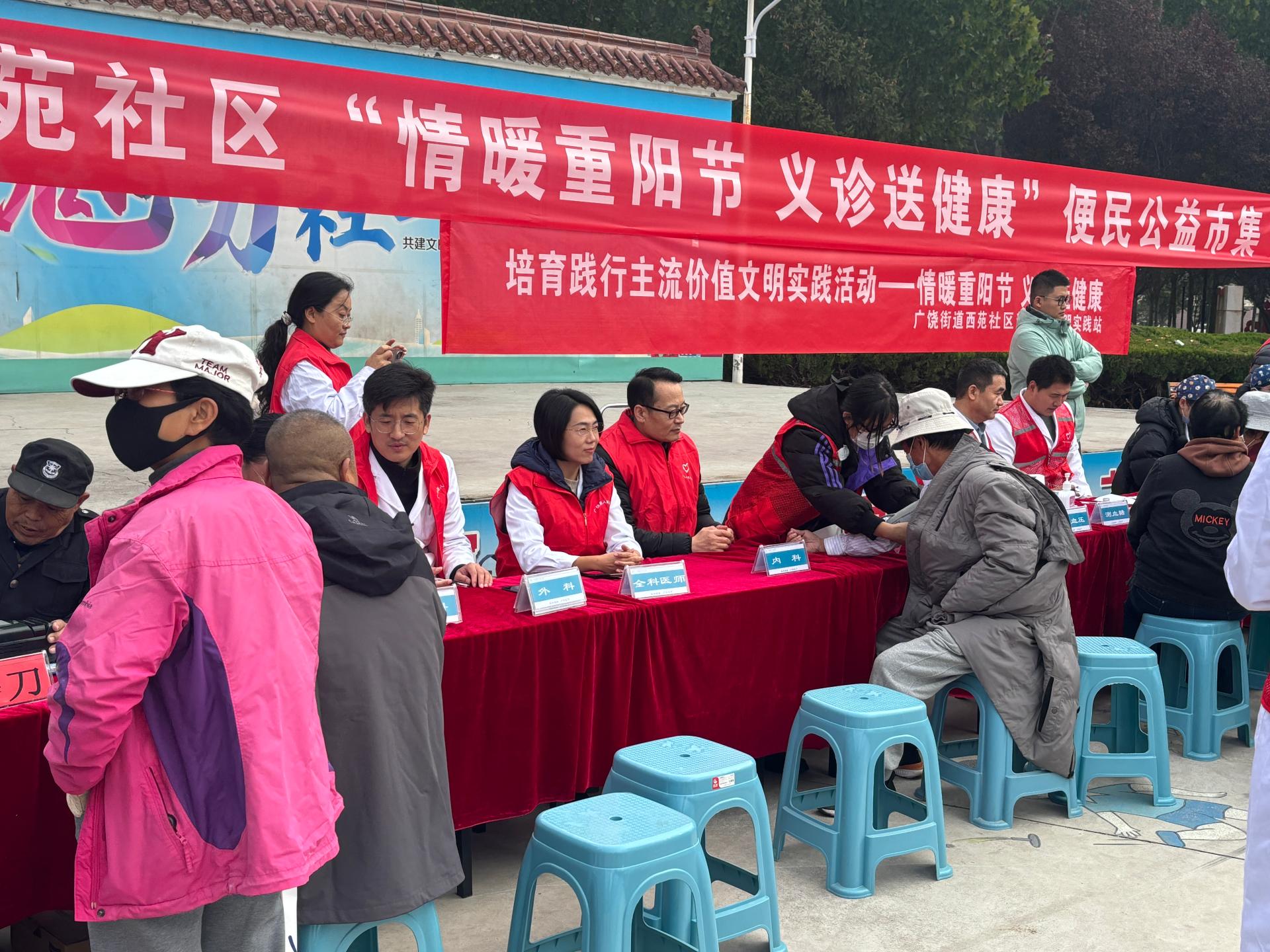 临近重阳节,广饶县人民医院党委联合西苑社区为社区居民提供测量血压、血糖、内外科等家门口的医疗卫生服务。