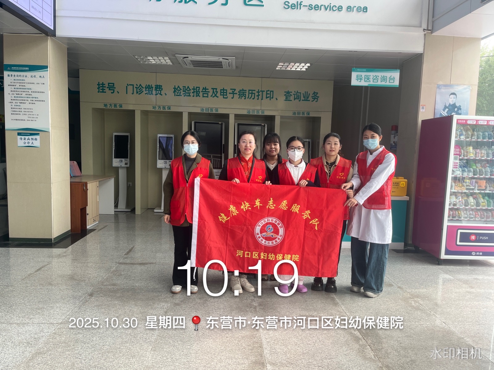 河口区妇幼保健院健康快车志愿服务队在医院院内门诊大厅、诊间、特检等多处开展咨询、导诊、挂号、购药等志愿服务活动,帮助就诊的老年人、孕妇、军人、退役军人、残疾人等就诊人员完成就诊。
