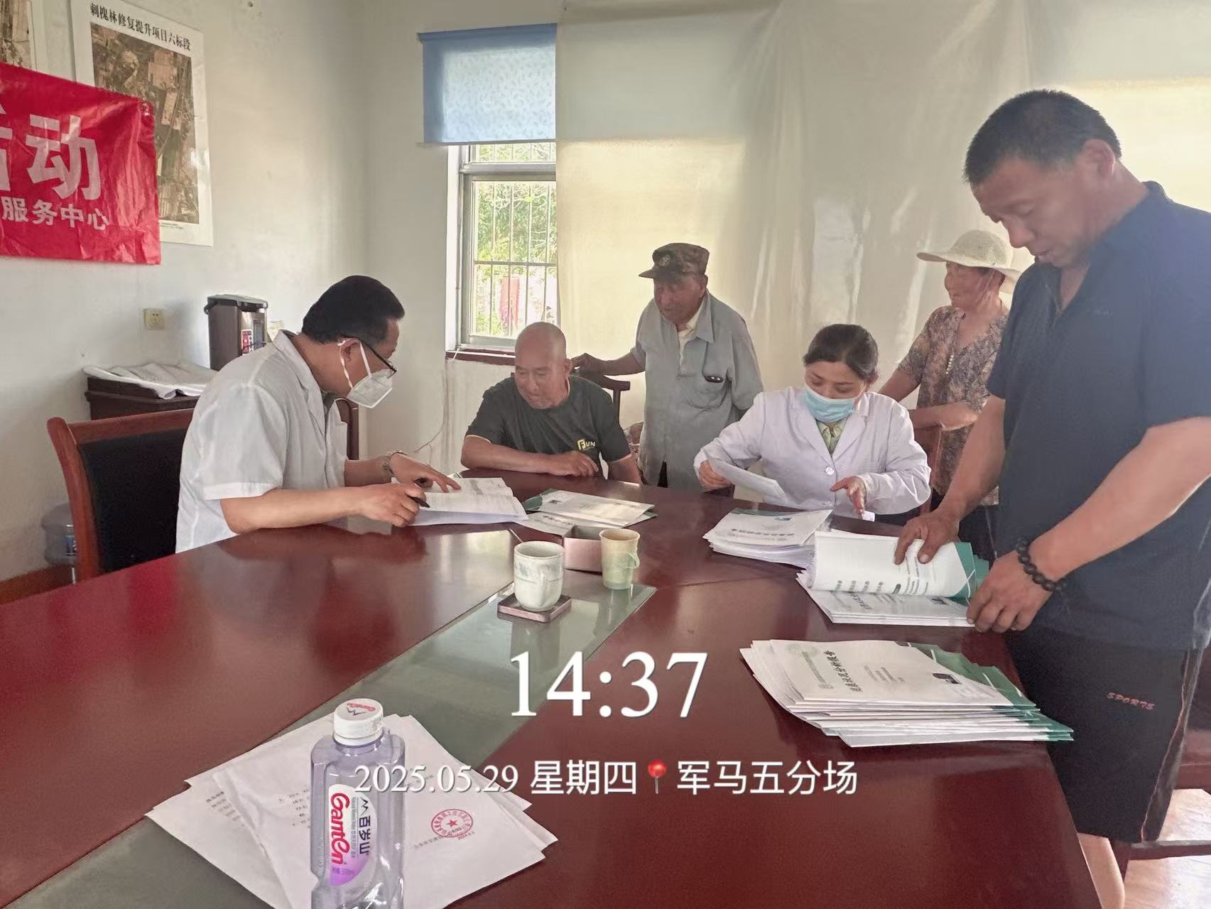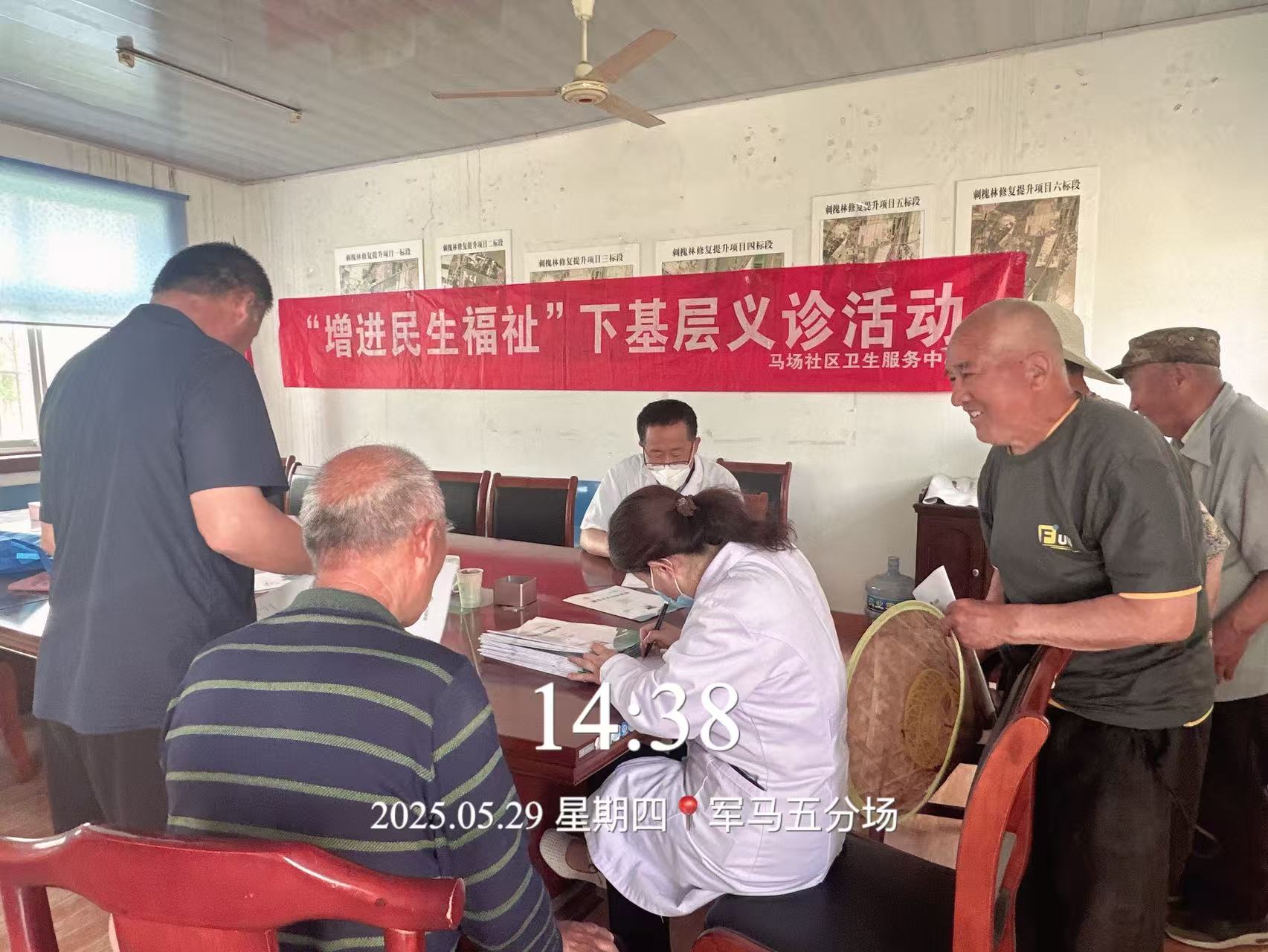 马场社区卫生服务中心在军马场集团五分场开展义诊活动,参加志愿活动人员统一志愿者服装,统一行动。认真完成好这项活动。