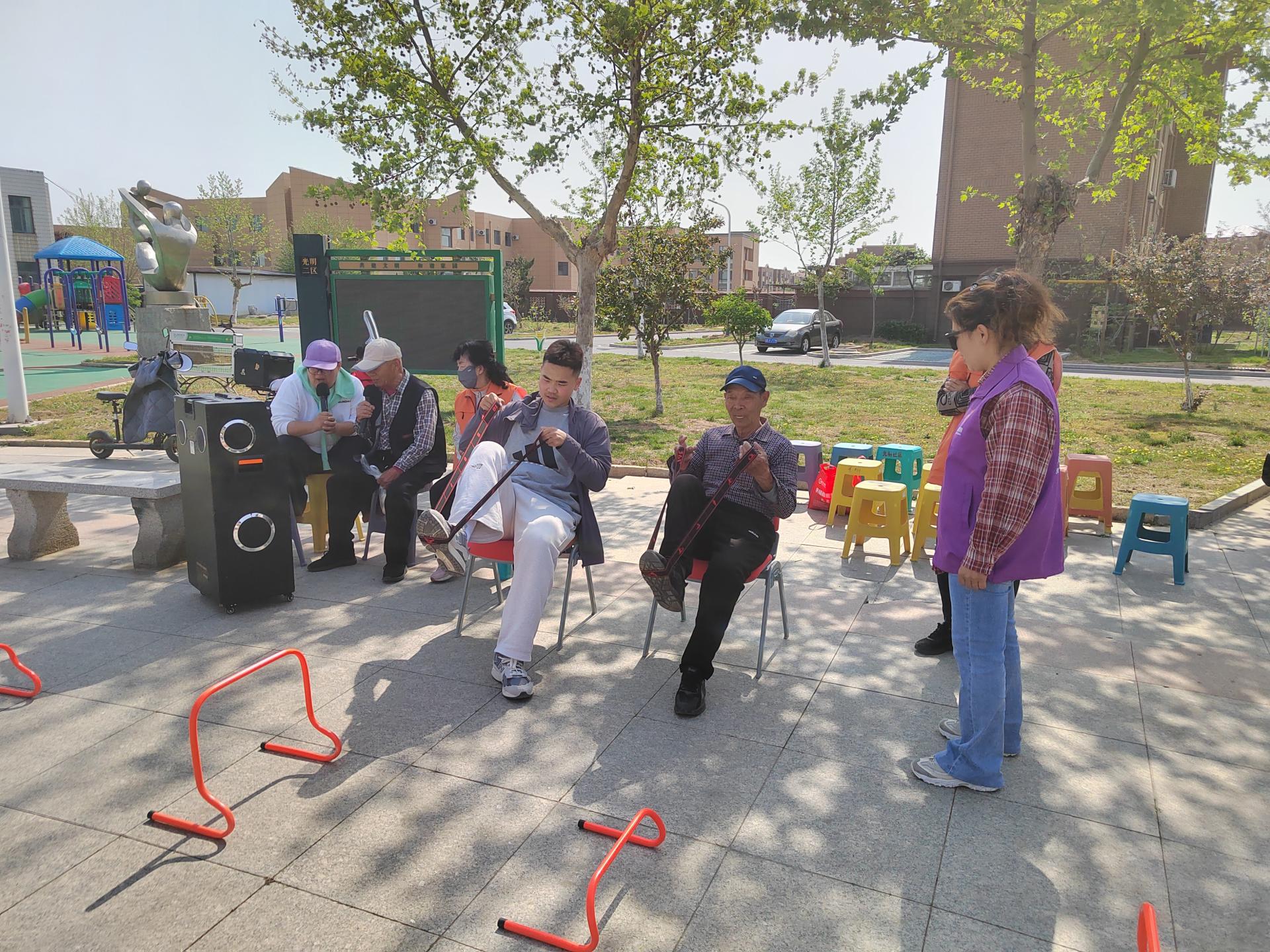 光明社区爱与陪伴志愿服务活动在本周五下午2:30在光明二区圆盘小广场进行陪伴,主任服务活动,与现场的老年人一起进行下肢力量训练