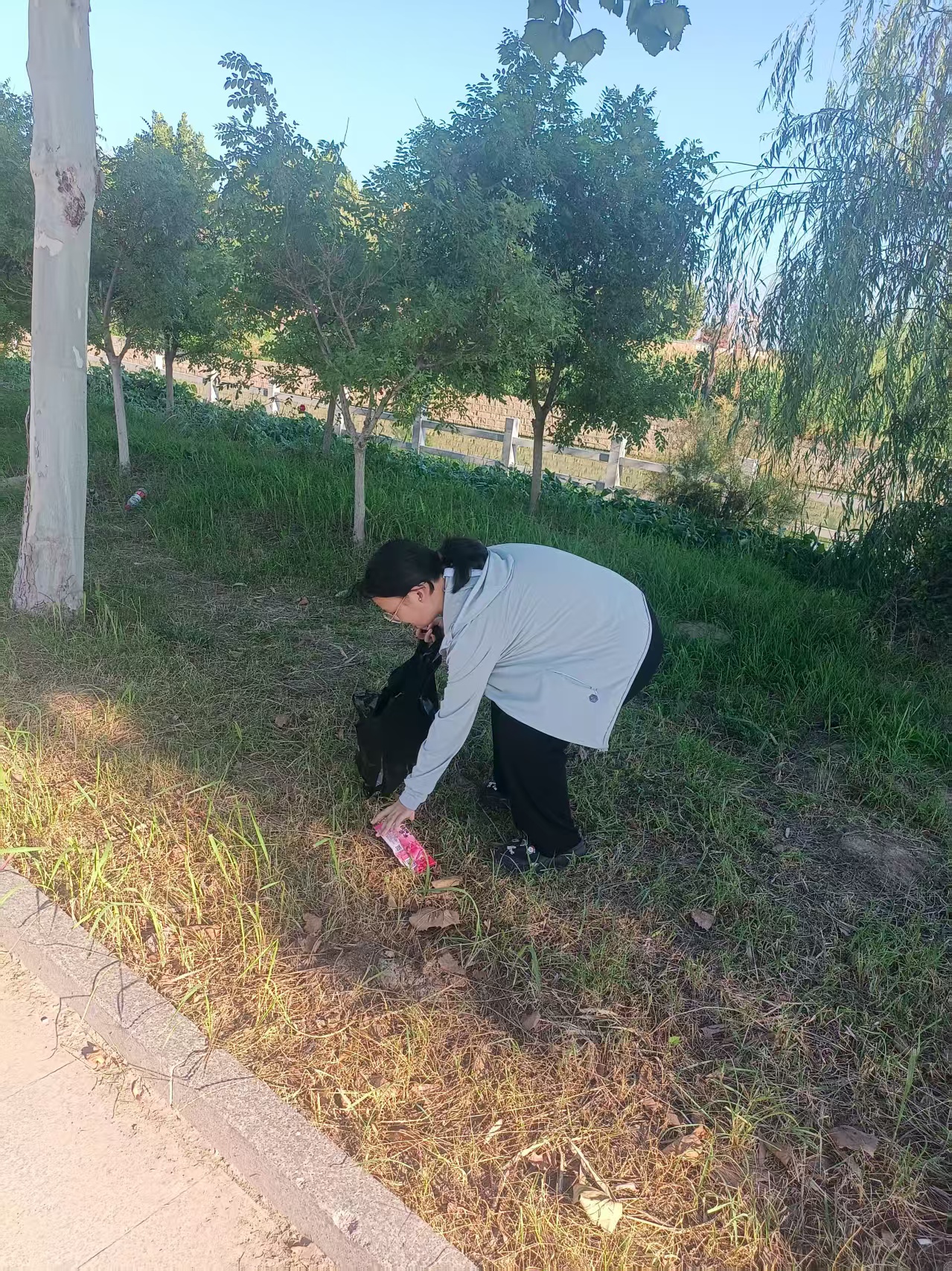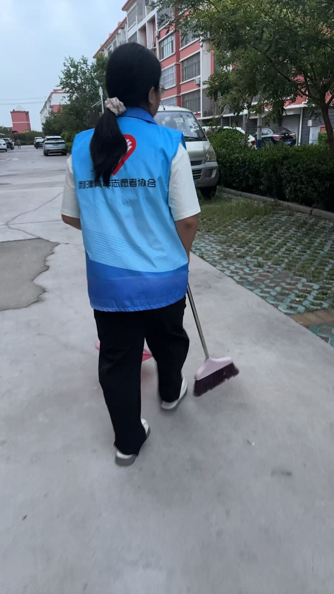 为了我们生活的环境更整洁,干净。各位志愿者不怕天气炎热,一起努力,把小区周围树叶,垃圾,塑料瓶子清理干净。