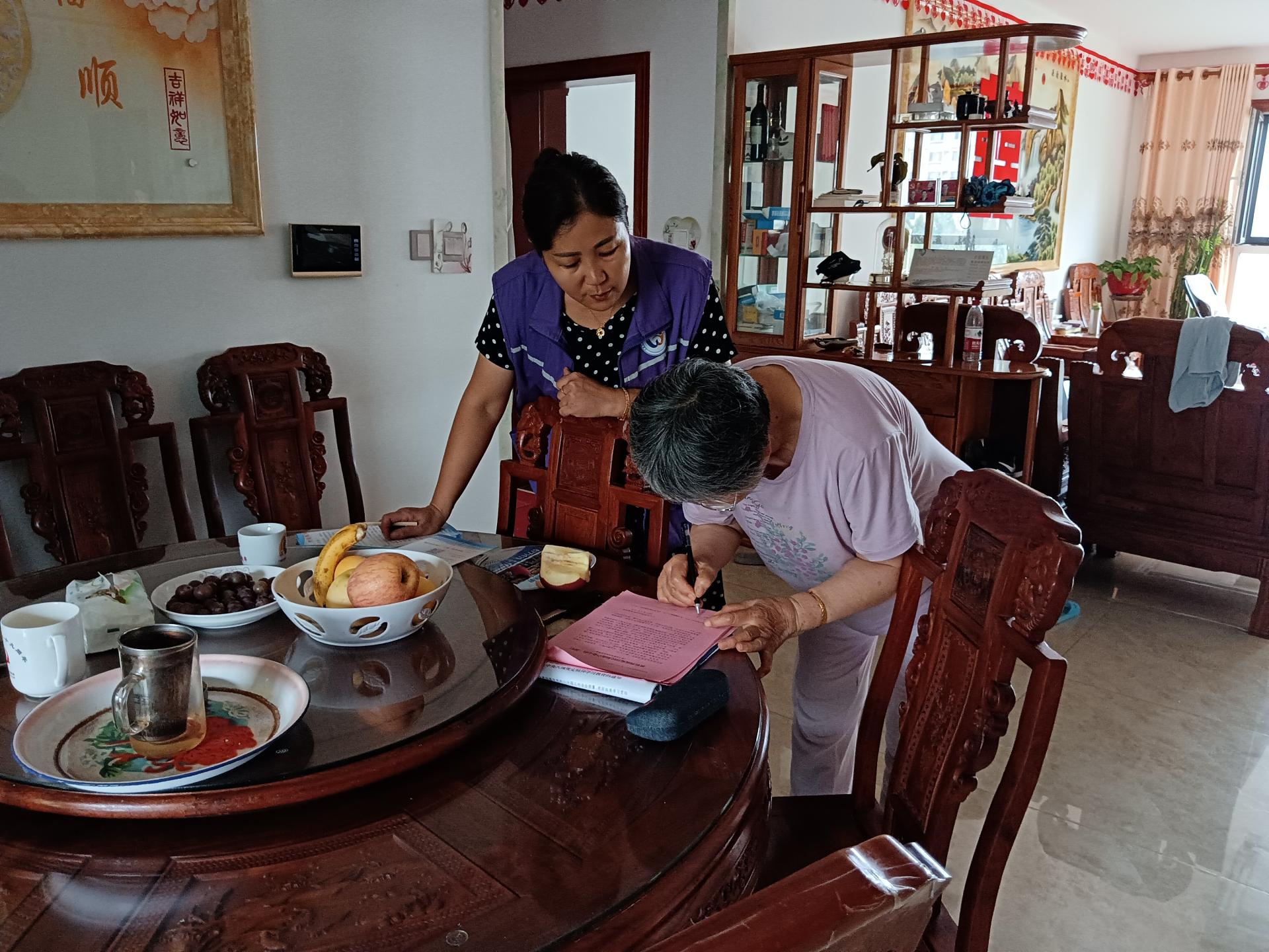 玉兰社区开展安鑫养老志愿服务活动,志愿者进入老人家中,关心老人身体健康,于无声中完成静默认证。玉兰社区巾帼志愿服务为此活动提供志愿服务。