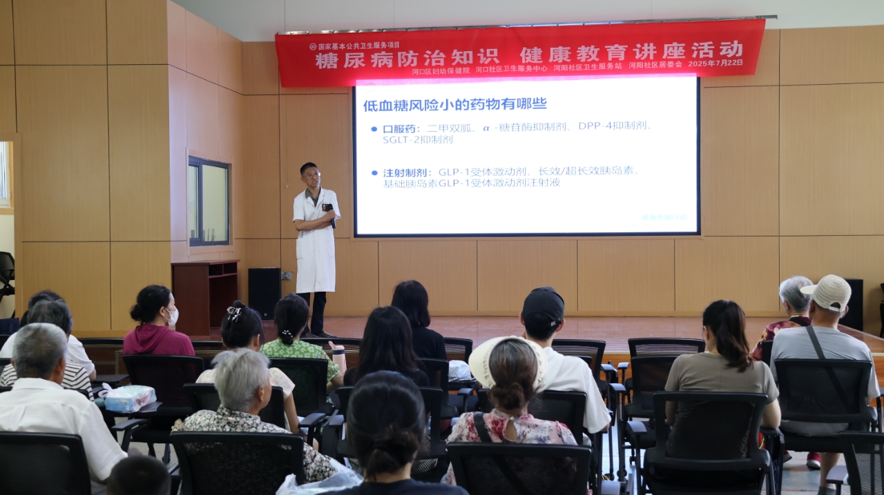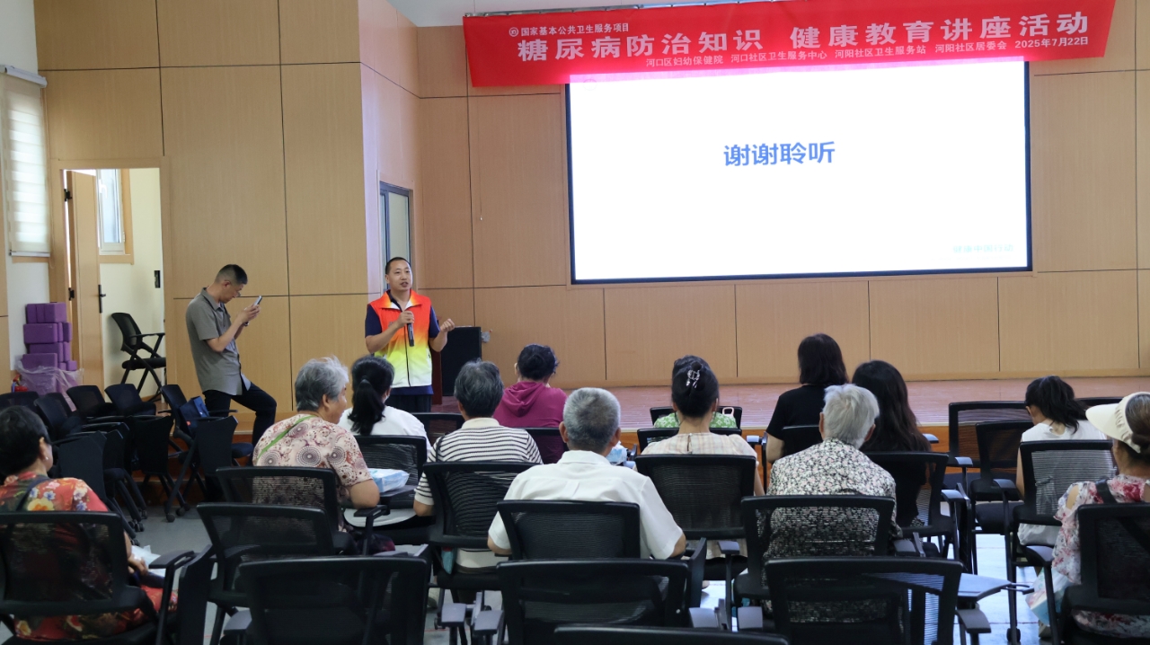 当前,糖尿病已成为全球高发的慢性疾病之一,我国糖尿病患病人数众多且呈上升趋势。由于公众对糖尿病的认知不足,部分患者未能及时发现病情、科学管理疾病,导致并发症发生风险增加。为提升公众对糖尿病的预防意识、普及疾病管理知识,7月21日下午,河口社区卫生服务中心“白鸽”志愿服务队走进河阳社区开展“糖尿病知识”健康教育讲座。通过本次讲座,旨在让更多人了解“糖尿病可防、可控、可治”,树立科学的健康观念,主动采取健康行为,共同降低糖尿病带来的健康威胁。