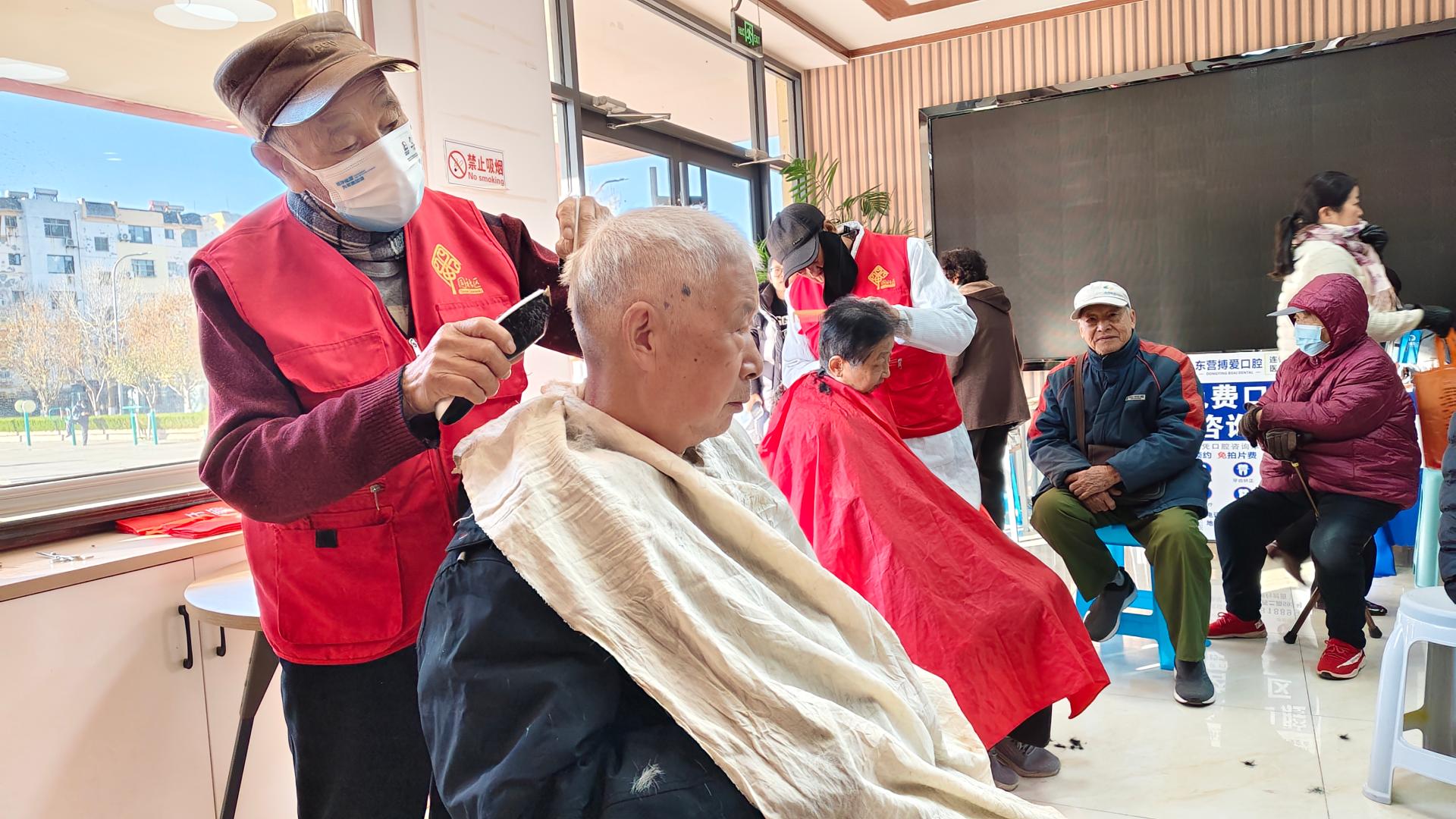 2025年11月18日公益市集志愿活动,在胜荣居委会楼前广场举行,项目有义务理发,口腔义诊,眼科义诊,测血糖测血压等活动,
