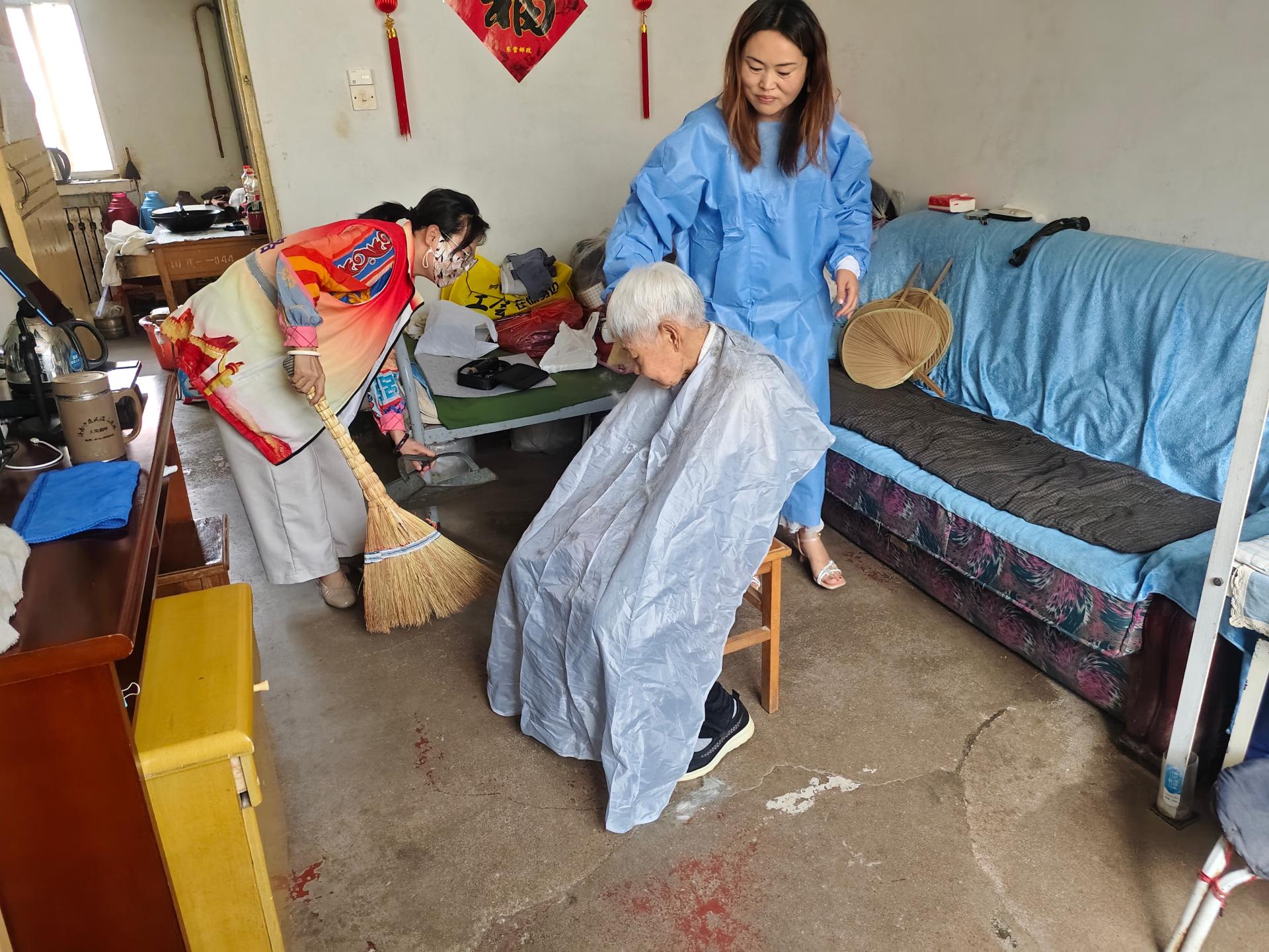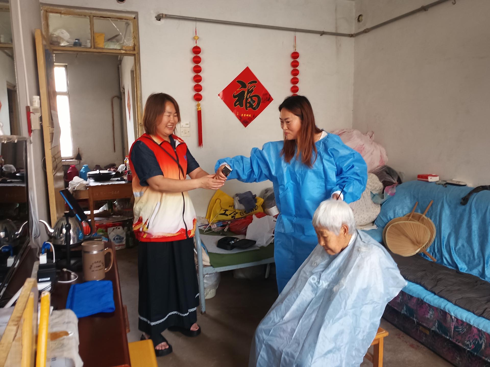6.30日幸福社区勿忘我金剪刀志愿服务队开展志愿理发活动,为区域内高龄行动不便人群体验家门口的便利服务。