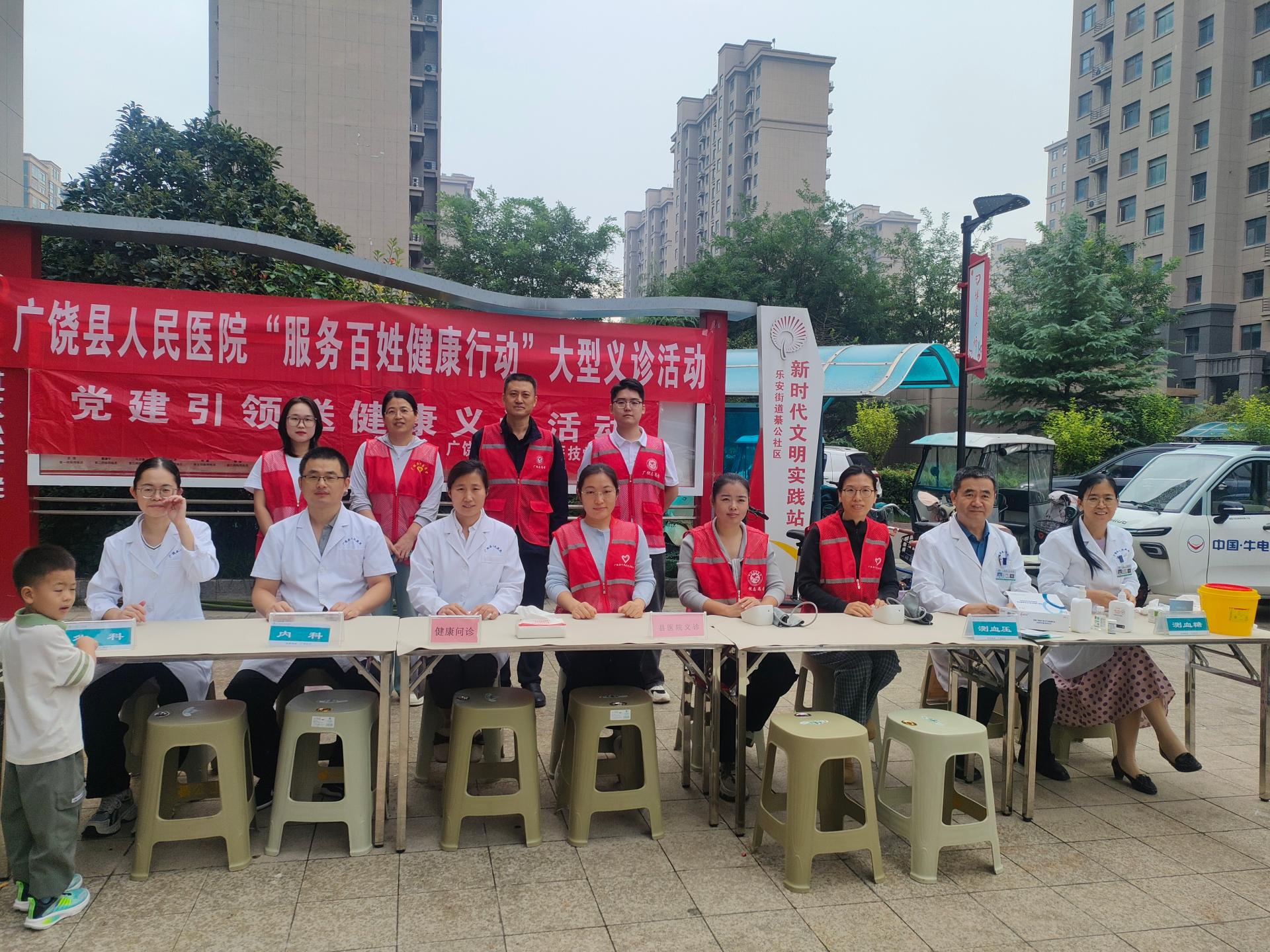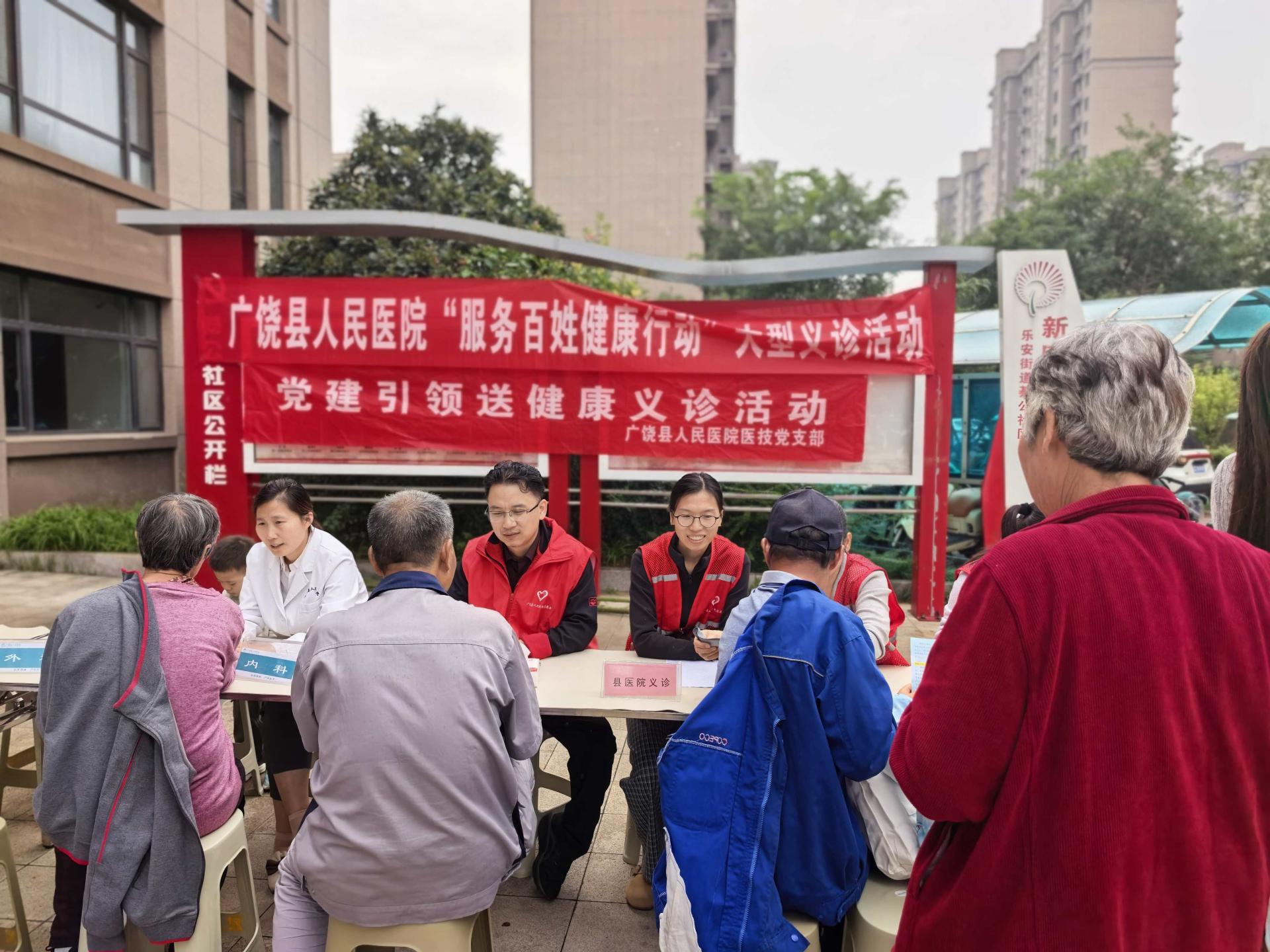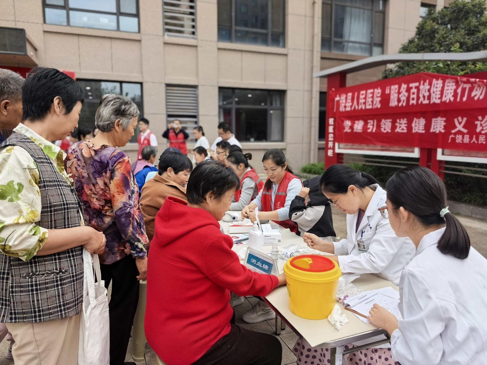 医技支部联合医院多部门,开展“党建引领送健康义诊”活动,在广饶县四季花城小区居民开展健康义诊活动,针对糖尿病、胃部疾控进行筛查,帮助社区居民树立健康意识。