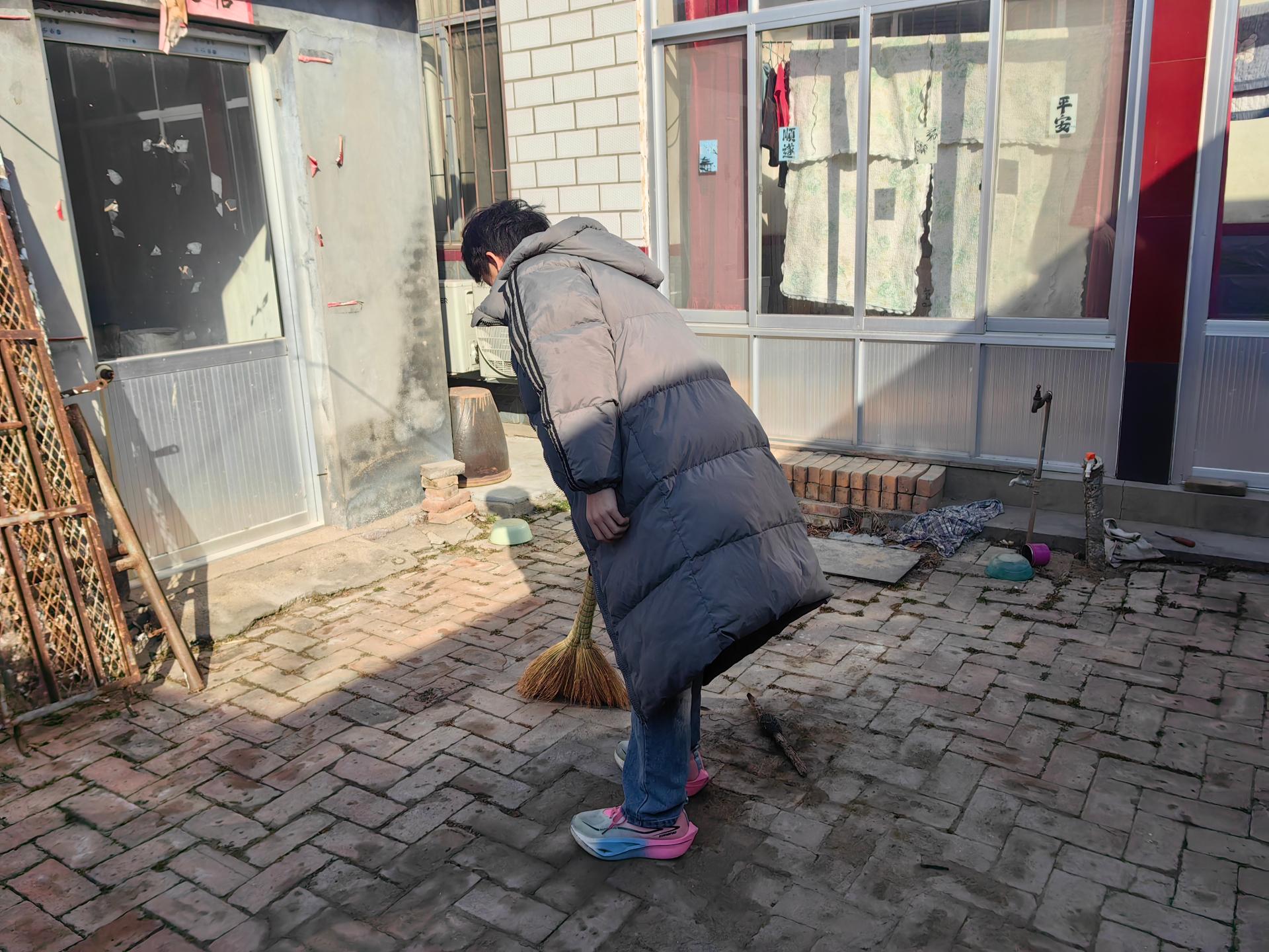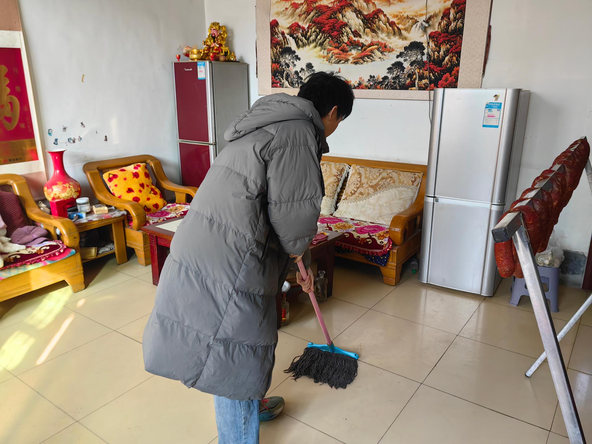 新年到来,我们需要一个干净祥和的新年,村里一些老年人腿脚不好,打扫卫生十分吃力,为此我们组织去村里老年人家里帮忙打扫卫生。