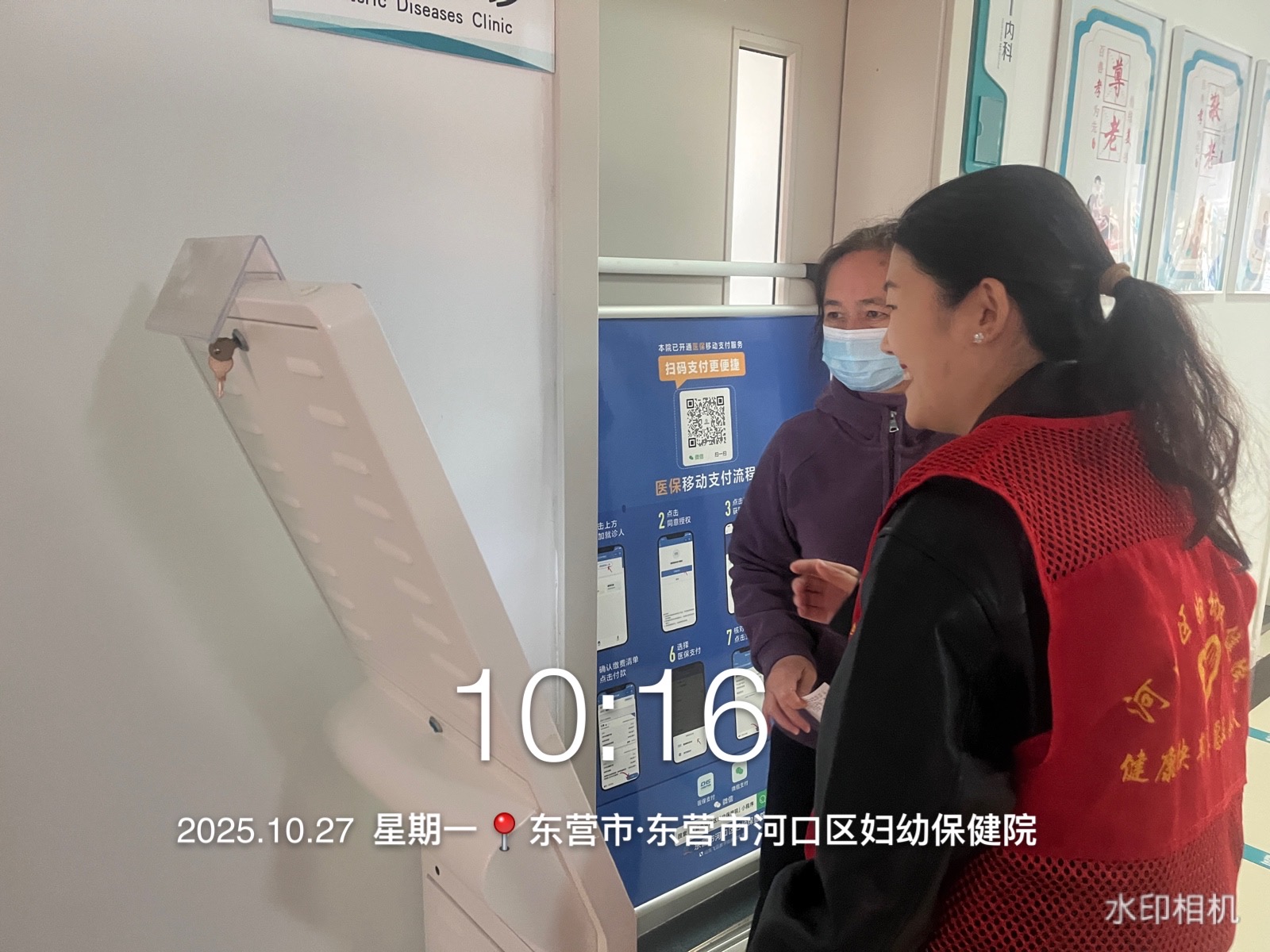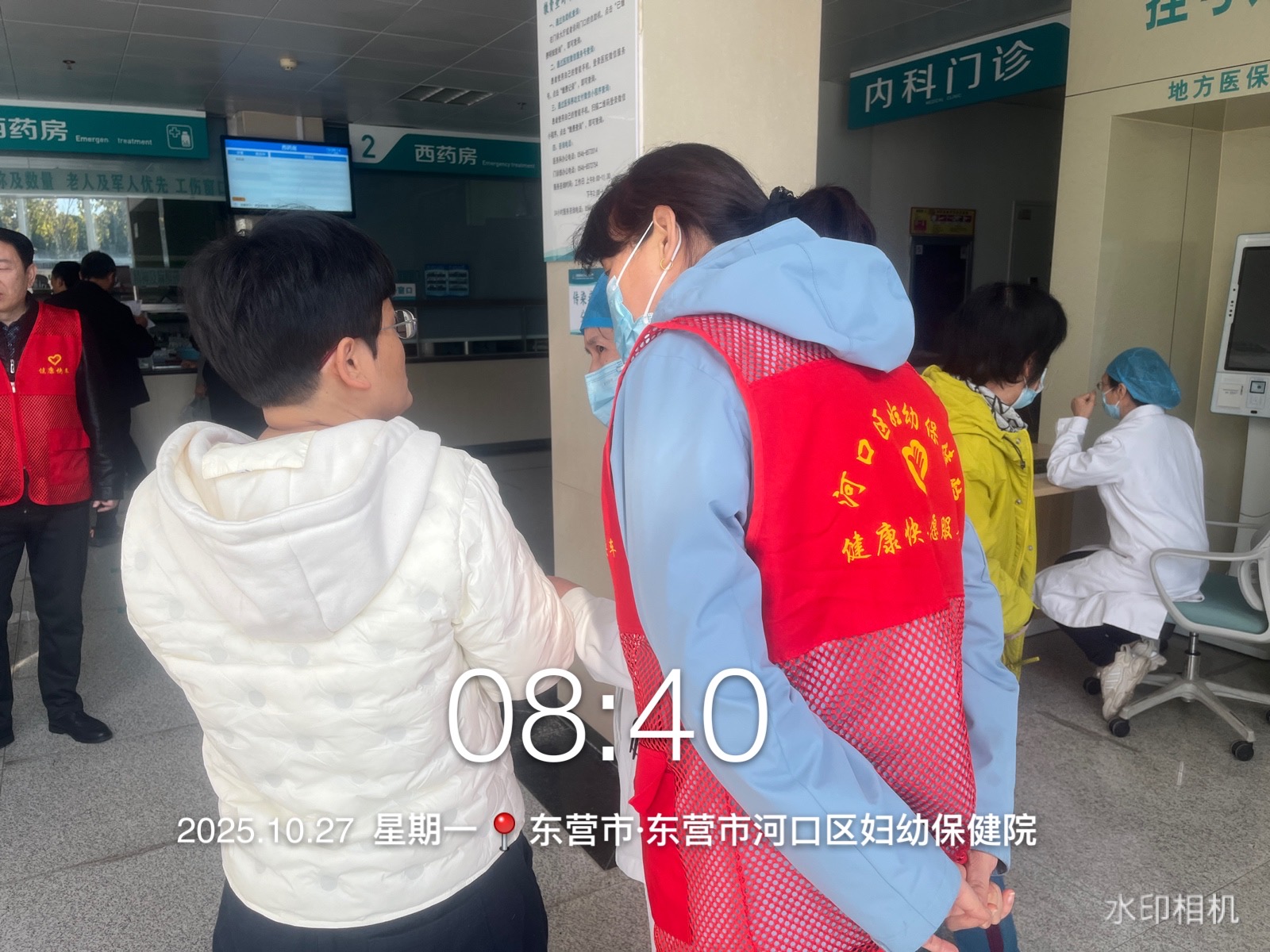 河口区妇幼保健院健康快车志愿服务队在医院院内门诊大厅、诊间、特检等多处开展咨询、导诊、挂号、购药等志愿服务活动,帮助就诊的老年人、孕妇、军人、退役军人、残疾人等就诊人员完成就诊。