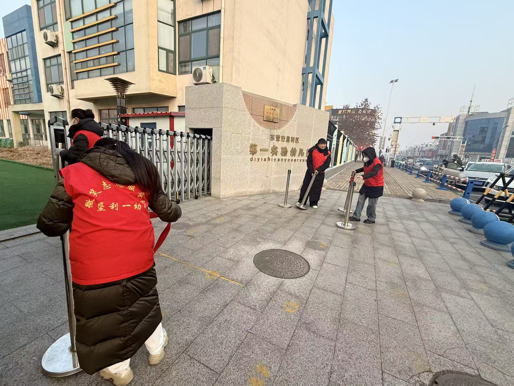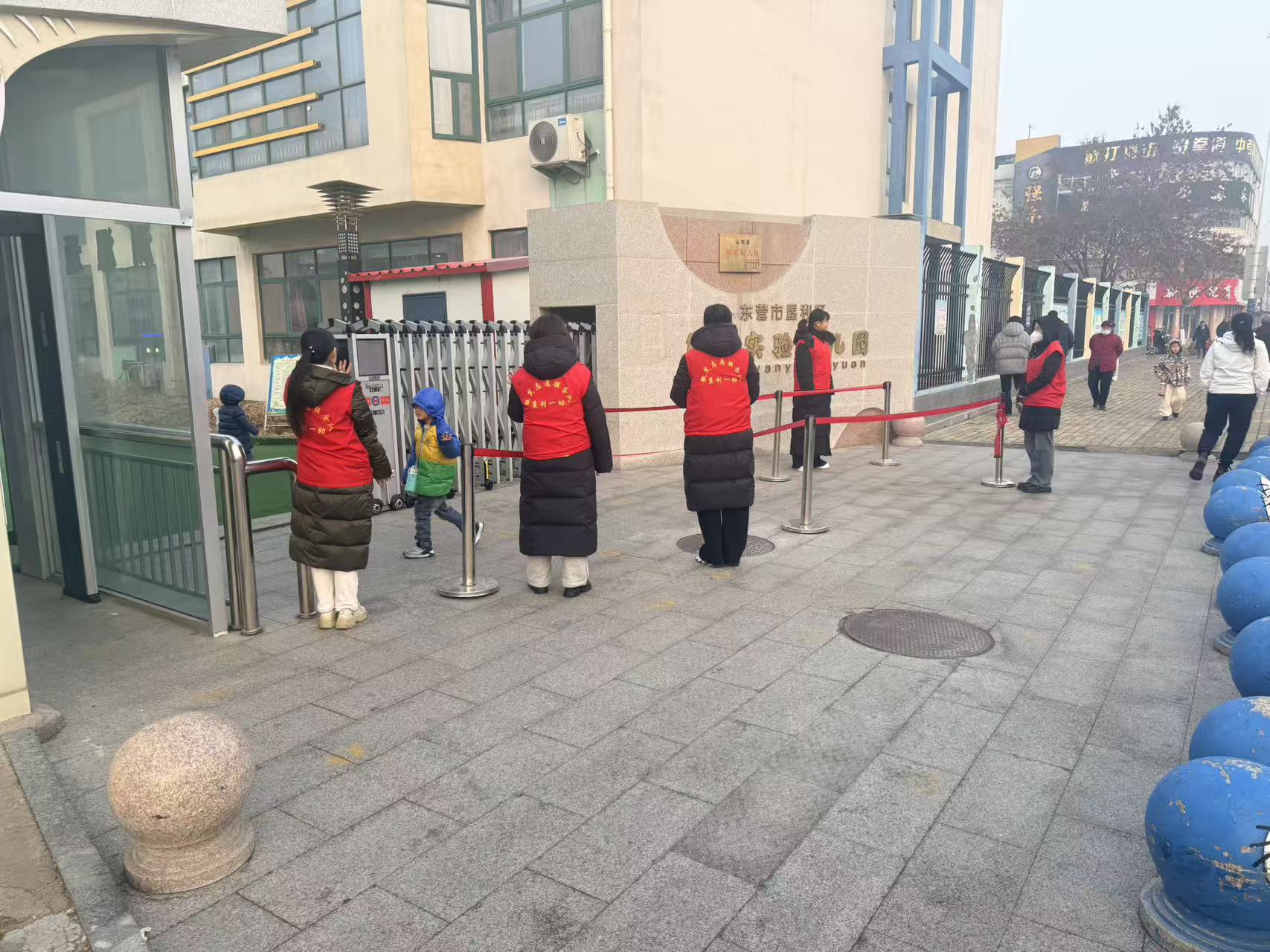 穿好志愿服,提前到岗位,拉好隔离带,驱赶摊贩,在幼儿园门口迎接幼儿,微笑问候,引导他们安全、有序地进入园区。在入园高峰时段,维持现场秩序,确保幼儿和家长的通行顺畅。