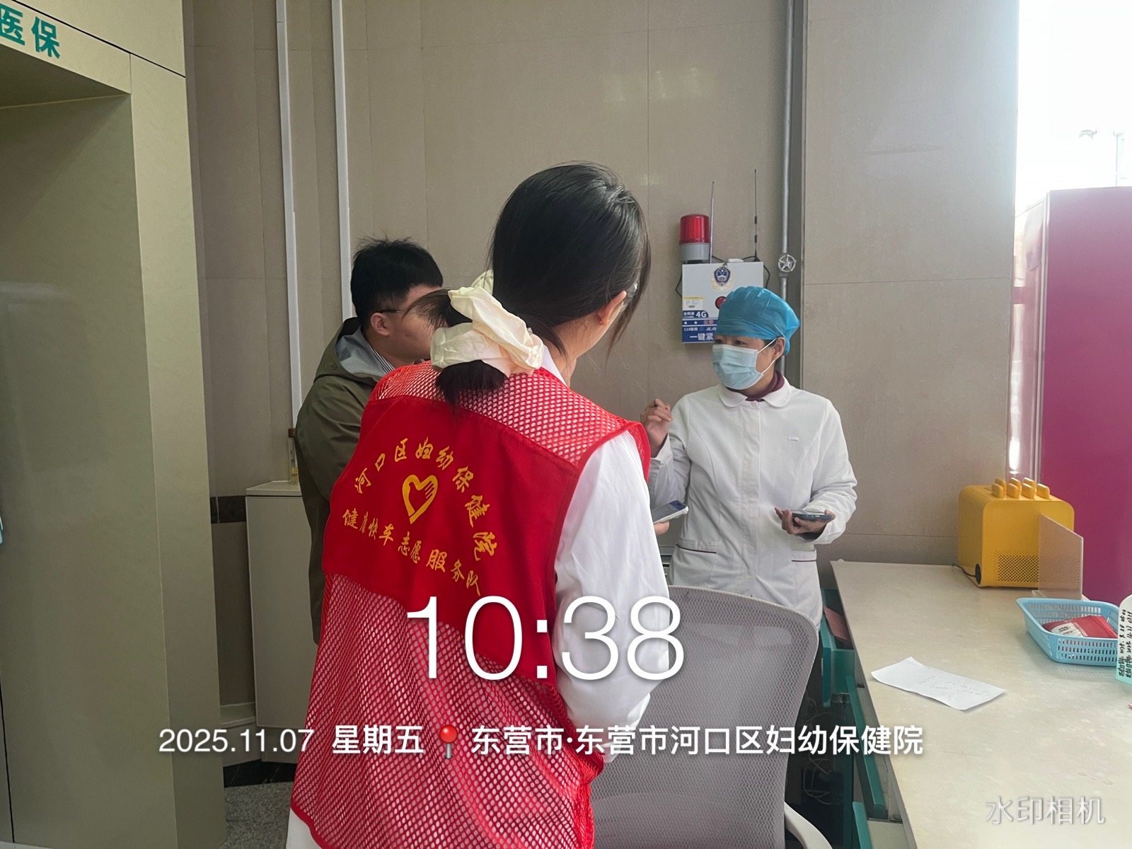 河口区妇幼保健院健康快车志愿服务队在医院院内门诊大厅、诊间、特检等多处开展咨询、导诊、挂号、购药等志愿服务活动,帮助就诊的老年人、孕妇、军人、退役军人、残疾人等就诊人员完成就诊。