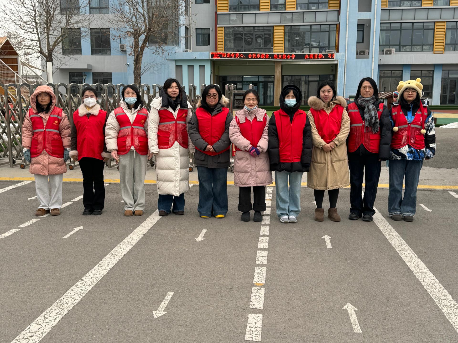 为保护孩子们的安全,广饶县育英幼儿园的领导带领值班教师每天早上都早早来到幼儿园门口执勤,看护孩子们上下学路队。他们站在幼儿园门口的值班点位上,化身安全监督员,提醒孩子们不扎堆、不拥挤、不乱跑,护佑着孩子们安全有序出入校门,进一步消除校园安全隐患,确保师生生命财产安全