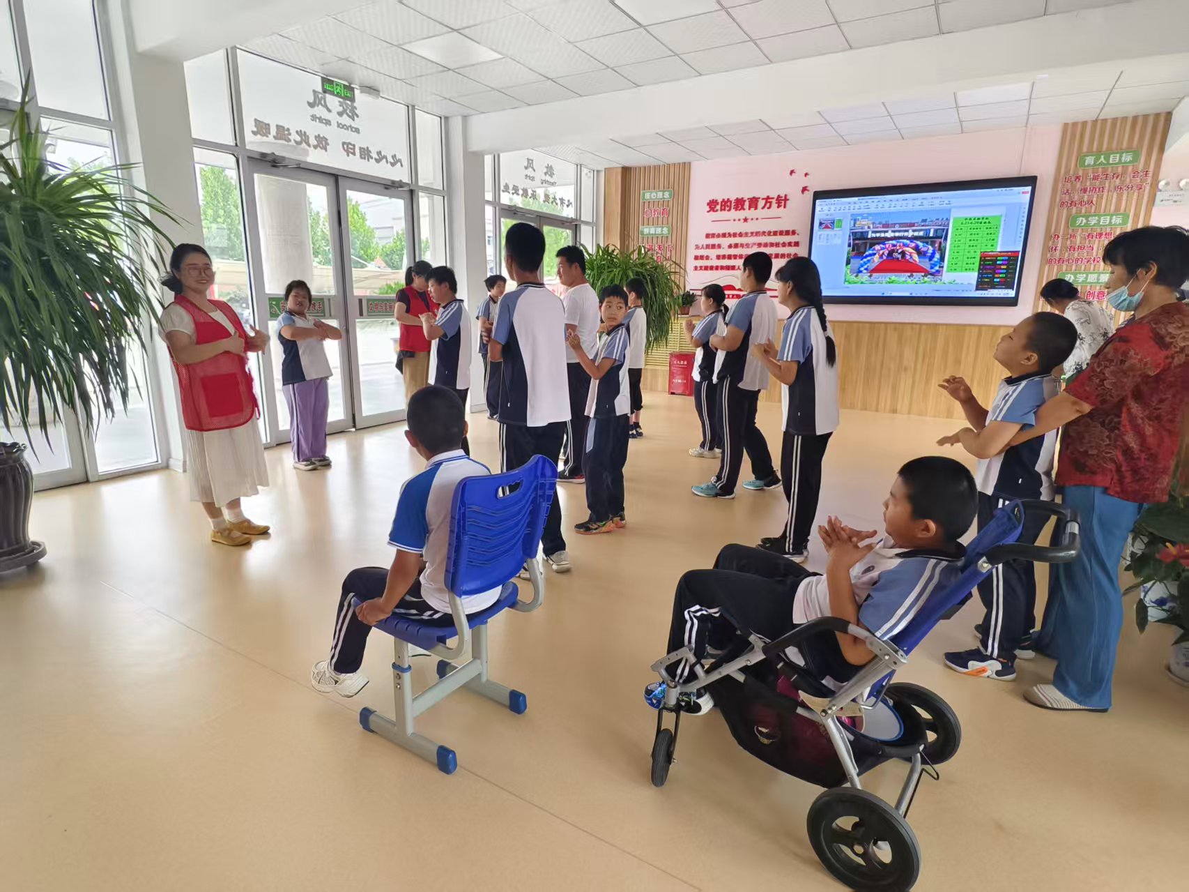 利津一幼与利津弘毅实验学校积极响应国家对融合教育的倡导,探索普特融合新模式。以丰富特殊学生校园生活、增强学生身体素质和协调性为目标,联合开展“共舞间操‘特’享阳光”志愿者服务交流活动。此次活动以课间操为载体,利津一幼志愿服务队教师为弘毅实验学校精心编排适合全校师生共同参与的课间操。
