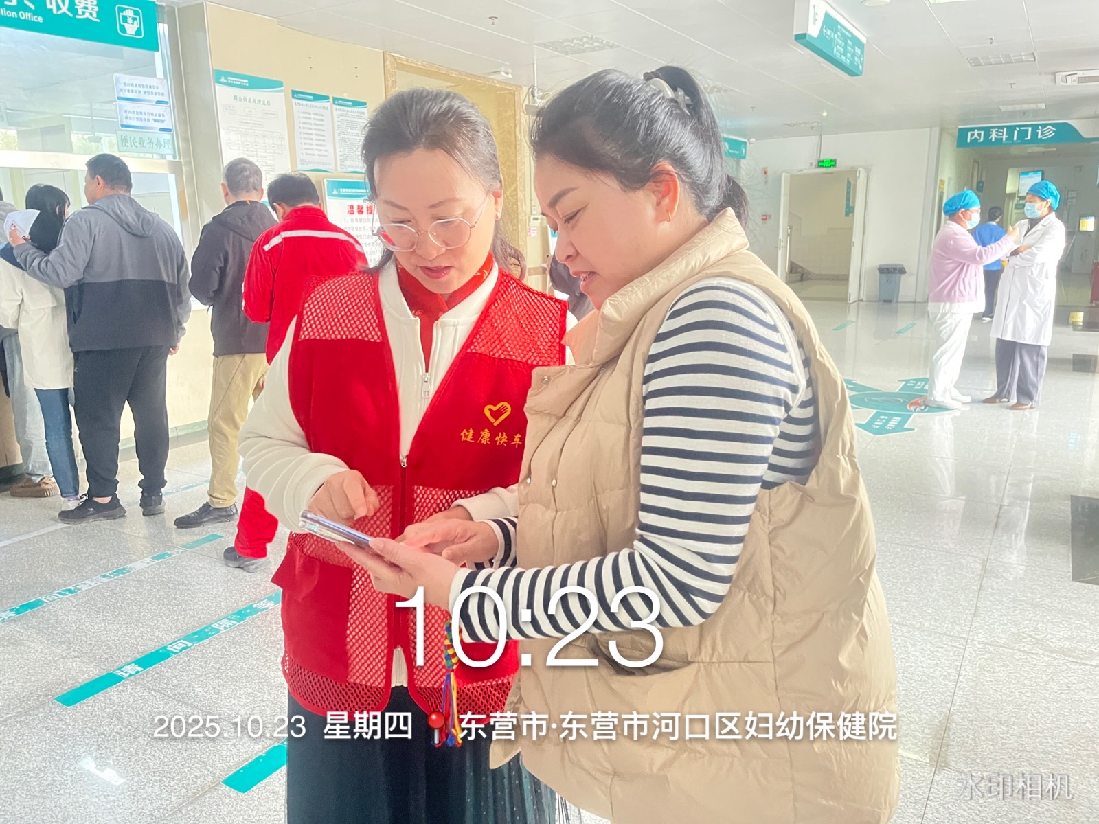 河口区妇幼保健院健康快车志愿服务队在医院院内门诊大厅、诊间、特检等多处开展咨询、导诊、挂号、购药等志愿服务活动,帮助就诊的老年人、孕妇、军人、退役军人、残疾人等就诊人员完成就诊。