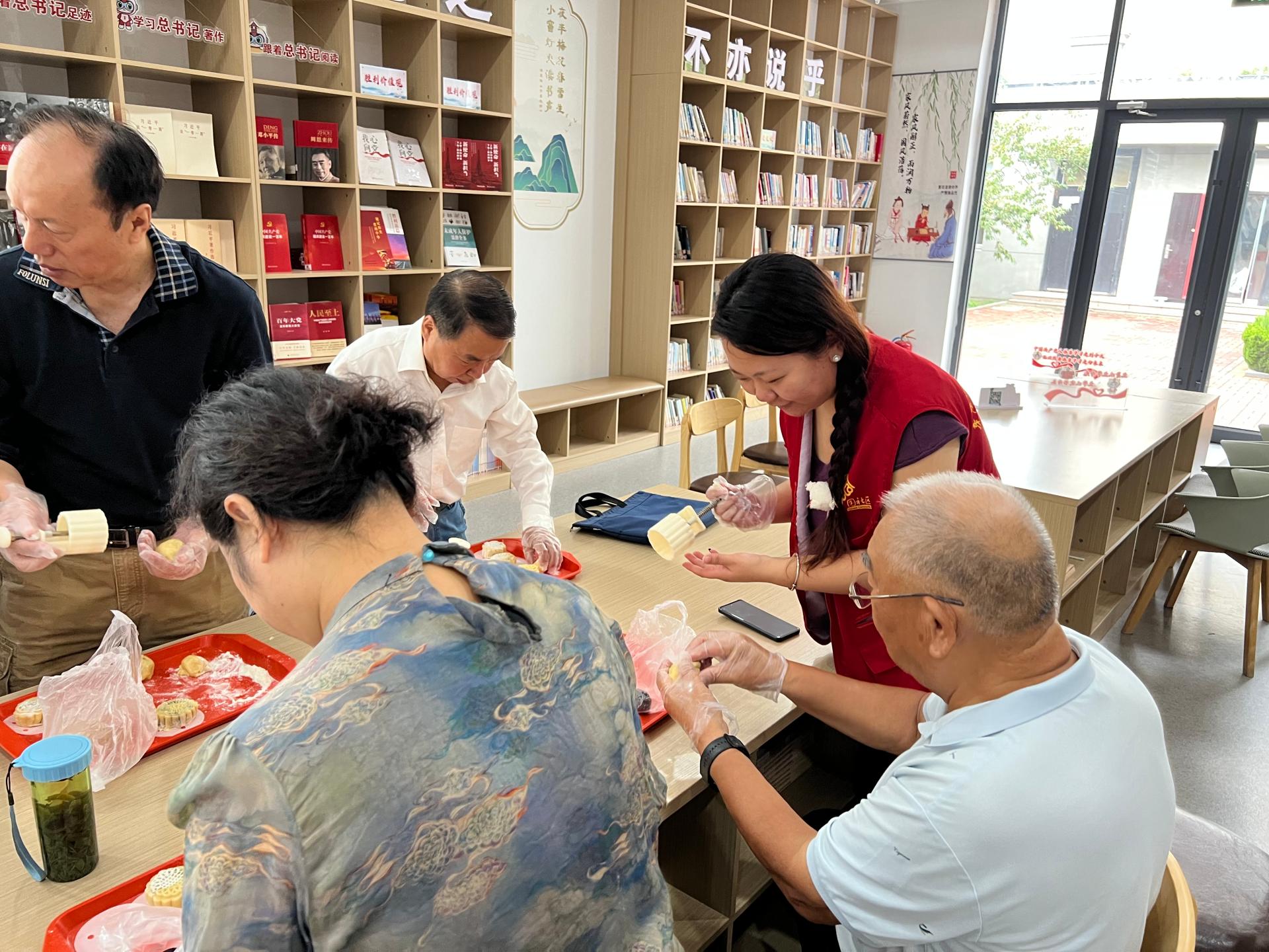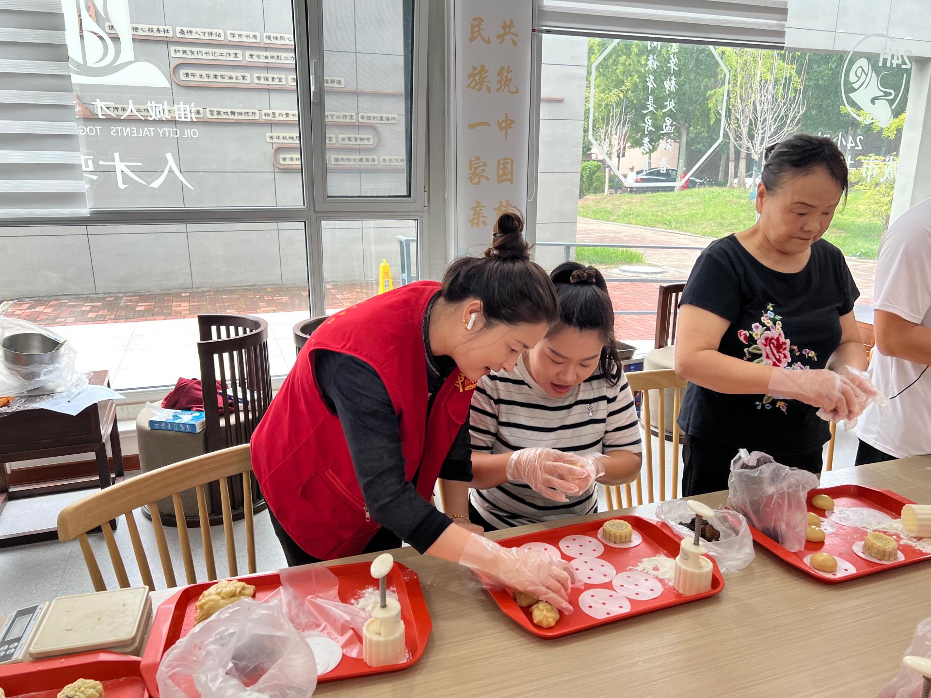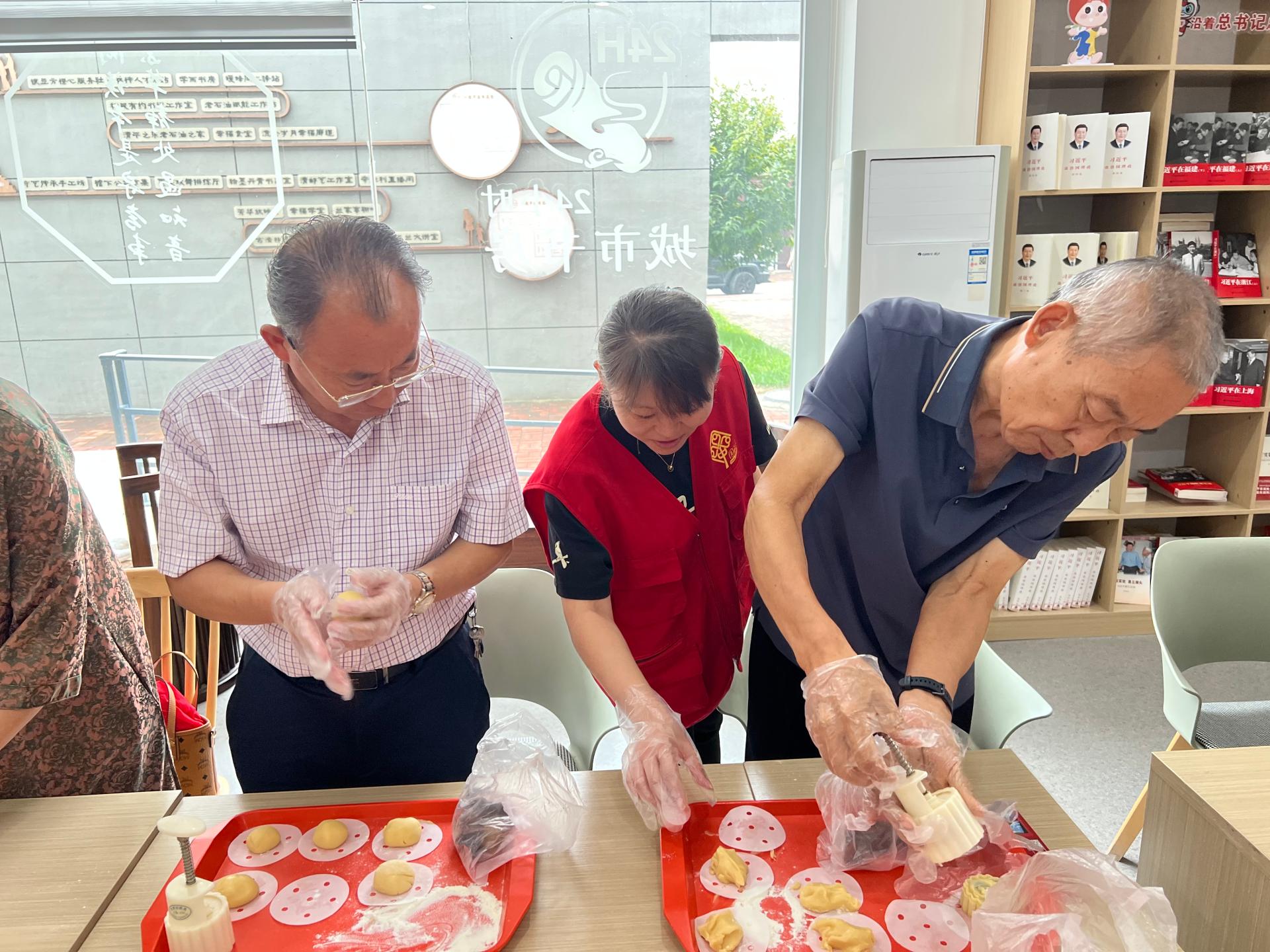 秋风送爽,丹桂飘香。在国庆节、中秋节即将来临之际,为弘扬中华民族传统节日风俗文化,营造浓厚的节日氛围,厚植爱党爱国情怀,辛店街道玉兰社区在学而文化书院开展“玉兰手工课——巧手做月饼”主题活动。玉兰社区老党员志愿服务队为此活动提供志愿服务。