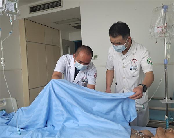 不久,接到报警求助的120急救医护人员来到现场,这时老太太虽然脱离生命危险,但是还是处于极度虚弱状态。由于救护车不能开到老人的位置,蒋伟给老人包上保温毯后和和急救医护人员一道将老人抬上担架送到救护车上,拉入医院抢救治疗。
