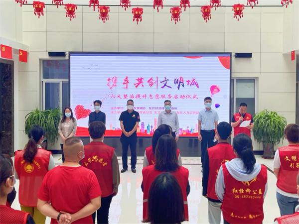 “志愿服务+党建引领”释放创城“新动能”。东营市以党建引领,带动社区直管党员、业委会党员、物业公司党员、双报到单位党员力量参与到创城中来,开展背街小巷整治、楼道美化、商圈提升、文明宣传等专项行动,“党建+志愿服务”成为广大党员干部的共识与行动,引领东营文明实践新风尚。