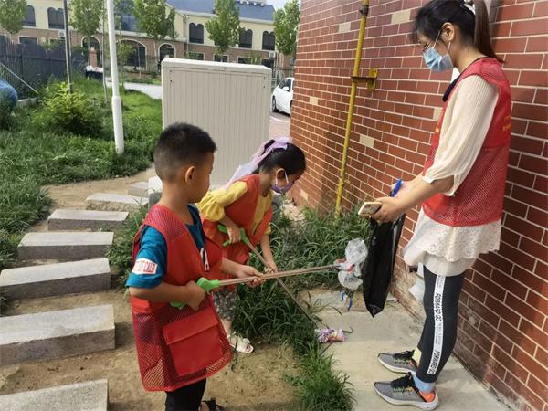 志愿者们从路边到草丛,把烟头、塑料袋、废纸等垃圾一一捡到垃圾袋里。在志愿者的共同努力下,很快社区环境变得整洁一新……