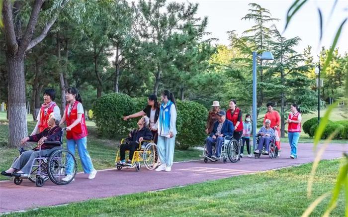 2022年9月7日,东营经济技术开发区胜宏社区党委组织网格员和志愿者在城市公园开展“关爱出行·幸福陪伴”公益活动,与胜宏社区独居老年人共享温暖阳光。